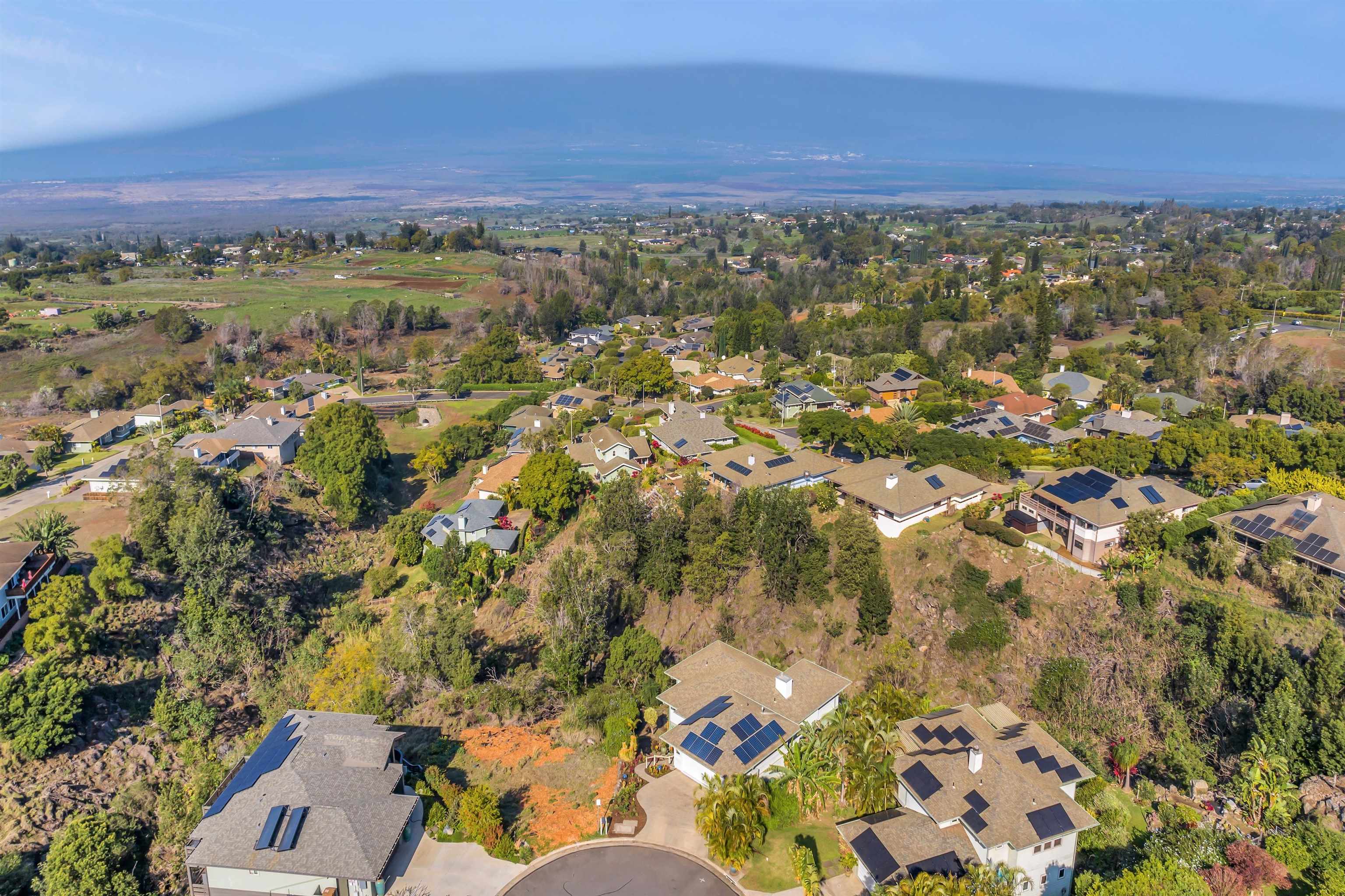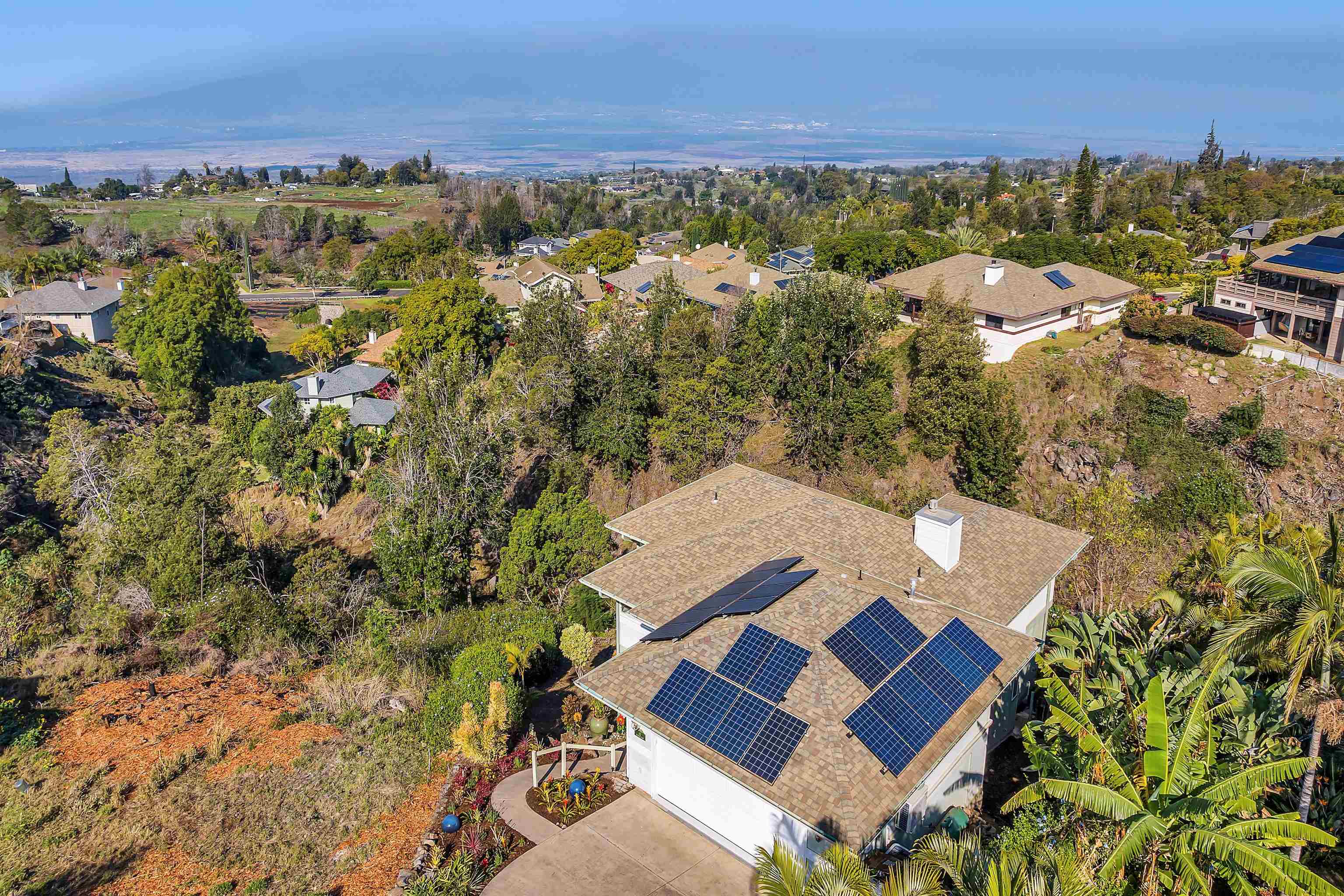 Set on a quiet cul-de-sac in the desirable Kulamanu neighborhood, this well-appointed home offers ocean and mountain views with the comfort and efficiency Upcountry buyers value. The flexible floor plan includes four bedrooms plus a dedicated office, ideal for work-from-home or additional living space. Upstairs living areas are cooled by central air conditioning, while 24 net-metered photovoltaic panels provide meaningful energy savings. Enjoy the convenience of being minutes from Upcountry schools, shopping, dining, and everyday amenities, all within a well-established Upcountry community known for its sense of space, cooler climate, and close-knit neighborhood feel. The garage has been thoughtfully upgraded with epoxy floors, a split-system air conditioner, and a Murphy bed—creating a versatile, climate-controlled space ideal for a kids’ play zone, home gym, guest overflow, or mancave. A rare combination of views, functionality, and location in one of Upcountry Maui’s most sought-after residential areas.