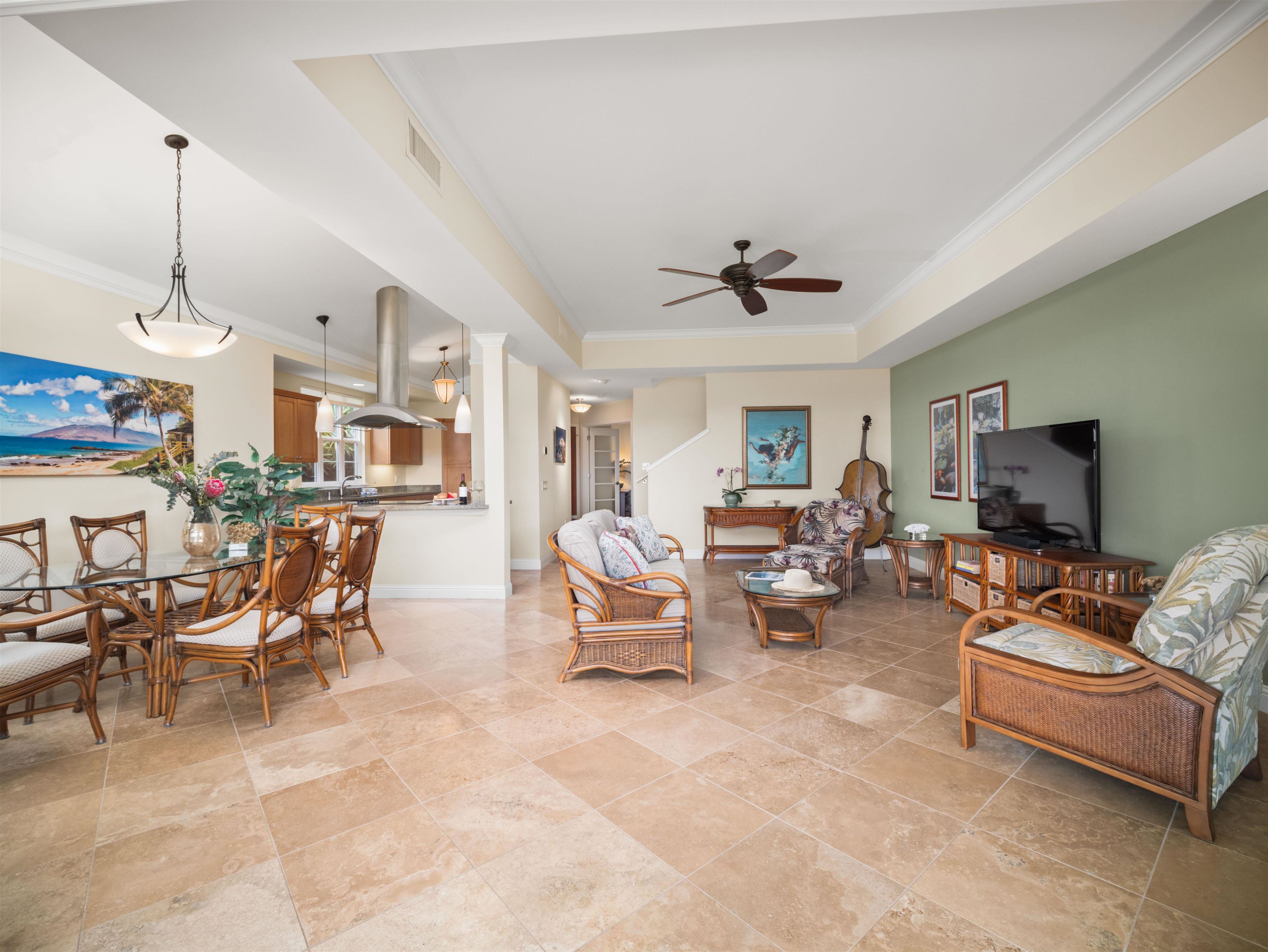 DREAM LOCATION at KAI MALU with this RARE Developer Unit now Available! Breathtaking views - this is Kai Malu at its best. Beautifully appointed, this pristine home offers that sought after exceptional lifestyle. With the primary bedroom upstairs and balcony perched to behold the most awe-inspiring panorama. Sweeping Wailea Blue Course greens extend upwards to views of towering and majestic Haleakala with Molokini and Kahoolawe oceanviews with magnificent masterpiece sunsets from the very private lanais. Privacy is afforded here with fenced garden and lush tropical landscaping between units. French doors to the third bedroom, barbecue, wet bar, sink and fridge on lanai, and upgraded carpet on stairs to upstairs bedrooms are developer upgrades. This home is being sold furnished, vacant and move in ready!