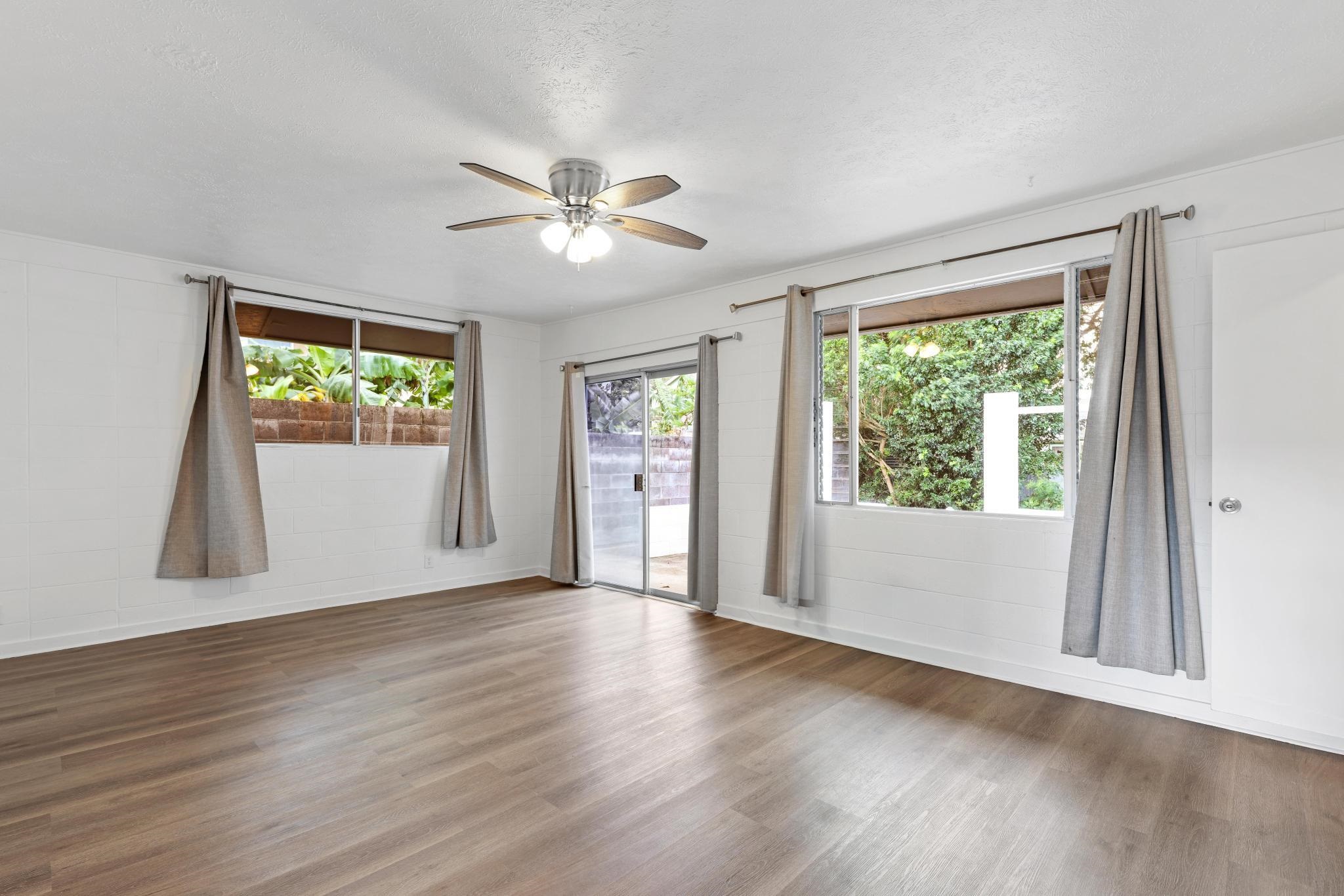Welcome to this beautifully renovated single-story home featuring a spacious kitchen and living room designed for comfortable everyday living and effortless entertaining. Down the hallway are three bedrooms and a bathroom. A privately situated fourth bedroom featuring its own entrance, living space, wet bar, and bathroom offers a versatile extension of the home. Ocean and Haleakala views enhance the property, and the elevated deck above the recently constructed 120-square-foot storage shed provides an ideal setting to relax and take in the scenery. The back yard also offers a very large private patio that can be enjoyed in many ways. Ideally located within walking distance to the Haiku Community Center and Elementary School, just five minutes to Haiku Town Center with all its amenities, or Ho‘okipa Beach Park, ten minutes to Paia, and 25 minutes to the airport, this home offers both convenience and lifestyle. The sellers have completed numerous upgrades, including a roof replacement just one year ago, ensuring peace of mind for years to come. No HOA fees and a welcoming neighborhood atmosphere that reflects the spirit of Aloha. Move in ready! Schedule a viewing today to see and experience this property for yourself.