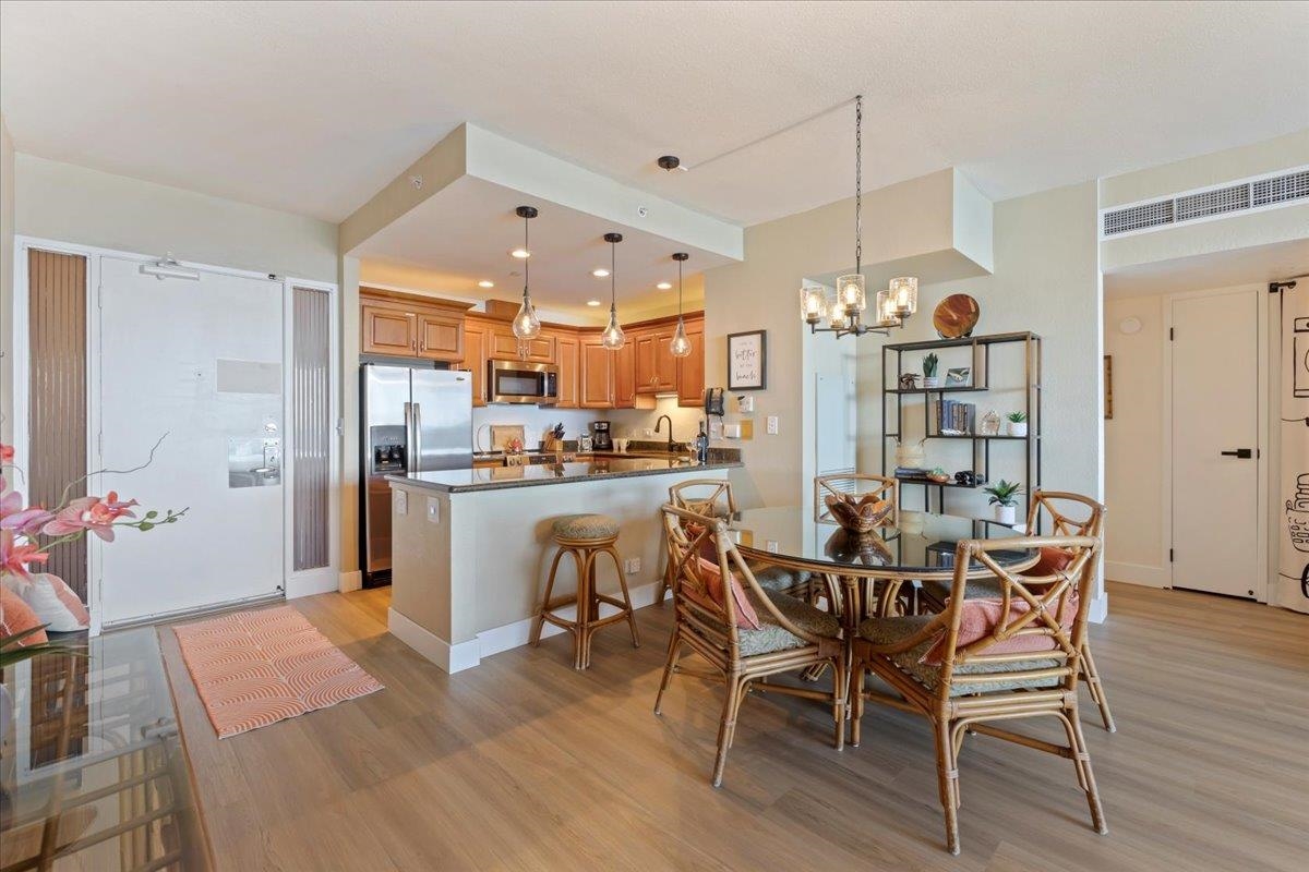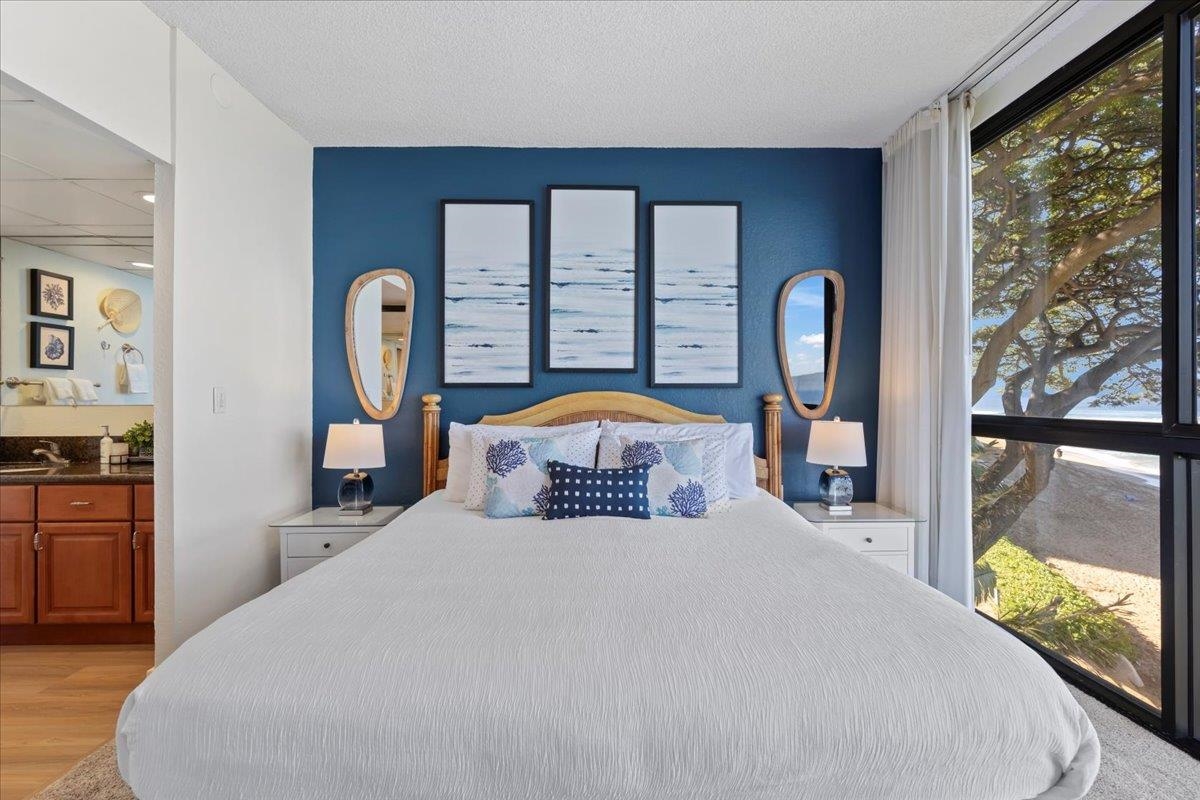 Discover the ultimate beachfront lifestyle in this rarely available 2 bed 2 bath oceanfront condo at Kaanapali Shores. Located in one of the best locations in the complex, Unit 361 has significant upgrades and all new modern furnishings, while offering unobstructed panoramic views of the Pacific Ocean. Enjoy your morning coffee watching turtles and the seasonal whale migration or sip your favorite beverage savoring breathtaking sunsets year-round. With upgrades including all new luxury plank vinyl and carpet throughout, fresh paint, and all new interior furnishings, this condo is turnkey and move-in ready. The convenient location in the south tower is directly adjacent to parking and elevators, making it an easy trip to the 3rd floor unit. Kaanapali Shores is a premier resort in West Maui, with Hotel Zoning and a proven track record of high rental occupancy and income potential. The 10-acre grounds feature 2 swimming pools, 2 spas, saunas, fitness center and tennis and pickleball courts. Other amenities include the pool side restaurant, gift shop, food store, and beauty salon. This property is ideal for those looking to participate in vacation rentals while enjoying their own slice of paradise. KS 361 is a leasehold property, providing an incredible opportunity to own a direct oceanfront condo in one of Maui's most sought-after locations. Whether seeking your personal sanctuary or an investment property, Unit 361 is the perfect island getaway.