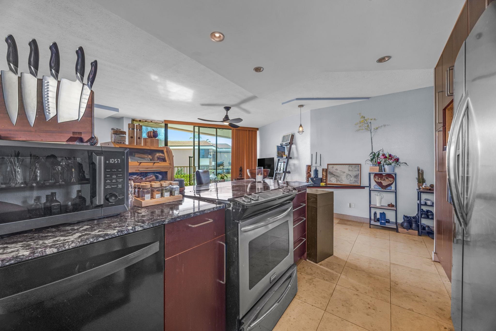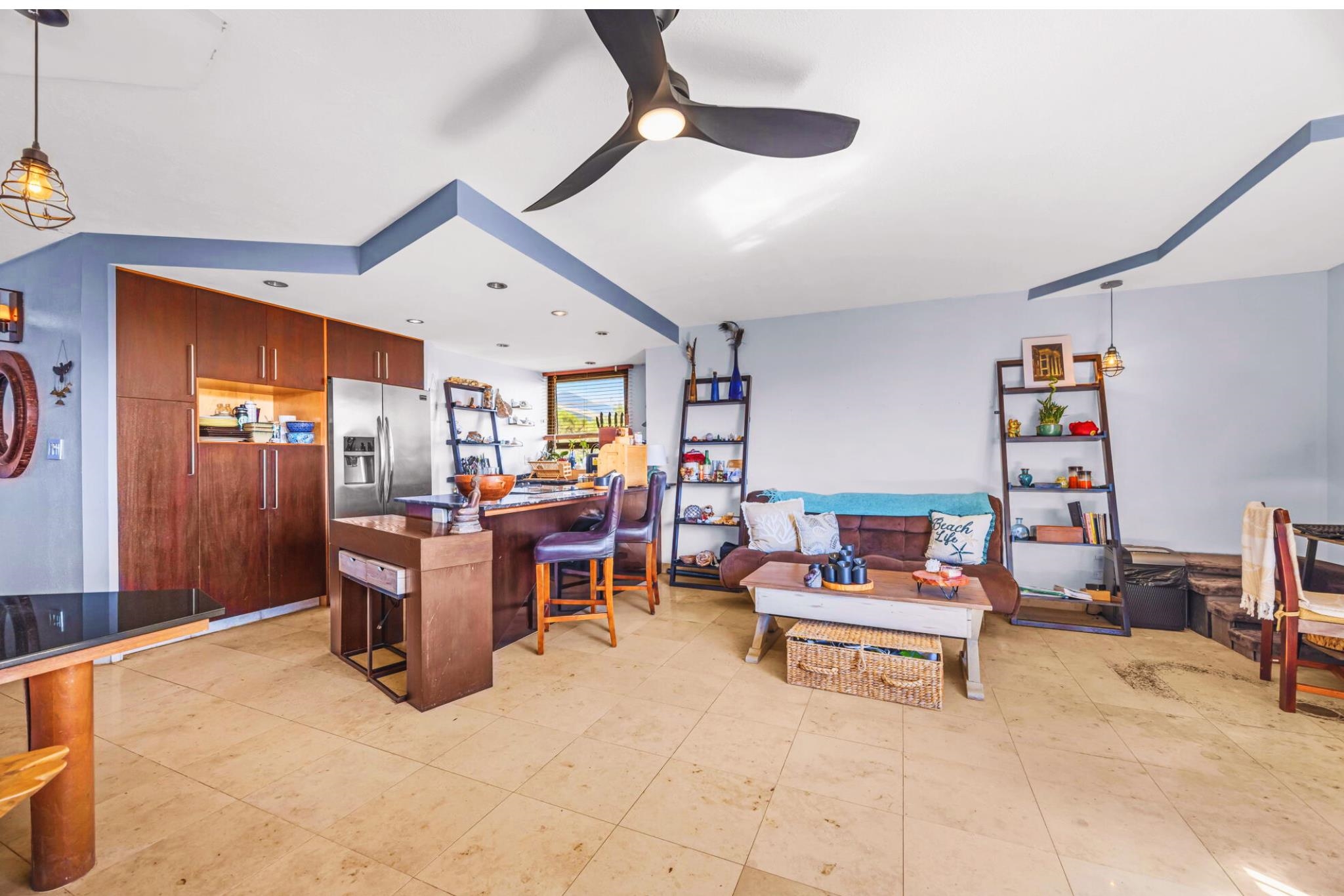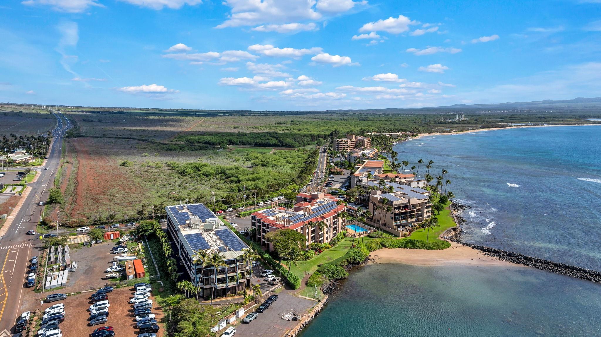 Oceanfront unit with a unique corner floor plan! This one bedroom unit features two additional windows compared to other one bedroom units, creating a brighter and more spacious living area with 700 sq. ft. of interior space. The unit has been refreshed with a light ocean blue color palette and features all new appliances. The living area and lanai offer a seamless indoor outdoor lifestyle, perfect for enjoying your morning coffee while taking in the ocean breeze. Located on the 3rd floor with elevator access, secured entry for a safe living environment, and 2 parking spots. The nearest beach, Haycraft Park Beach, is located less than one mile away and offers beautiful views of Haleakala. Conveniently located near Maalaea Harbor, Maalaea Harbor Shops, and the Maui Ocean Center, all approximately 0.3 miles away. Enjoy nearby oceanfront dining, casual restaurants, pizza, ice cream shops, and more. Kahului Airport is approximately 9 miles away, with Lahaina and Wailea each about 25 miles away. Grocery stores, drugstores, and banks are available nearby in Maui Lani and Kihei. Ready to move in with your pets! This complex is pet friendly. A Maui living opportunity or investment property.