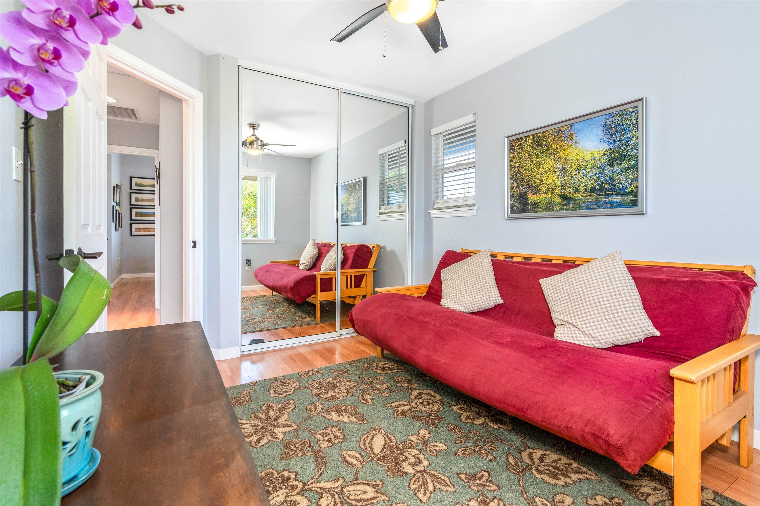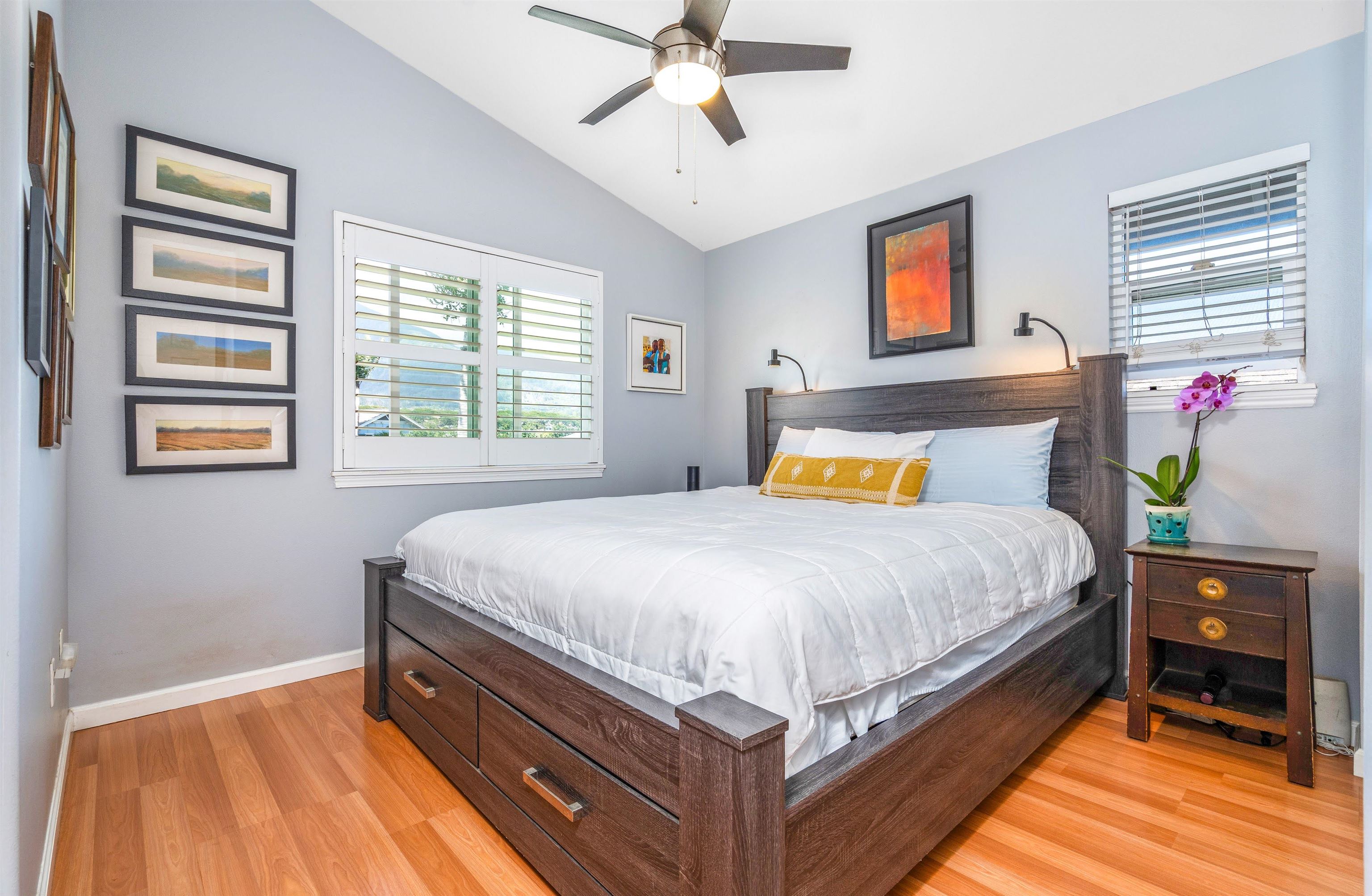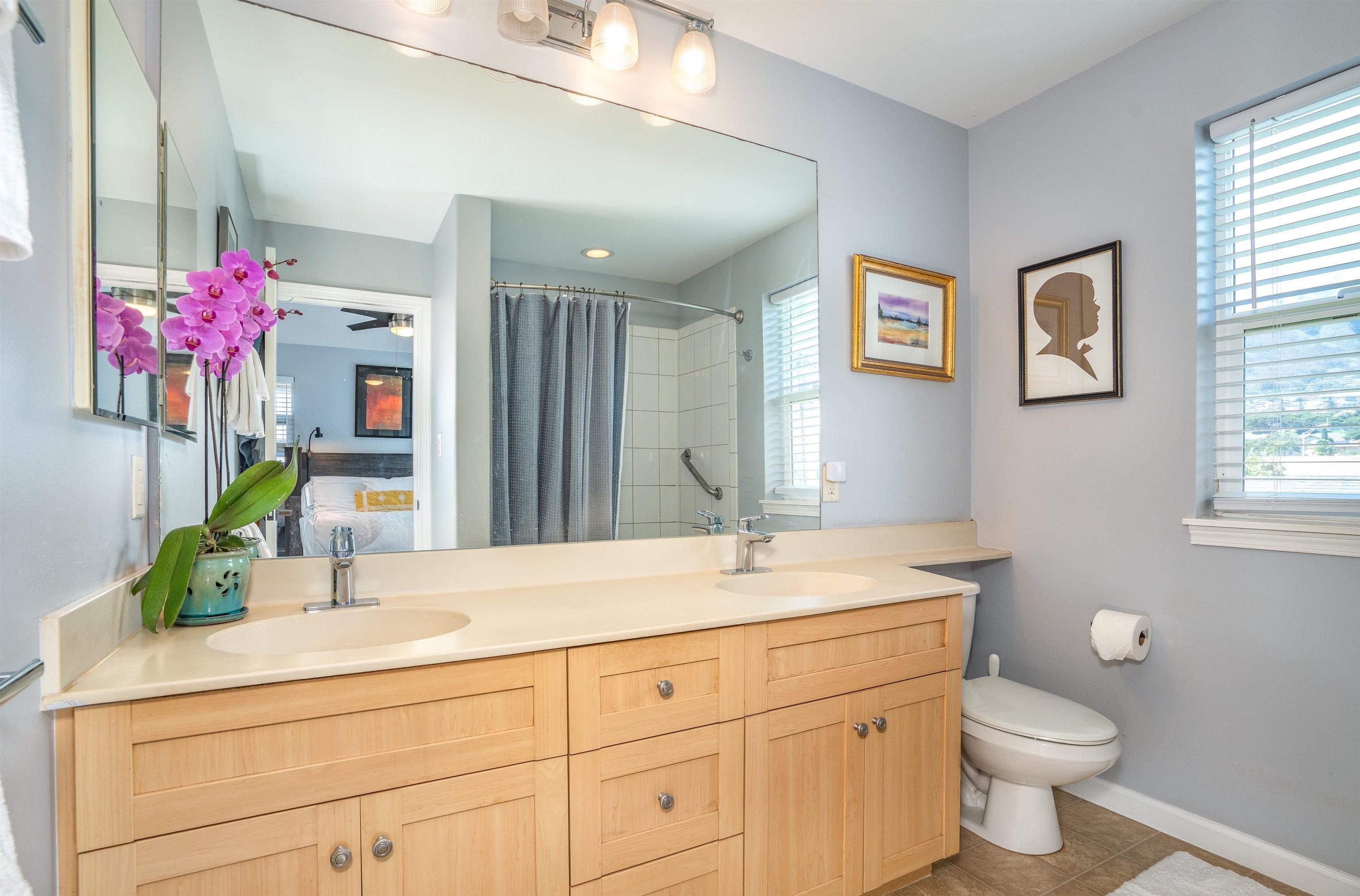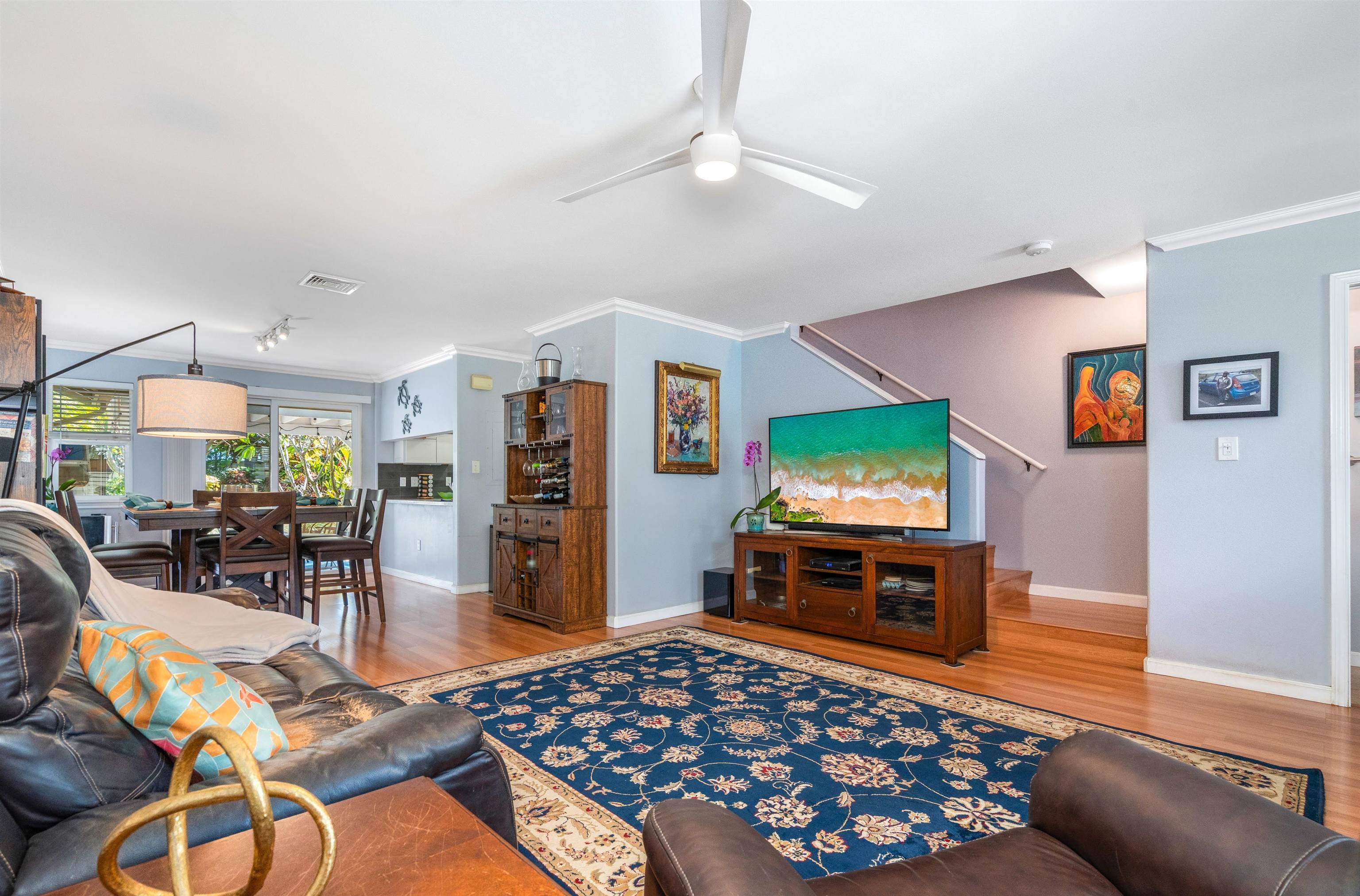 Welcome to your private island retreat in the heart of Wailuku, the historic county seat of Maui and home to our vibrant arts district. Restaurants, shopping, hiking, beach combing, easy access to everything Maui has to offer. This beautifully updated 3 bedroom, 2.5 bath townhome offers the perfect blend of indoor comfort and outdoor island style living. Interior spaces flow near seamlessly outdoors into a tropical garden retreat. Lush landscaping surrounds a stunning 20 x 20 natural slate tile hardscape and fully sheltered outdoor living and dining space. A 6 foot privacy fence surrounds this approximately 1,200 sqft fully irrigated sanctuary making this, arguably, the largest private yard in this complex. The unique additional 400 square feet of Pergola-covered living space invites you to host dinner parties, celebrate friends with a backyard BBQ, read books or play ball with a pet. This al fresco enclave has no comparison: Plumerias, bananas, ginger, crotons and mature royal palms envelope your Hawaiian style sanctuary. November 2022 professional kitchen renovation ($44,000) included a classic white farmhouse sink with apron-front design, stainless appliances, beautifully appointed chef’s kitchen showcasing white quartz countertops and fresh, modern cabinetry. Additional notable features include: sophisticated plantation shutters, custom crown molding, custom garden lighting transforming the outdoor space after dark, central air conditioning, exterior storage, covered parking, West Maui Mountain views and so much more. Two deeded parking stalls (108 and 105). Newer windows and doors (2016). Open layout. Abundant natural light. Fire up the grill and rest underneath the stars. Your Maui home is waiting.