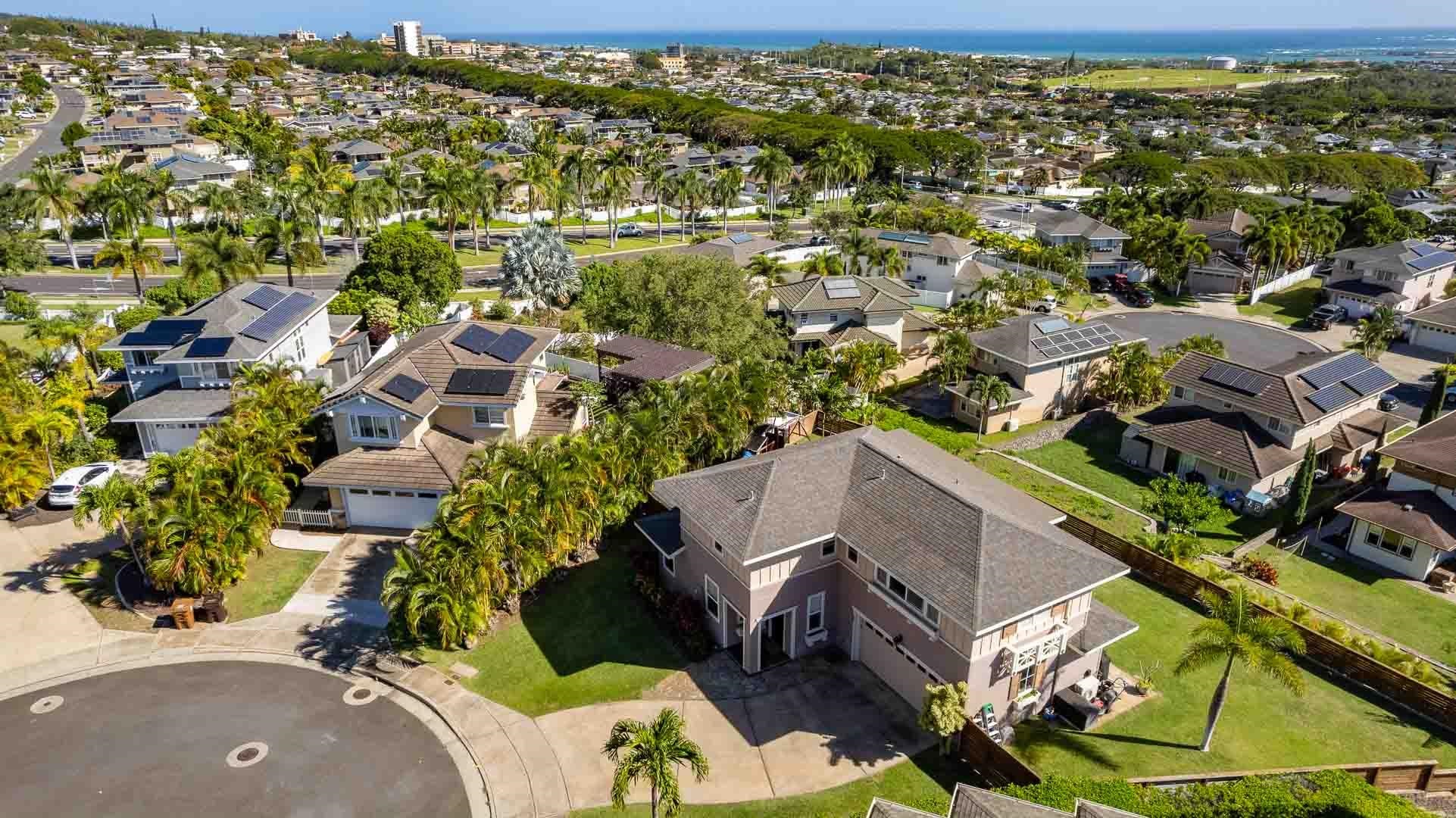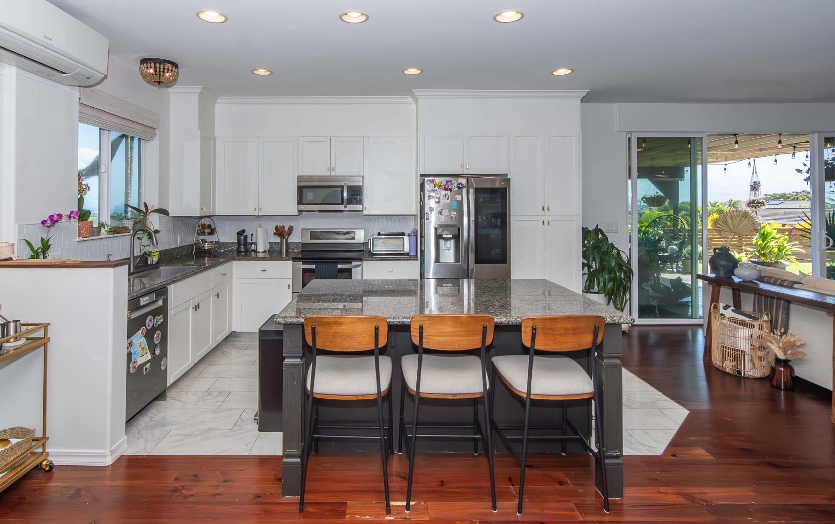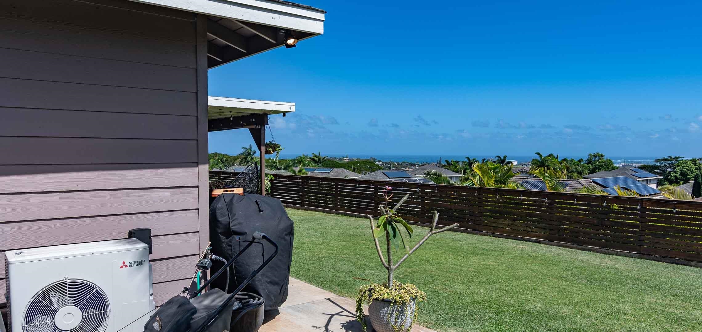 Entertainer’s delight! Owners transformed this property into one of the premier properties in Kehalani for hosting gatherings, relaxing under a super-sized covered lanai, and taking advantage of astonishing ocean and Haleakala mountain views. Through having a retaining wall built and bringing in fill, an area for a wide lawn and expansive covered lanai was created. The meticulously maintained property is both a peaceful oasis and perfect locale to welcome friends and family. Visitors notice the surprising sense of privacy in a location that is so convenient. The lower level features pre-engineered hardwood floors in the living room, dining area, and family room, leading out to the extra-large covered lanai with stamped concrete and Trex flooring, and a sprinklered back yard, which is also accessible from side gates. The kitchen, with seating at the island with granite counter-tops, includes a new Bosch dishwasher, a double-oven range, refinished cabinets and porcelain tile floors. A fun under-stairs play area, half-bathroom with bidet and 2-car garage with Tesla charger (compatible to other EV vehicles with an adaptor) in front of the home are also on the ground level. 3 bedrooms and 2 remodeled bathrooms are located upstairs, with ocean and mountain views. The property comes with 2 Mitsubishi split air-conditioners (master bedroom and downstairs.)