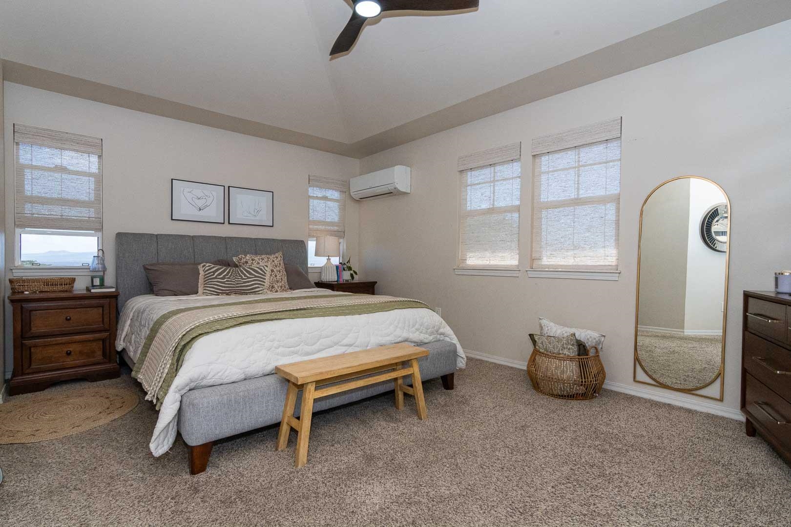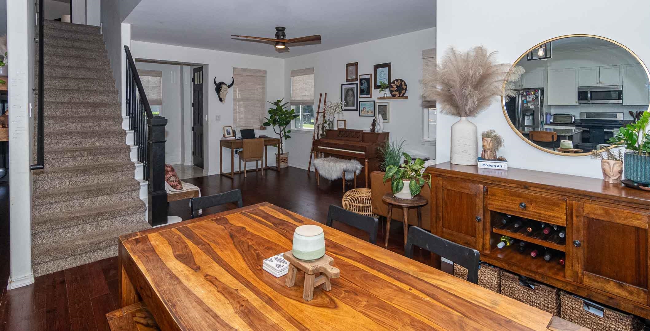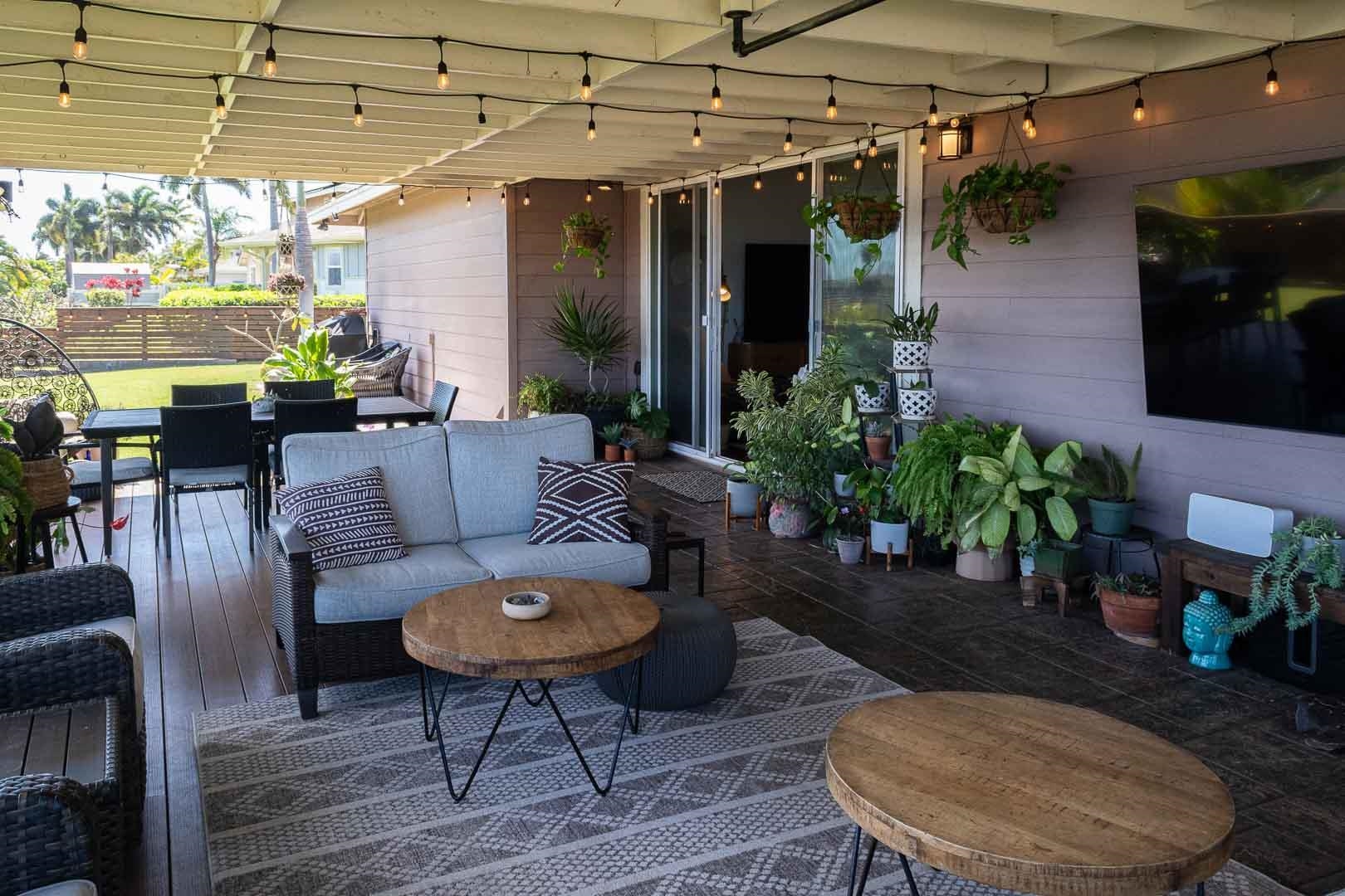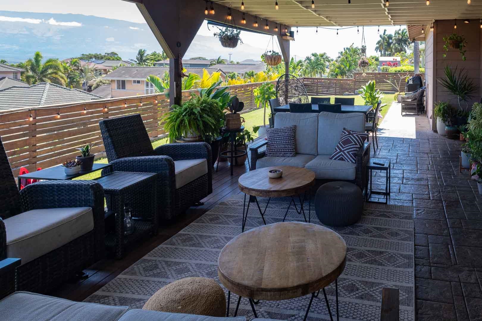 Entertainer’s delight! Owners transformed this property into one of the premier properties in Kehalani for hosting gatherings, relaxing under a super-sized covered lanai, and taking advantage of astonishing ocean and Haleakala mountain views. Through having a retaining wall built and bringing in fill, an area for a wide lawn and expansive covered lanai was created. The meticulously maintained property is both a peaceful oasis and perfect locale to welcome friends and family. Visitors notice the surprising sense of privacy in a location that is so convenient. The lower level features pre-engineered hardwood floors in the living room, dining area, and family room, leading out to the extra-large covered lanai with stamped concrete and Trex flooring, and a sprinklered back yard, which is also accessible from side gates. The kitchen, with seating at the island with granite counter-tops, includes a new Bosch dishwasher, a double-oven range, refinished cabinets and porcelain tile floors. A fun under-stairs play area, half-bathroom with bidet and 2-car garage with Tesla charger (compatible to other EV vehicles with an adaptor) in front of the home are also on the ground level. 3 bedrooms and 2 remodeled bathrooms are located upstairs, with ocean and mountain views. The property comes with 2 Mitsubishi split air-conditioners (master bedroom and downstairs.)
