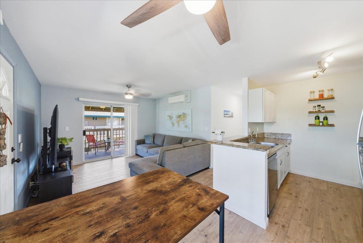 Beautifully updated 2 bed, 1.5 bath second-floor condo in Southpointe at Waiakoa, just moments from Sugar Beach. This 750 sq ft home features new flooring, fresh paint, upgraded kitchen cabinets, granite countertops, and stainless steel appliances. Enjoy 3 high efficiency split AC units, in-unit washer/dryer, and a private 70 sq ft covered lanai with peaceful tree views. Two side-by-side parking stalls (not tandem). Pet-friendly complex on 6.71 acres with playground and mature landscaping. Located on the quiet north end of the community near Kihei Canoe Club and Sugar Beach Bakery. Long-term residential community – no vacation rentals.