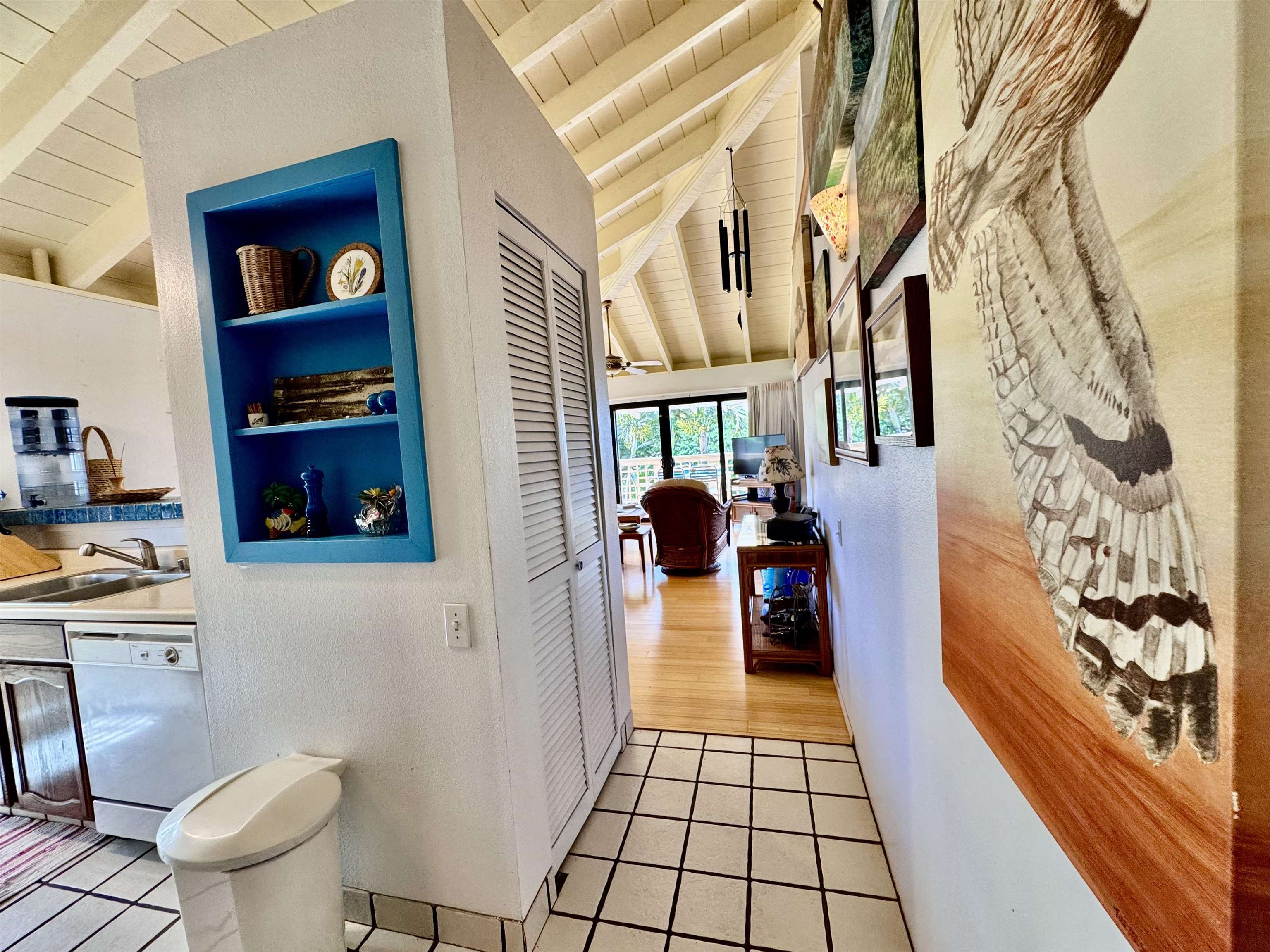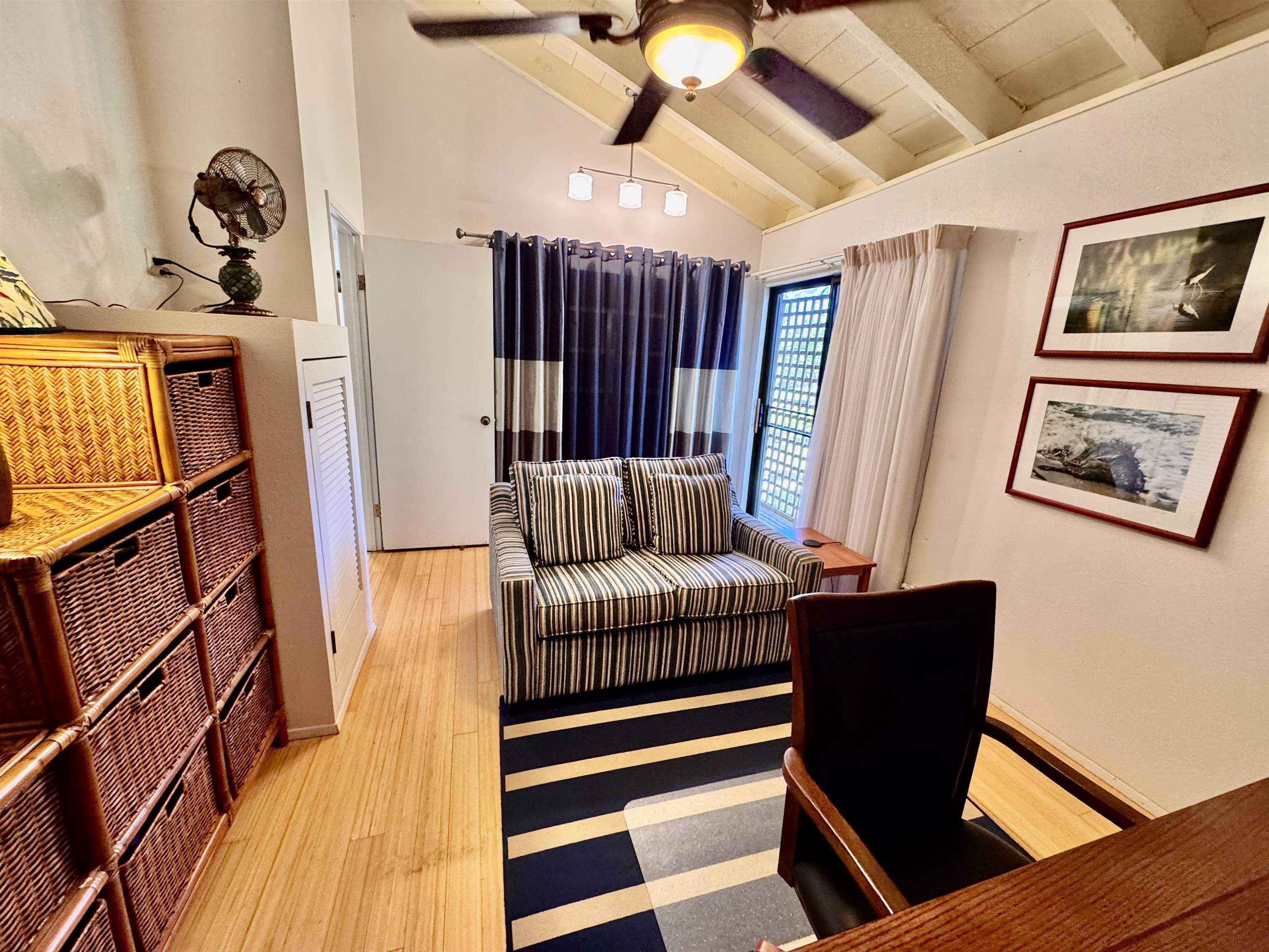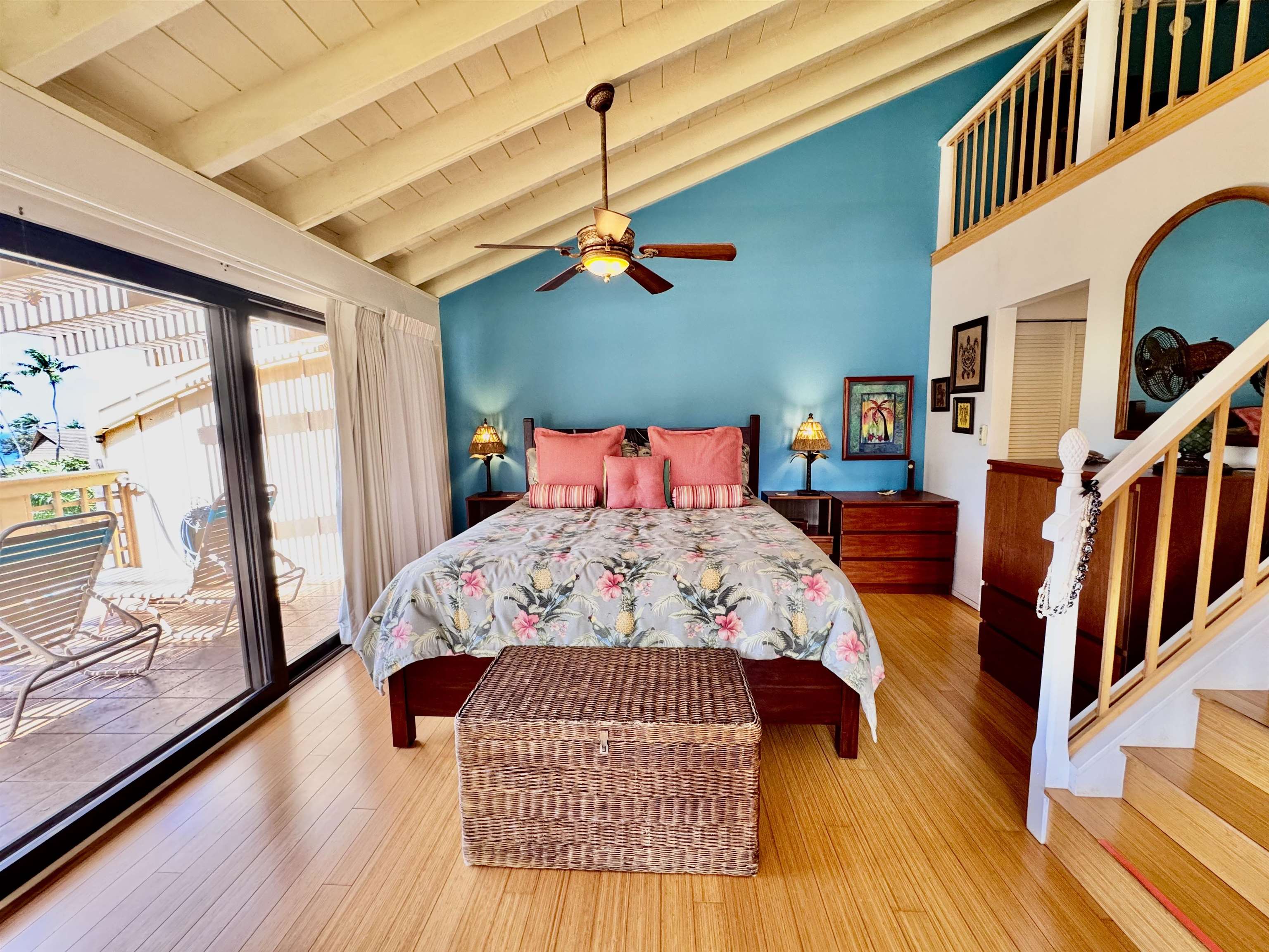 Ke Nani Kai resort exudes charm and easy living. This spacious and inviting condo unit boasts high ceilings and a wrap-around lanai with small water views, providing ample outdoor space for lounging and dining. It offers two bedrooms and two bathrooms, with a finished loft that you access up a high quality stair case. It is being sold turn key and fully furnished. Notably, it has not been used as a rental property. The lush tropical grounds surrounding the condo and resort add to its tropical appeal. Amenities include a tennis court, BBQs, pool & spa, and a cabana. Additionally, it’s just a short walk to the pristine white sand beaches, and a short drive to Dixie Maru, the quiet snorkeling beach. Paradise found!