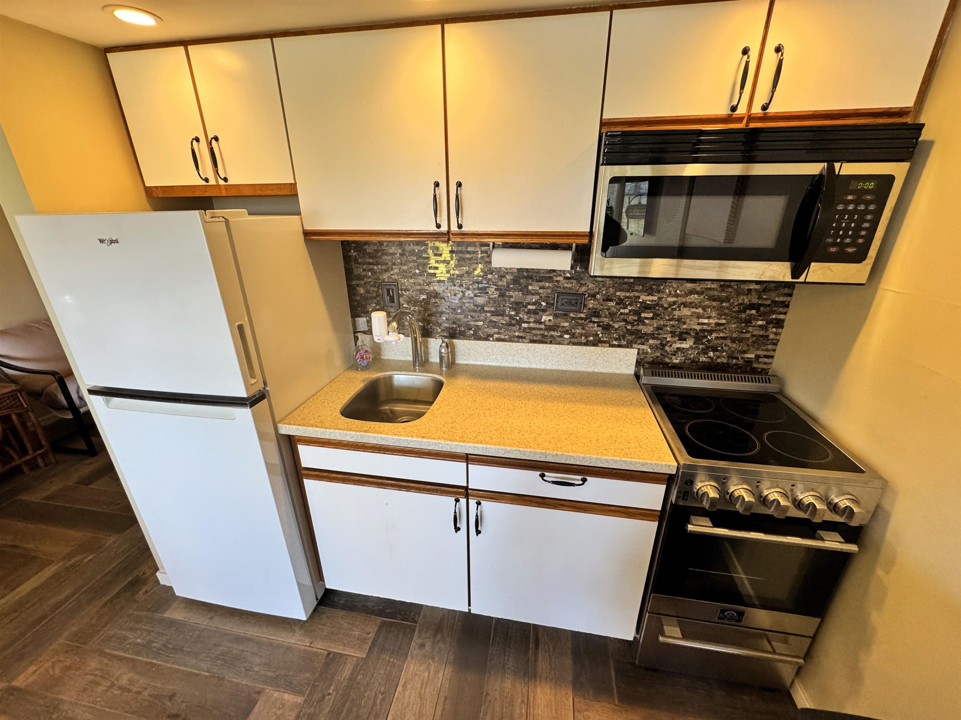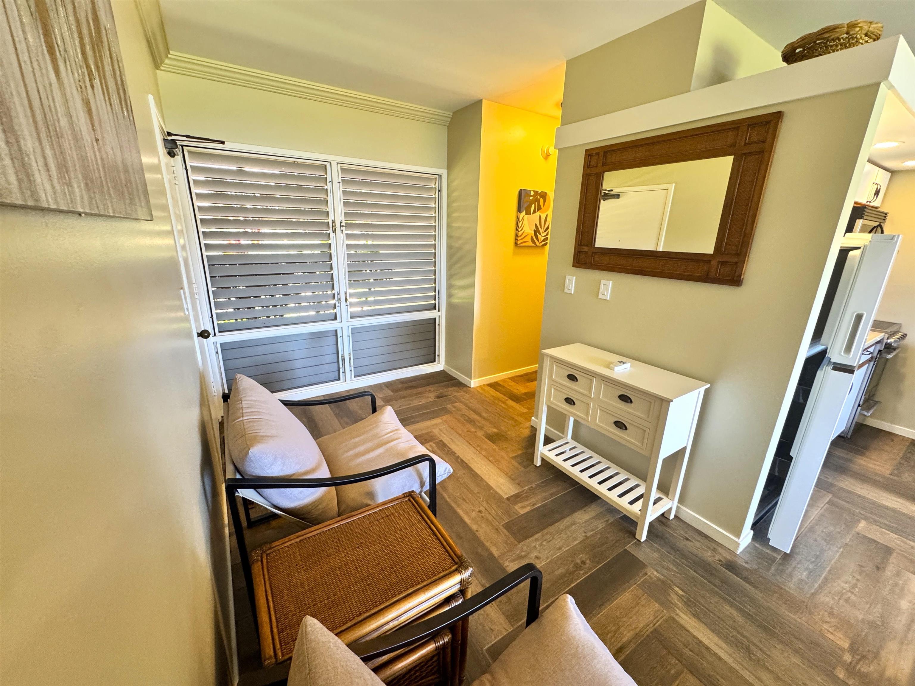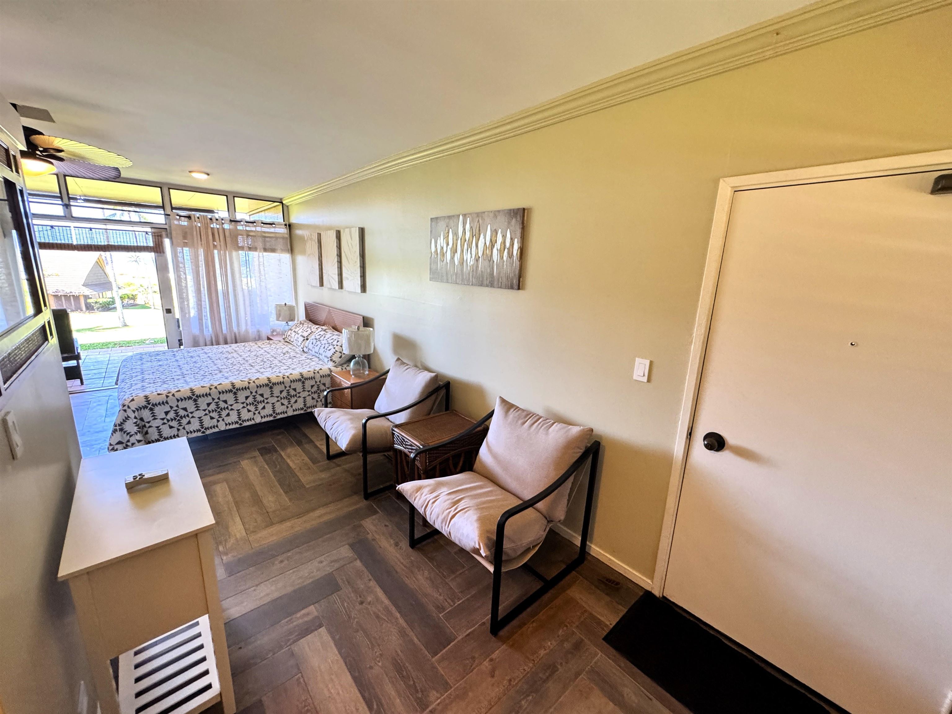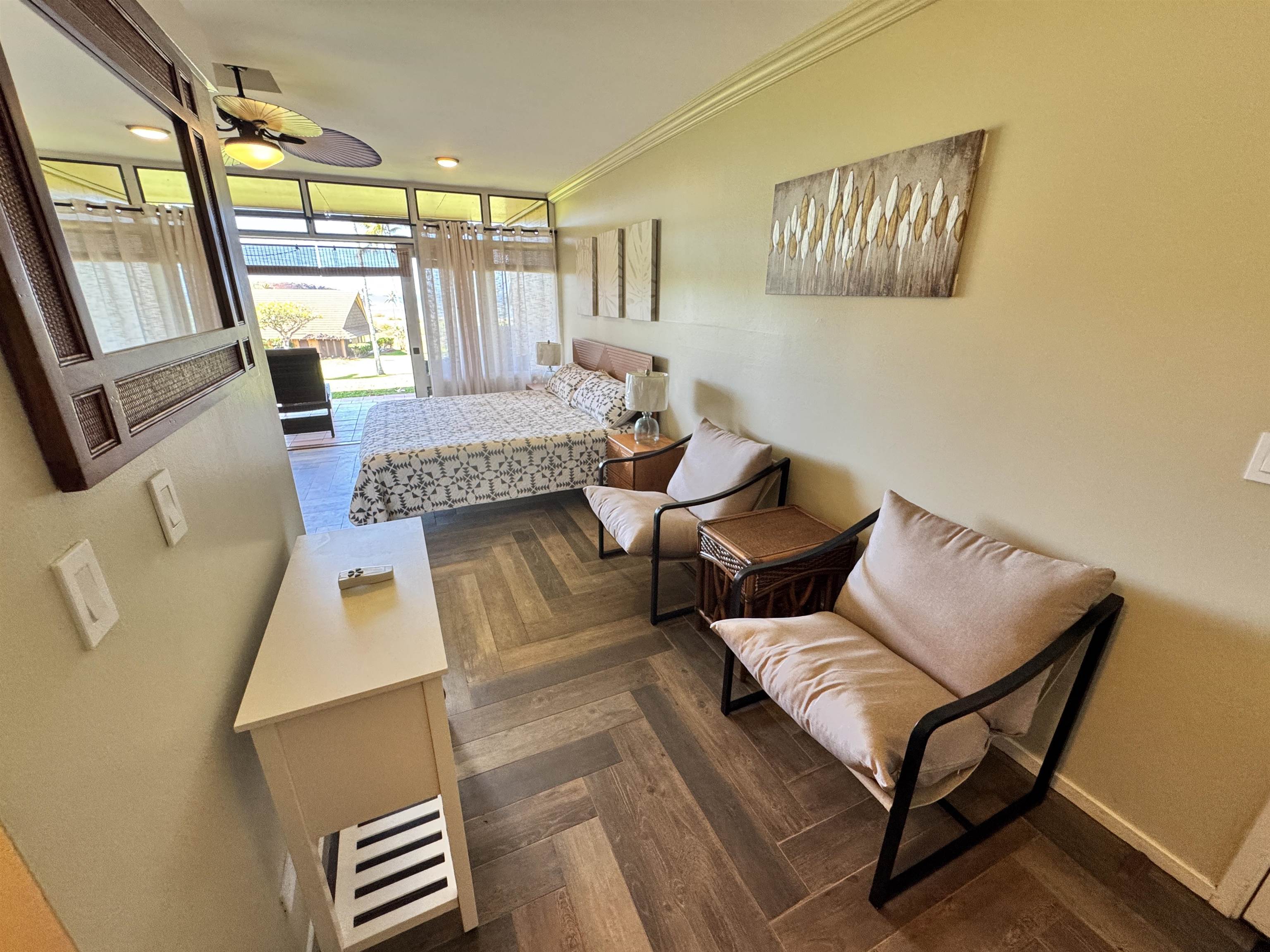 Escape to the tranquil west side of Molokai in this beautifully updated, ground-floor studio. Unit 1162 is located in a resort-zoned community, making it a rare and legal opportunity for short-term vacation rentals—perfect for the savvy investor or the part-time resident looking to offset costs. This gem offers the perfect blend of modern convenience and island charm, featuring stylish herringbone-patterned flooring and a fully equipped kitchen with a stainless steel range and updated cabinetry. The open-concept living area flows seamlessly onto a private lanai, where you can enjoy your morning coffee against a backdrop of lush tropical grounds and the Pacific blue. Practicality meets paradise with the rare inclusion of an in-unit washer/dryer and a functional layout designed for effortless stays. Just steps from your door, you can explore the golden sands of Kepuhi Beach, lounge by the oceanfront pool, or take a short stroll to the world-renowned Papohaku Beach. Whether you’re watching seasonal whales from the shore or enjoying legendary "green flash" sunsets, this turn-key, fee-simple condo is your gateway to the ultimate Hawaiian lifestyle.