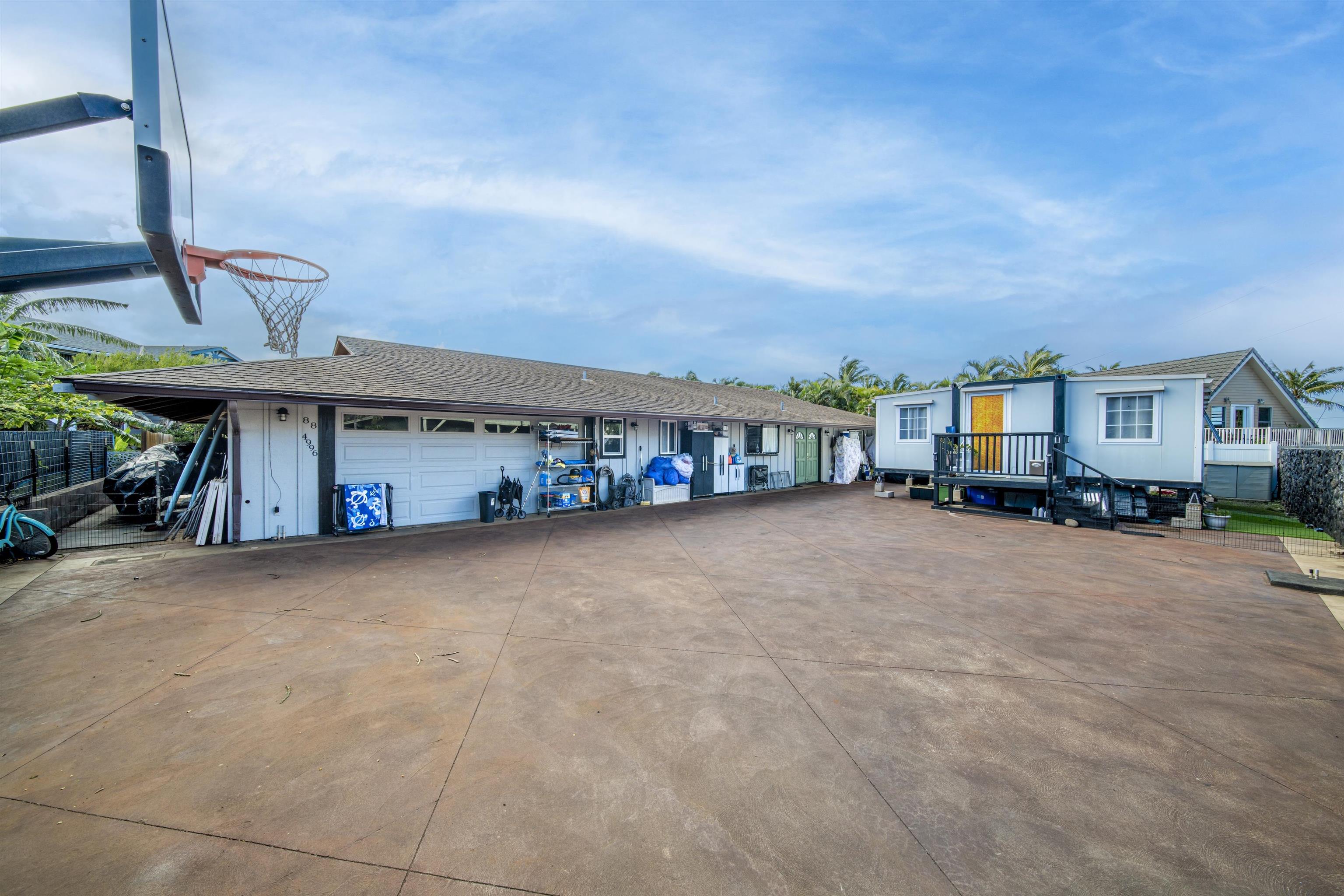 This beautifully upgraded single-story home sits on an expansive 10,000 sq ft lot with no HOA, offering flexibility, privacy, and tons of potential. Ideally located just minutes from championship golf, popular restaurants, world-famous beaches, scenic hiking trails, and some of Maui’s best surf spots. Extensively improved inside and out, this home blends comfort with thoughtful upgrades. Within the last 2 years: new flooring in the dining room, kitchen, and hallways; new refrigerator and washer; and fresh interior paint in main living areas. Within the last 4 years: all new windows, new sliding glass doors in the bedrooms, two additional split AC systems (six total), updated electrical plugs and switches throughout, new carpet in two bedrooms, and a new garage door. Step outside to enjoy new concrete driveway, two custom rock walls, an extended patio roof, and a newly built back deck, perfect for entertaining. The property also features a $20,000 hot tub, a tiny home for guests or rental potential, professional basketball hoop with lighting, and is prepped for an electric gate. Rarely does a property offer this level of space, upgrades, and location in highly desirable Napili. A true island retreat with room to live, play, and grow.