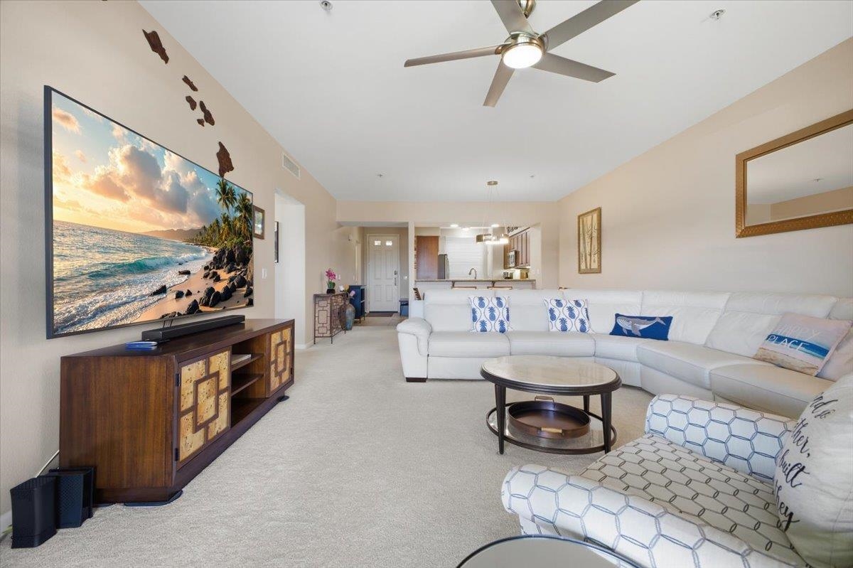 2.25% assumable mortgage! Ke Ali‘i Ocean Villas B204 is an impeccably maintained 2-bedroom, 2-bath condo just steps from Kamaole Beach Park I. This spacious, wide-bay floor plan is offered fully furnished, featuring granite countertops, stainless steel appliances, abundant pantry storage, and a bright, open kitchen that flows seamlessly into the dining and living areas. The primary suite is privately tucked away with lanai access, a walk-in closet, double vanity, soaking tub, walk-in shower with bench, and private water closet, while the guest bedroom is generously sized with excellent natural light. The large covered lanai is a true highlight - complete with roll-down sunshades and additional storage, creating the perfect indoor-outdoor island lifestyle space. A bonus for condo living, this unit includes a private one-car garage with room for a vehicle, surfboards, and beach gear. Turnkey, beautifully furnished (including Natuzzi leather seating), and in pristine, model-like condition, this is an exceptional opportunity to own across the street from the ocean in South Kihei.