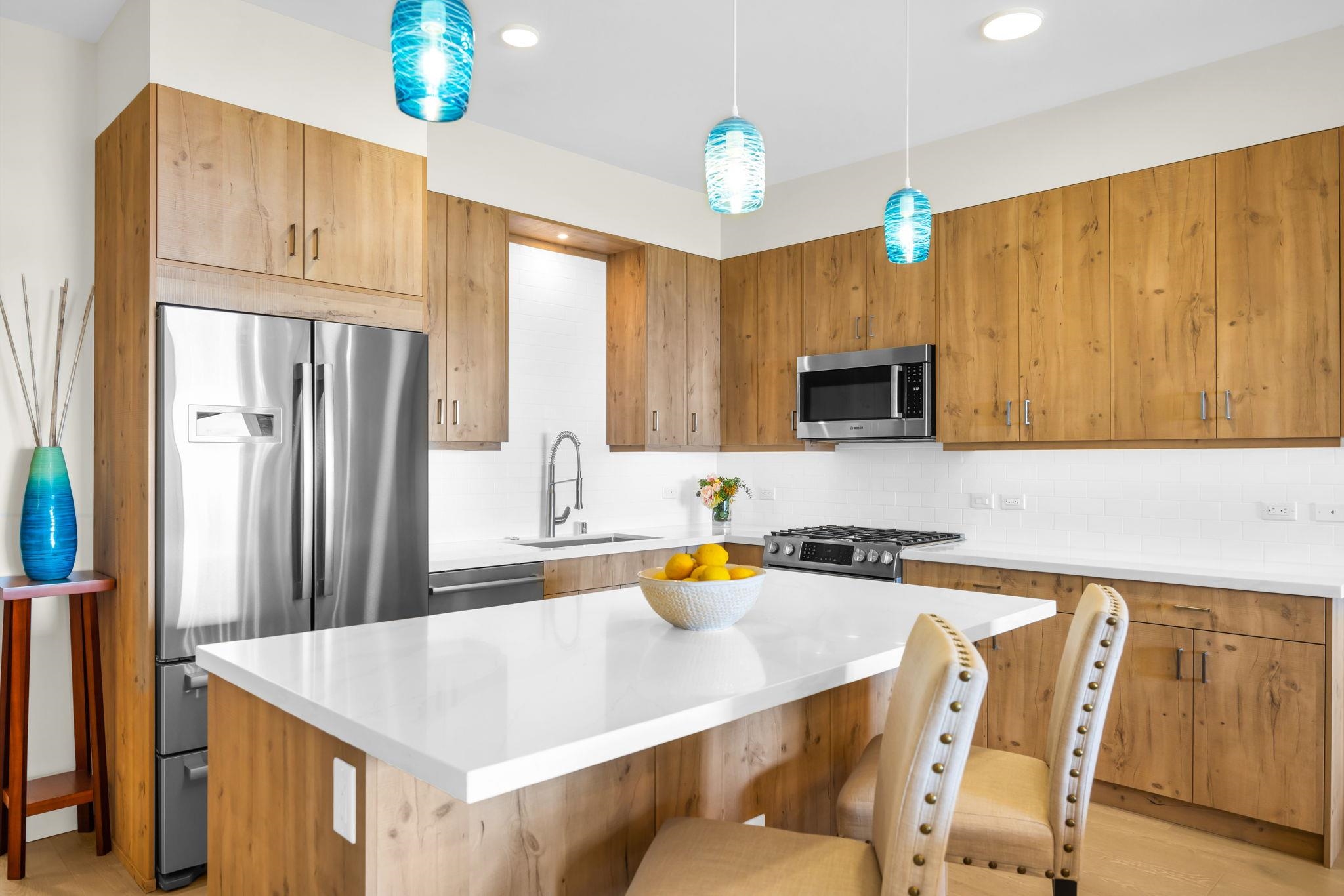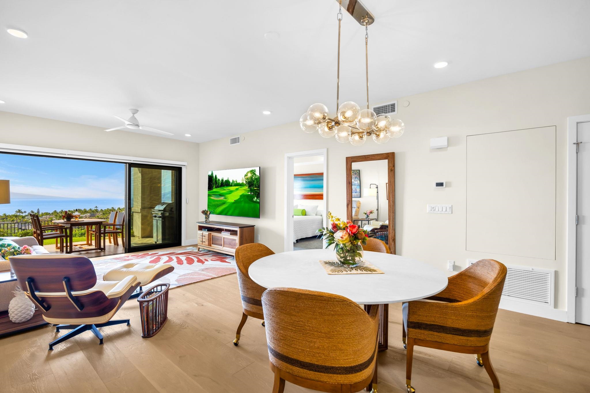 Keala O Wailea 5-103 offers panoramic Pacific Ocean views from one of Wailea's premier hillside communities. This single-level 2-bedroom, 2-bathroom residence spans approximately 1,248 square feet and was built in 2018, with updates completed in 2025. Retractable glass doors frame sweeping ocean vistas and create seamless indoor-outdoor living. The open-concept layout positions the living area, kitchen, and primary suite to capture vibrant sunsets and seasonal whale activity. The kitchen features Bosch stainless steel appliances, quality countertops, maple cabinetry, and a functional design ideal for everyday living or entertaining. Engineered hardwood flooring enhances the main living areas, with plush carpet in the bedrooms. The primary suite offers ocean views, a walk-in closet, and an en suite bath with dual vanities. A privately situated second bedroom provides flexibility for guests or office use. The covered lanai delivers a front-row seat to Maui's iconic scenery. Located within the exclusive 70-residence Keala O Wailea enclave, Building 5 enjoys a peaceful setting just minutes from beaches, golf, dining, and shopping. Seller intends to complete a 1031 exchange at no cost or delay to the buyer.
