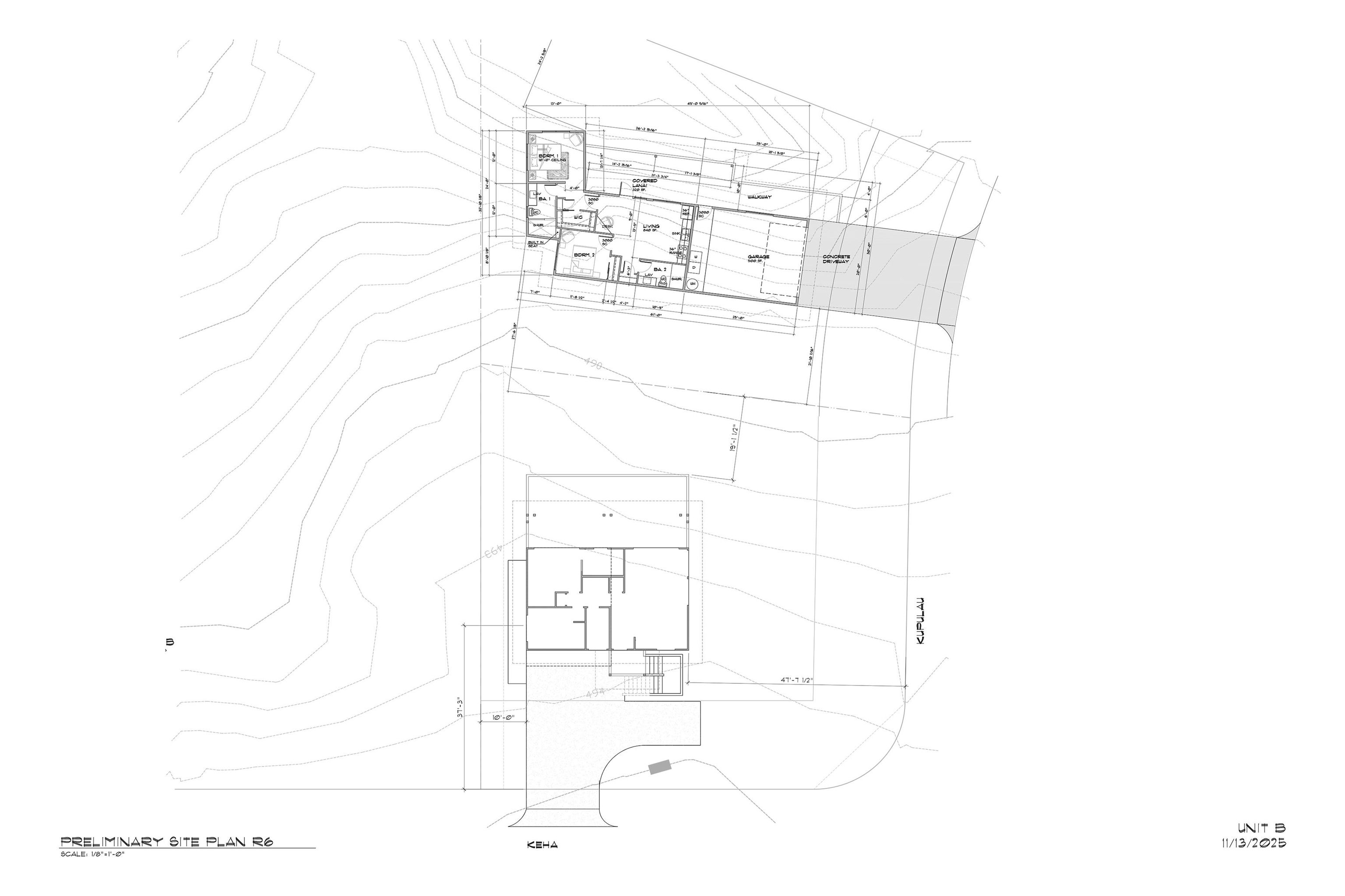 Great large corner lot! Unit B of a 3 unit CPR is accessed from Keha Drive and consists of 8,396 square feet. Choose to build a single story 840 square foot home or like in the sample rendering, build a 2 story home with a 2 car garage underneath to capture the current ocean views. With high prices of older homes that need vast amounts of renovating, it makes sense to build a new home on this spacious level lot. A new shared septic system has been newly installed for your construction convenience.