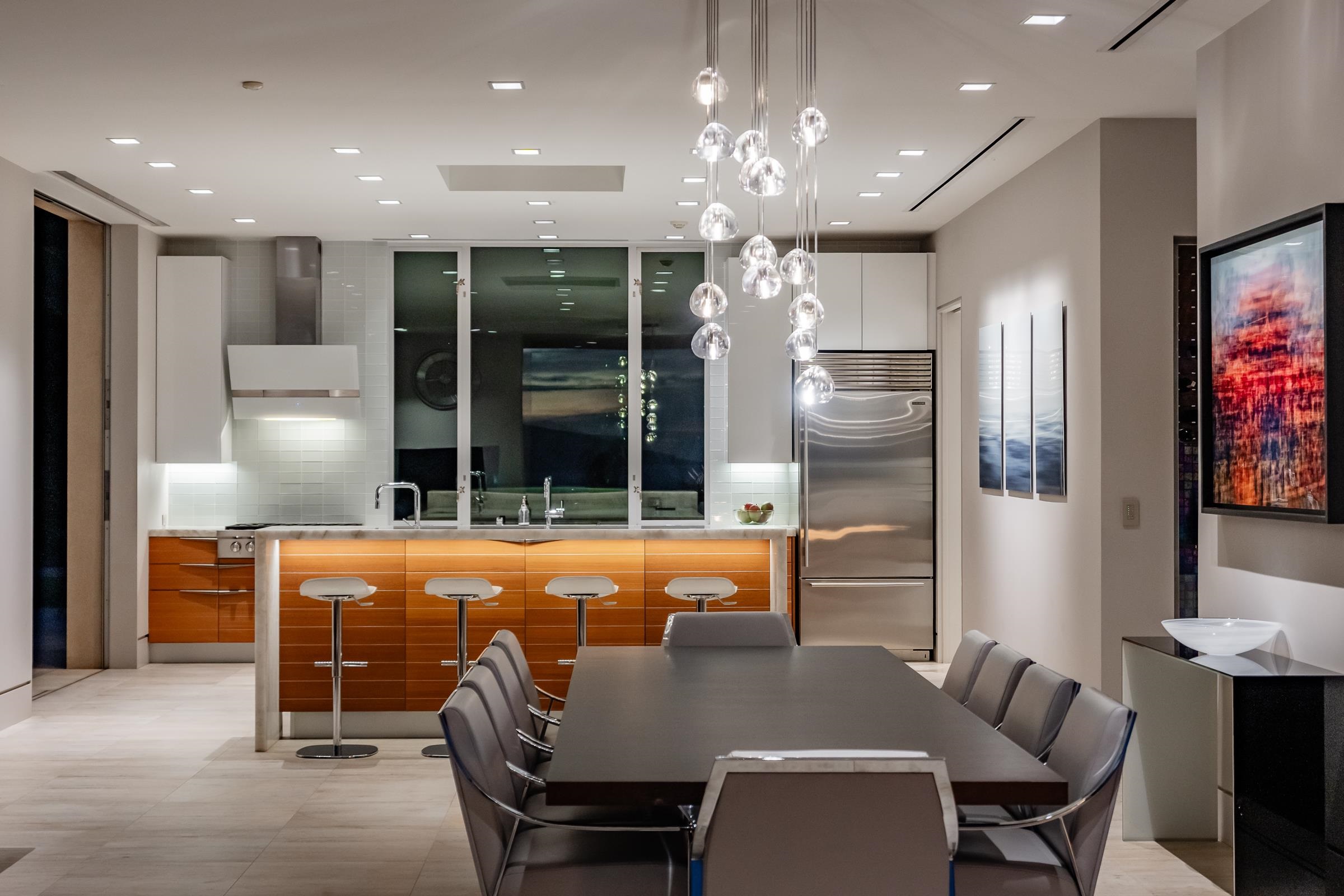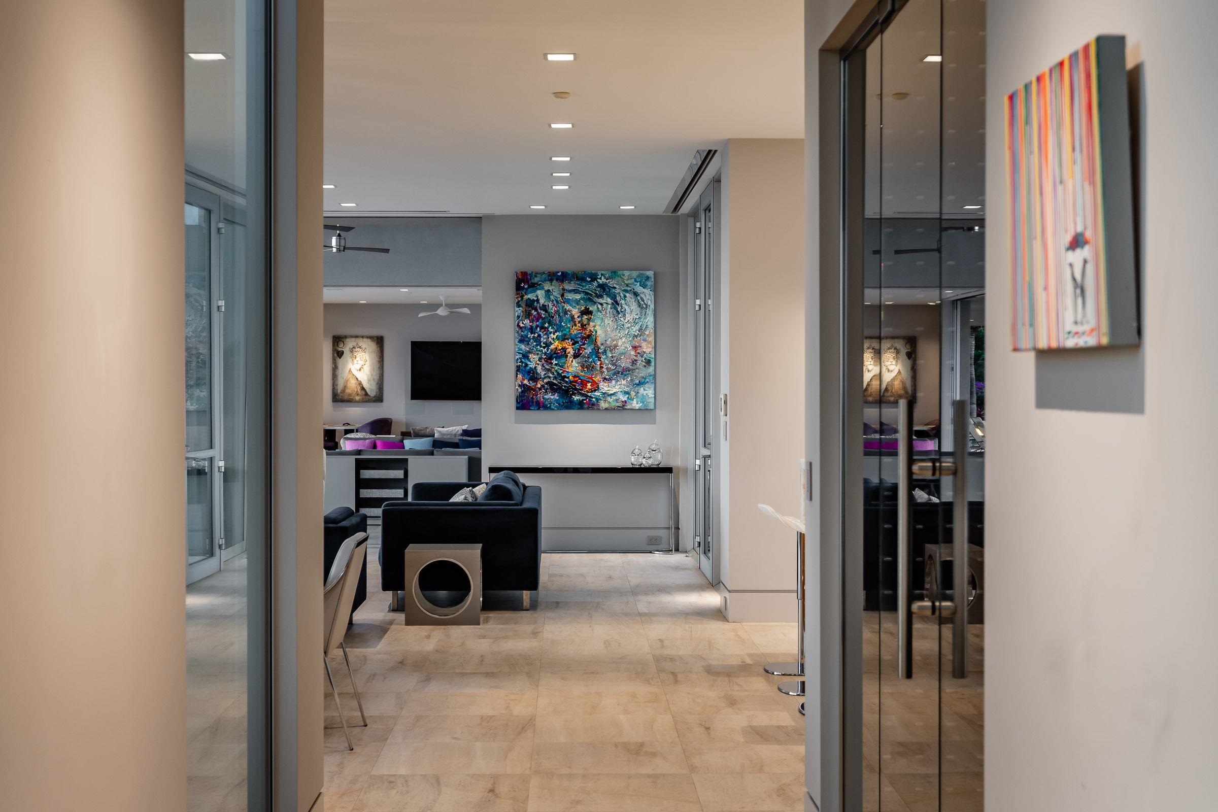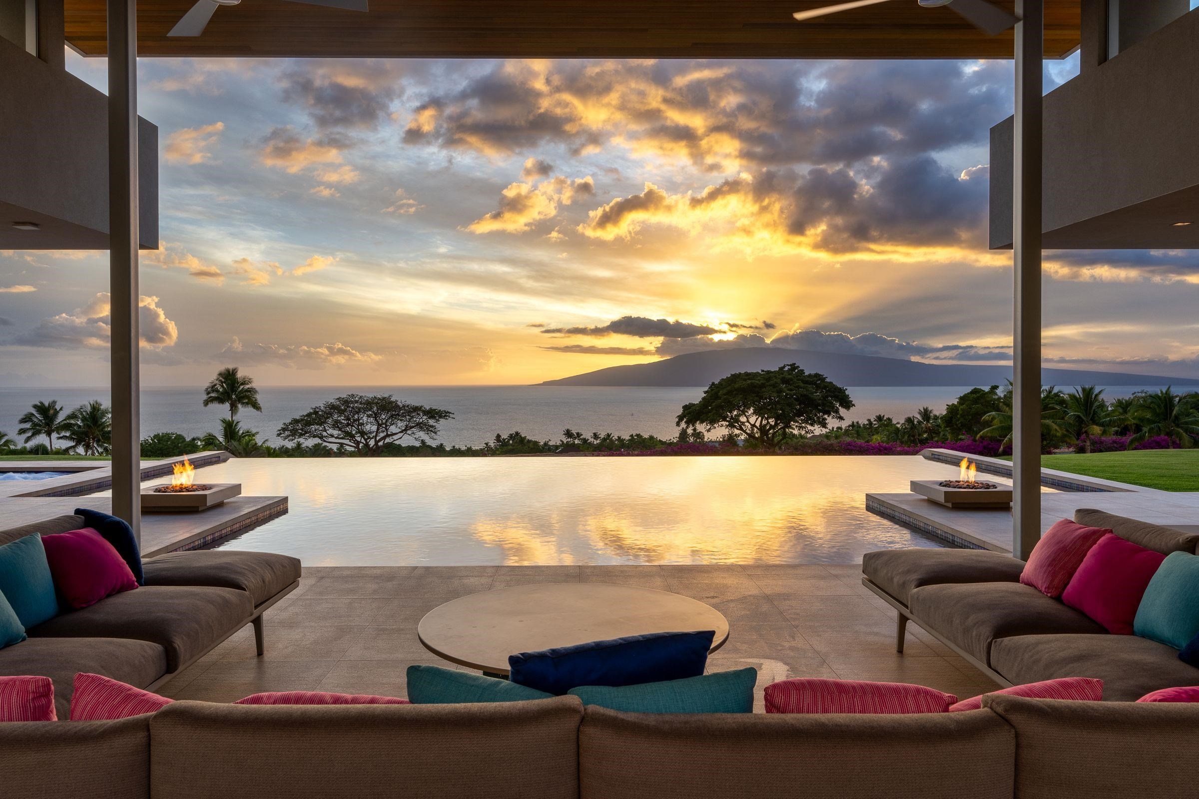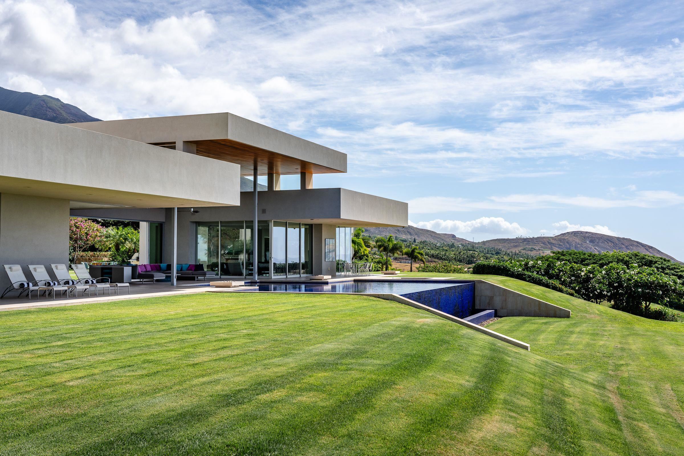 Welcome to 936 Punakea Loop, a truly one-of-a-kind, custom-designed residence on over 5 private acres. This exceptional modern home seamlessly integrates with its stunning natural surroundings, capturing the beauty of morning sunrises over the West Maui Mountains and unforgettable sunsets over the Pacific Ocean. The home’s architectural design is sophisticated yet minimalist, with over 6,000 square feet under a cantilevered roof and expansive disappearing glass pocket doors that dissolve the boundaries between the spacious living areas and the covered grand lanai, transforming the entire space into a single, airy pavilion. Inside, floor-to-ceiling windows flood each room with ambient light and allow the island’s natural beauty to take center stage. The heart of the home is its chef-inspired kitchen, featuring premium finishes, top-of-the-line appliances, and a 1,500-bottle wine room—perfect for entertaining or enjoying quiet meals at home. Designed for privacy, the light-filled primary suite and two guest bedrooms are set at opposite ends of the home. An elegant office/library, complete with a closet, offers a quiet space to focus on projects or the flexibility to serve as a fourth bedroom if desired. Offering both style and function for an exceptional living experience, this fully integrated smart home features automated lighting and shades for effortless ambiance control. For recreation and wellness, the property is unparalleled, with your own private 3-par golf course and artificial turf putting green for perfecting your short game. A fully equipped fitness studio caters to all exercise needs, while a private outdoor healing platform, peacefully nestled amid the trees, provides a tranquil setting for enjoying massages, practicing yoga, or meditation. This residence is more than just a home; it is a lifestyle destination where luxury, nature, and modern convenience coexist in perfect harmony.