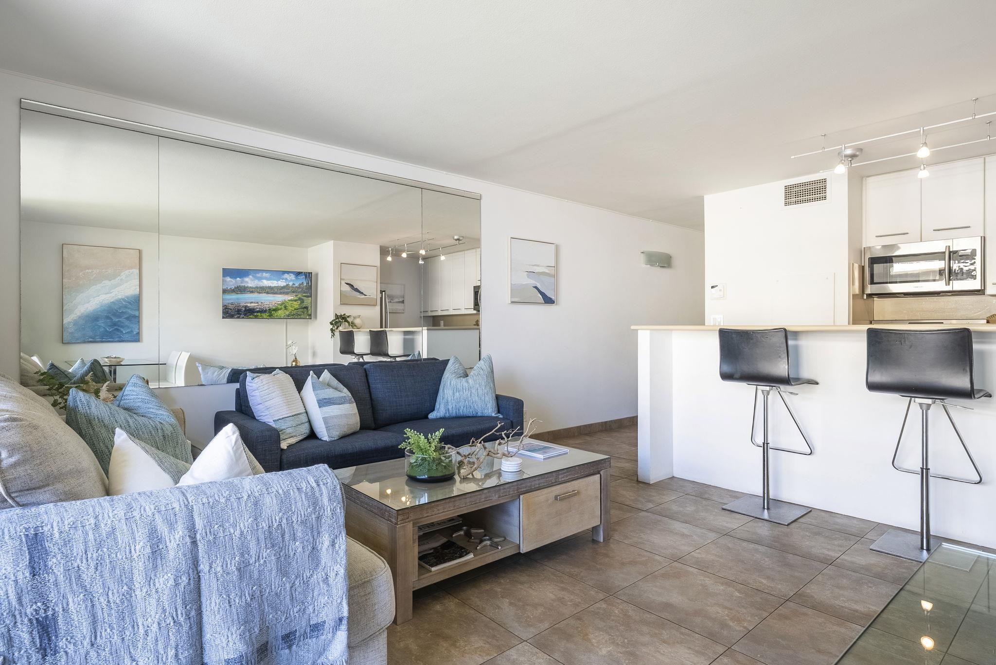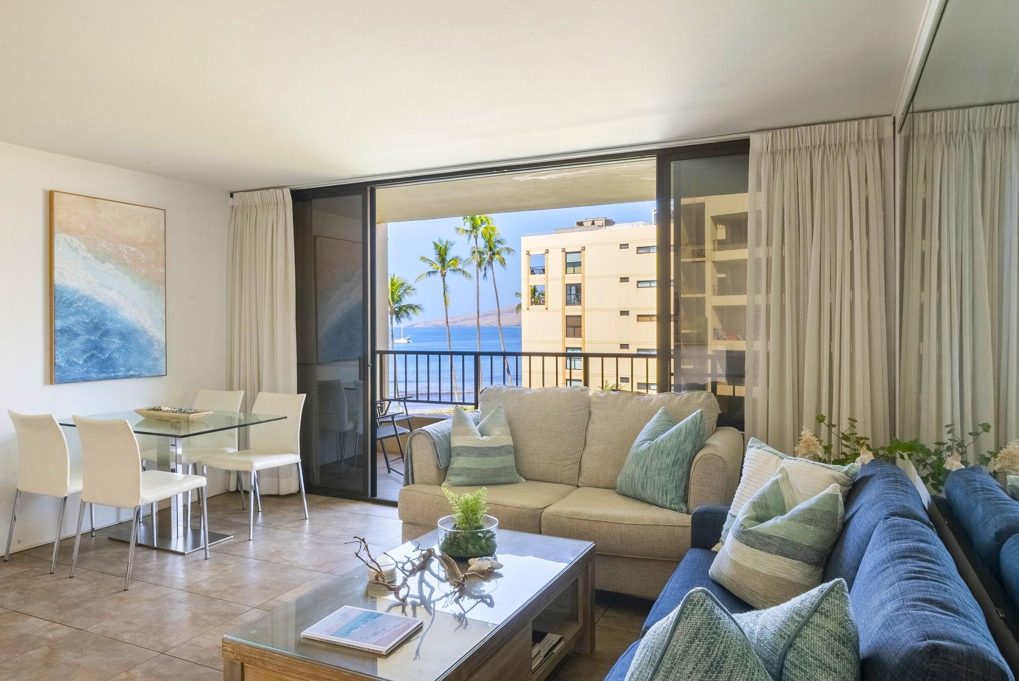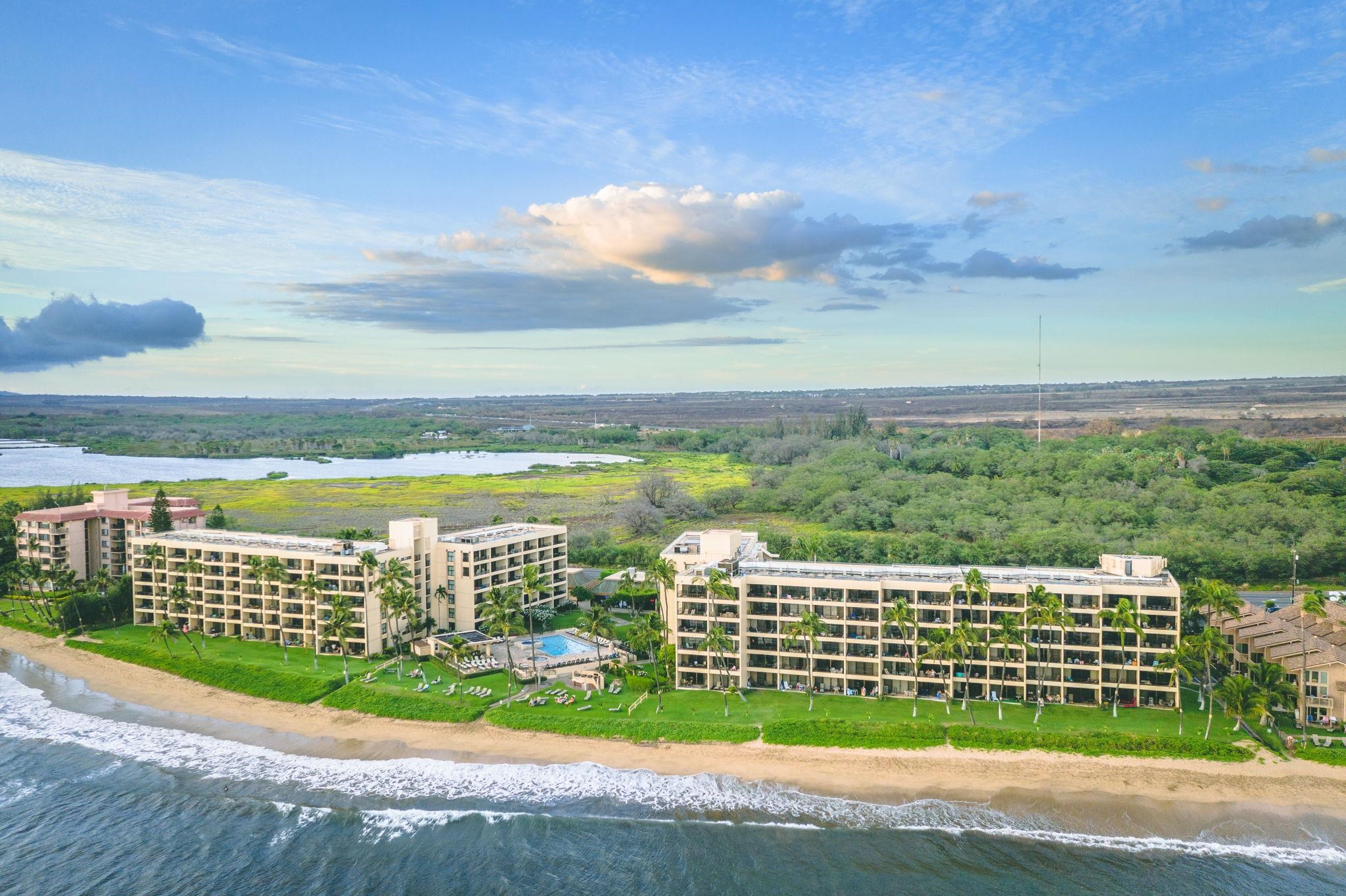 Imagine waking up to the sound of waves, stepping onto your private lanai, and being greeted by BLUE OCEAN VIEWS. Welcome to SUGAR BEACH RESORT#408, a BEAUTIFUL HOTEL ZONED BEACHFRONT retreat where YOUR MAUI BEACH LIFESTYLE THRIVES. From the moment you enter, you’ll feel an instant sense of tranquility in this TASTEFULLY APPOINTED, FULLY FURNISHED TURNKEY CONDO. Located on one of the LONGEST UNINTERRUPTED SANDY SHORELINES in the State of HAWAI'I, your dream of owning an OCEANFRONT ESCAPE IS NOW HERE. Your private lanai provides the perfect setting to savor sunsets and watch whales play in the Pacific (during season). The open-concept FULL KITCHEN is designed for effortless island living, while the IN-UNIT WASHER/DRYER, along with CENTRAL AIR CONDITIONING ensures comfort and convenience. An additional OUTSIDE STORAGE CLOSET provides extra space for your beach essentials. Sugar Beach Resort offers resort-style amenities, including a OCEANFRONT POOL, SPA, GOLF PUTTING GREEN, and an OCEANSIDE BBQ area. The beautifully landscaped grounds feature a TRANQUIL KOI FISH POND, creating a RELAXING setting. Centrally located in Maui, this property provides quick access to Kahului Airport (approx.15-minute drive). Monthly Condo Assoc. Maintenance fees include utilities—electricity, central air conditioning, water, sewer, trash, cable TV, internet, and more (ask for details) This is more than just a condo—it’s a lifestyle. The sand, the sunsets, and the serenity are waiting for you. SUGAR BEACH RESORT UNIT 408 ~ Make it yours—schedule your private showing today.