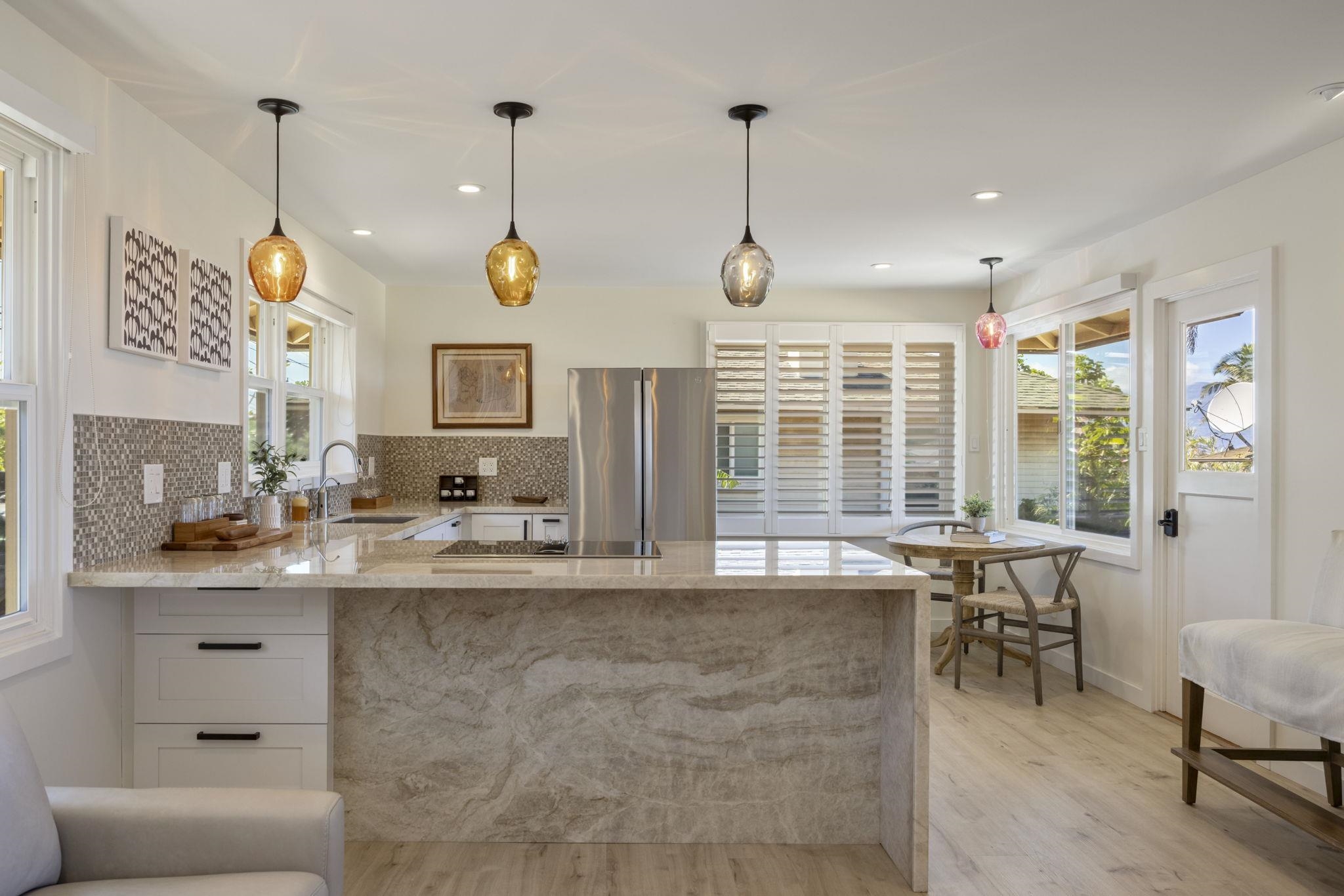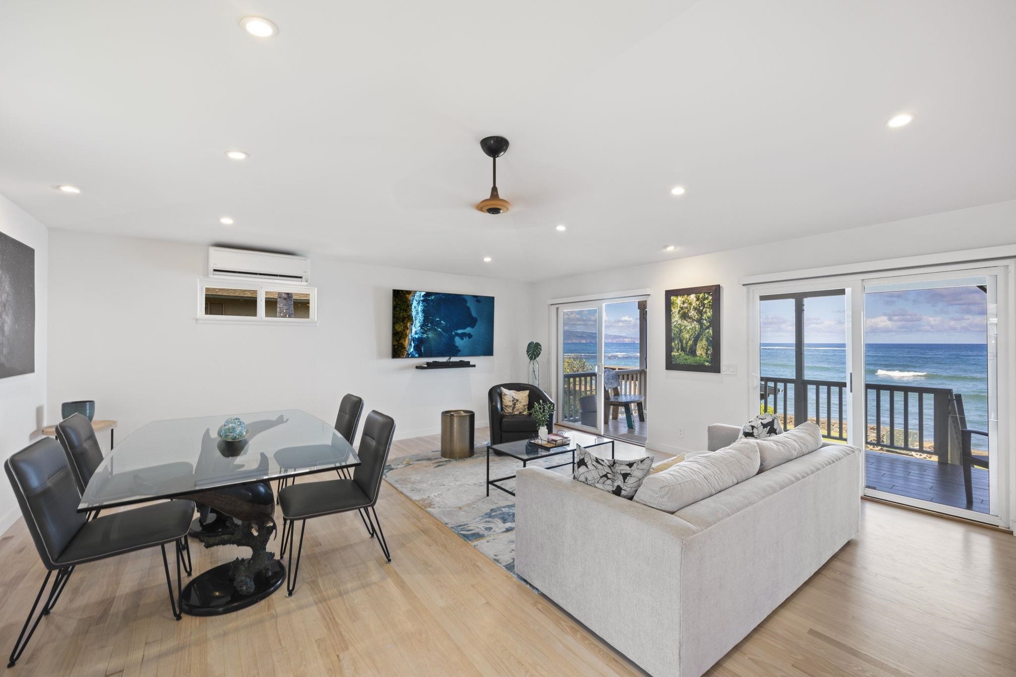 Classic North Shore Maui. Situated on the ocean in Ku’au, these two homes, offer a peaceful escape just minutes from Pa’ia Town. The beachfront house boasts sweeping ocean views, and a front-row seat to Tavares Bay surf action, while the primary suite offers a breathtaking vantage point – imagine watching turtles and whales right from you bed! Complete with a second home that provides additional space, privacy and more ocean views. Recently updated with casual beach elegance in mind, this property features multiple homes with flexible floor plan and guest suites. Whether you’re seeking a family retreat, an intimate gathering space, a corporate getaway, or a legacy estate for extended family, this property, not to be missed, will meet and exceed your needs. It’s a place where cherished moments unfold, and lifetime memories are made. Owners/Listor are licensed Realtors in Hawai’i. Change the game and reset your life with this oceanfront property.