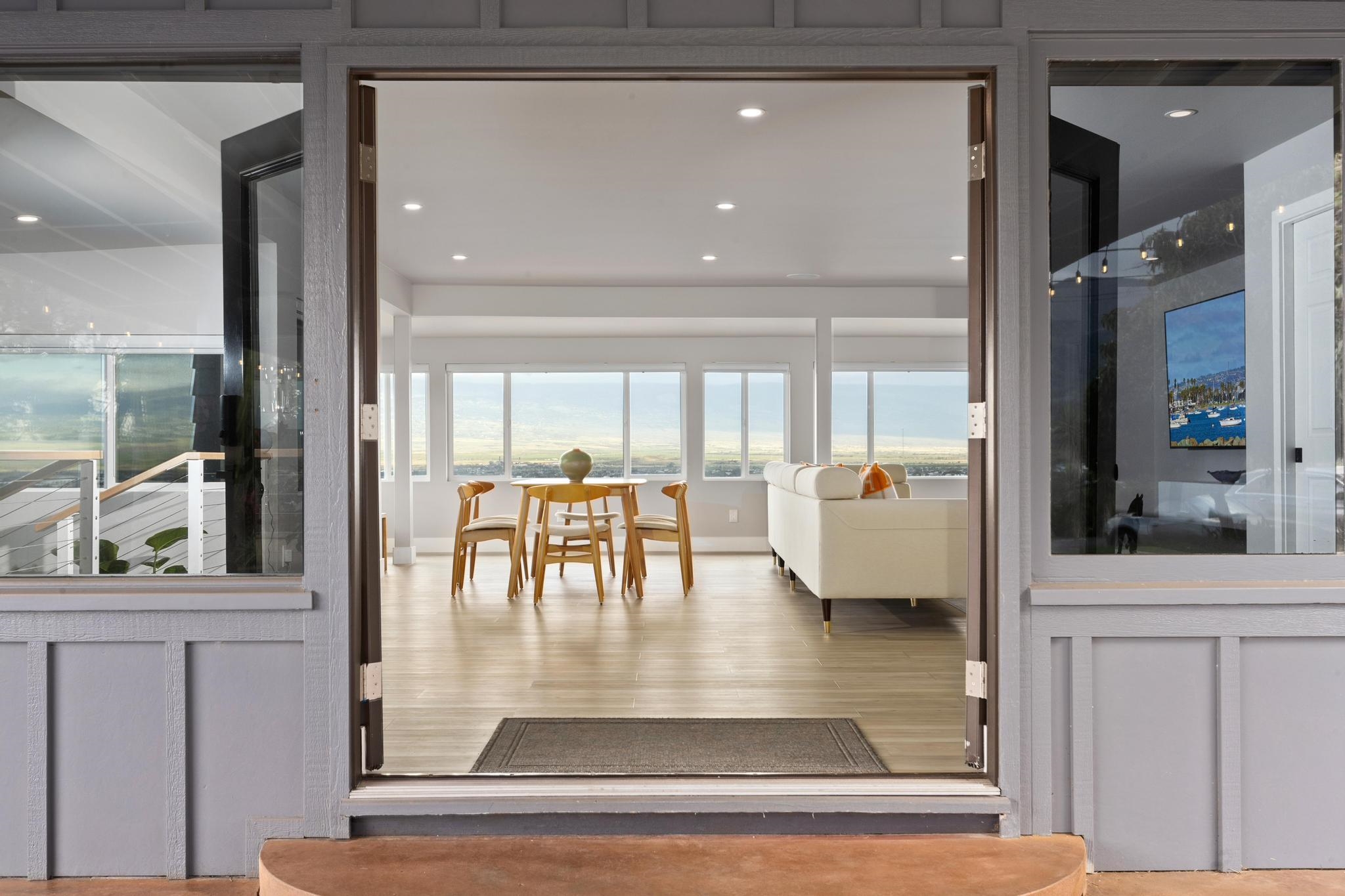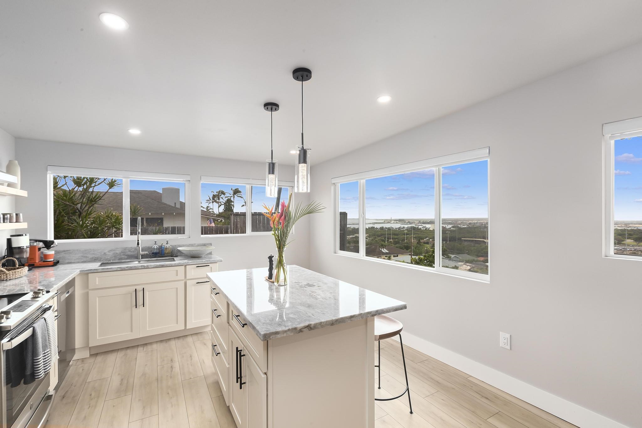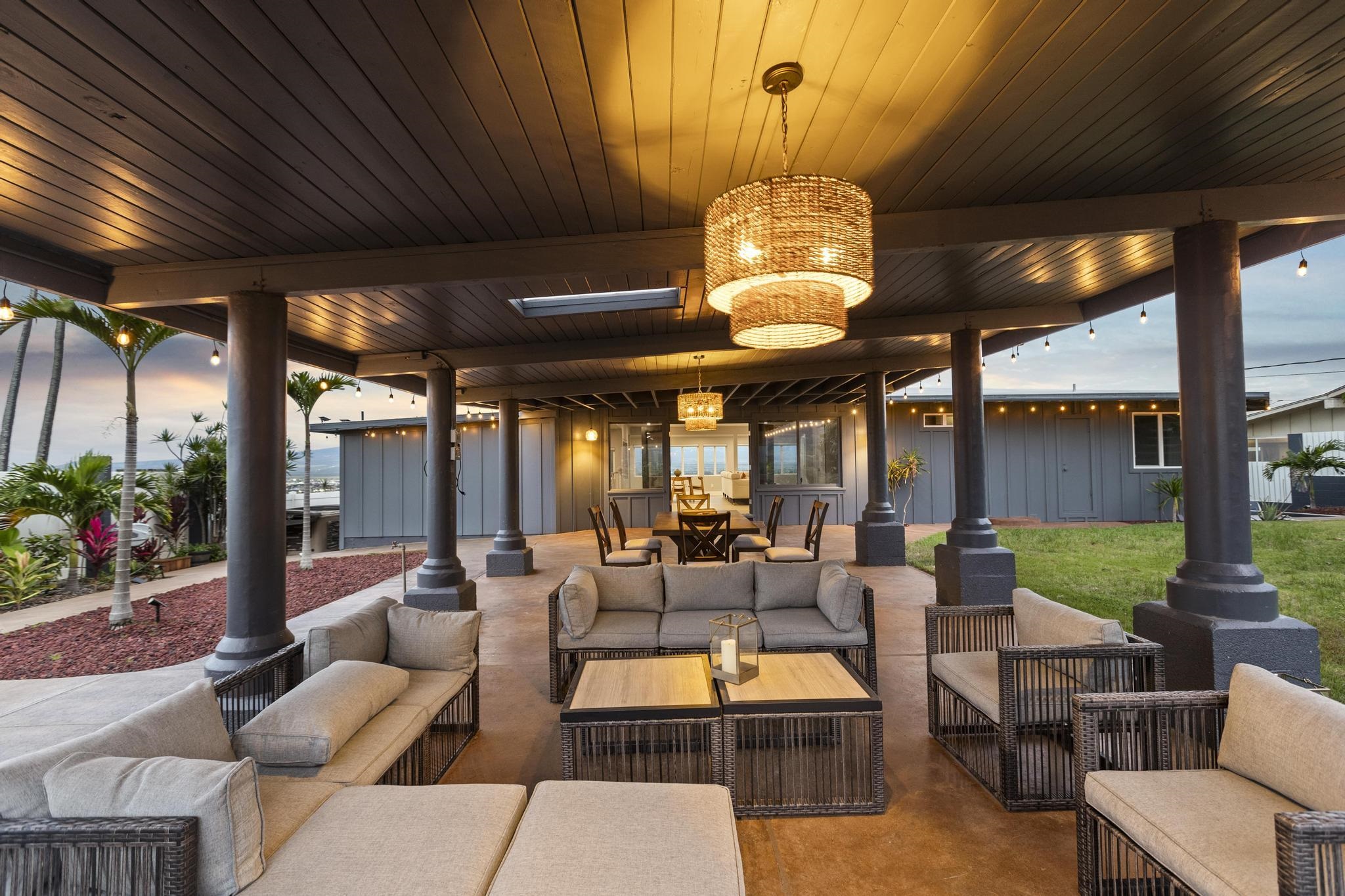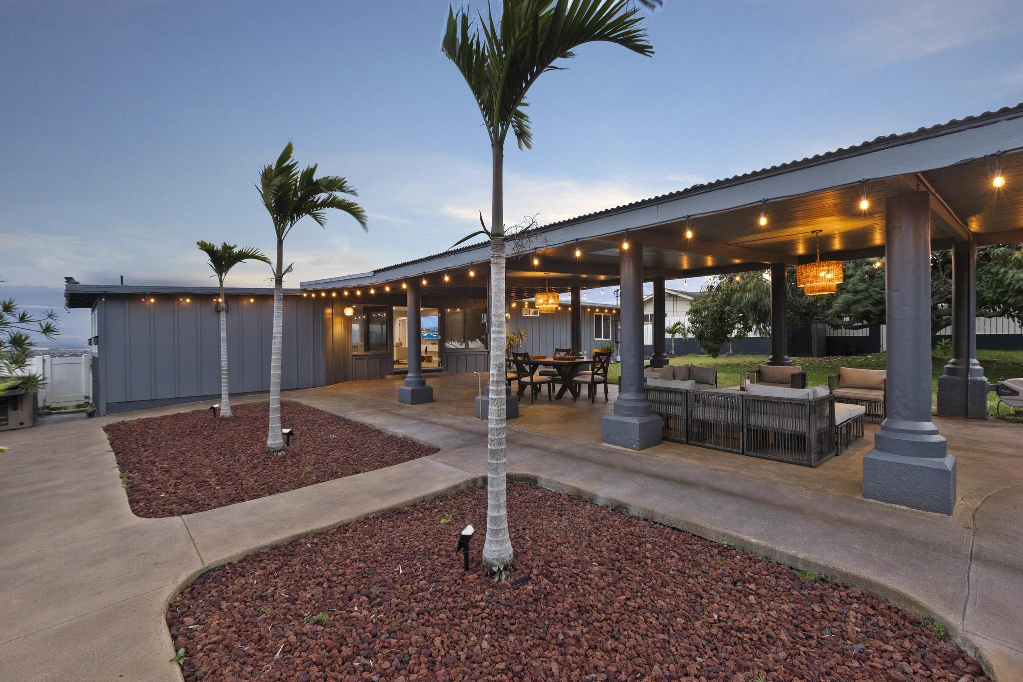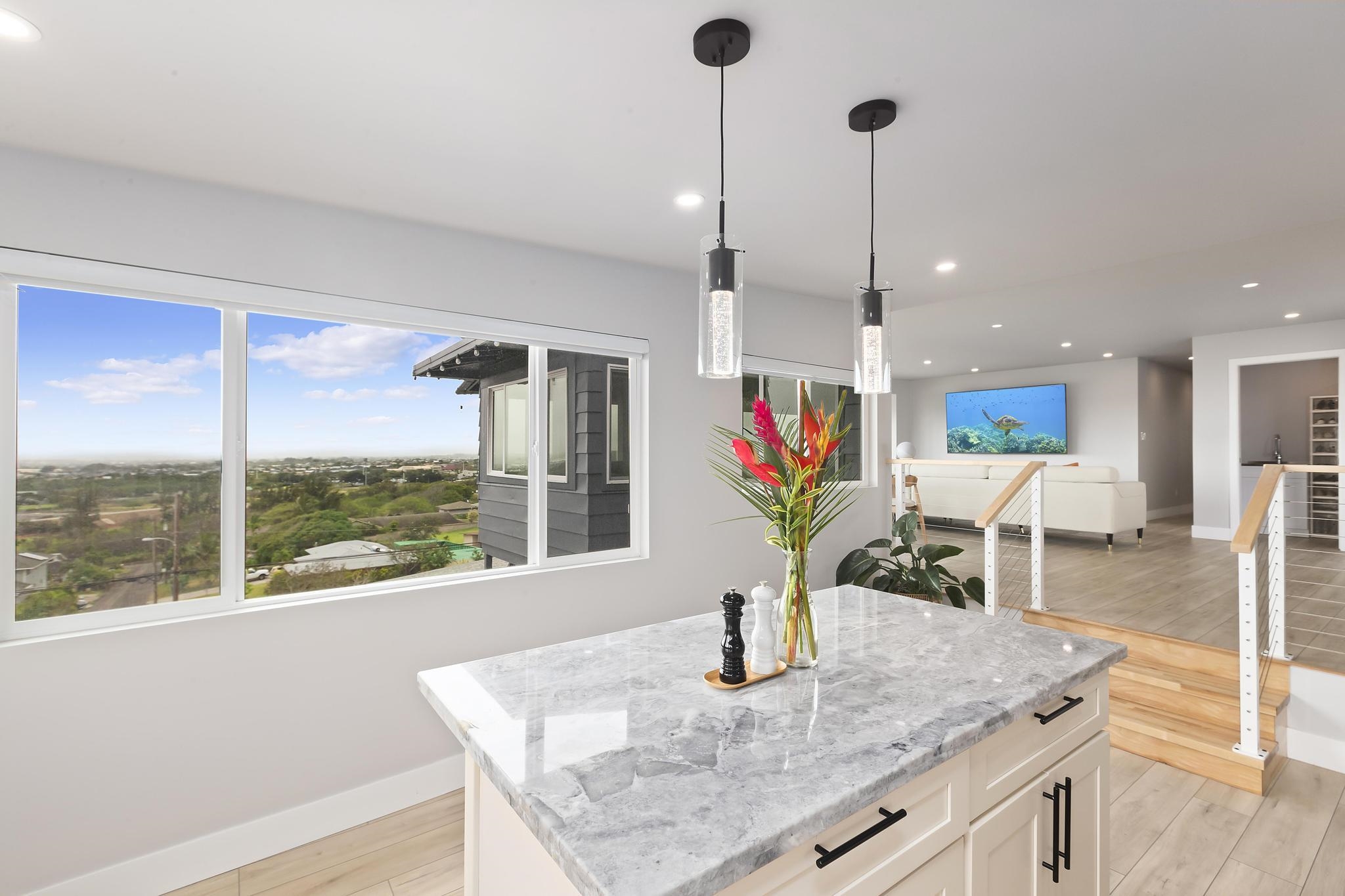 Welcome to this stunning home, situated on the crest of Liholiho Ridge, within Wailuku’s coveted and ultra-convenient, Sandhills. Begin your Maui day with vivid red sunrises over Mt. Haleakala and sweeping views from the north shore across the Kahului harbor, all the way to Wailea. Then end your day with spectacular sunsets over the West Maui mountains. Privacy is paramount in this location, with its gated entry, ensuring a peaceful and serene living experience. This residence offers a luxurious and contemporary living experience. The tasteful remodel features a thoughtfully re-imagined floor plan, ensuring a seamless flow throughout. Every detail has been meticulously attended to, including all new windows, with remote controlled zebra blinds, allowing you to effortlessly capture these views and adjust the natural light to your preference. The interior of this home is a true masterpiece. The all-new kitchen and baths feature top-of-the-line finishes, creating a modern and elegant aesthetic. The flooring and paint have been tastefully selected, providing a fresh and inviting atmosphere. Ambient recessed lighting adds a touch of sophistication, illuminating each room with a warm glow. Step outside and be captivated by the exterior features of this property. Ideal for entertaining, a huge, covered lanai, invites you and your guests, to relax and unwind while enjoying these gorgeous surroundings. Uplighting on the palms and tropical landscaping create a picturesque ambiance. Enjoy maintenance-free astroturf and auto-timer drip irrigation for the plants. The lower level matches the tasteful interior design and has its own entrance. The mature Fairchild mango tree adds a touch of natural beauty to this already enchanting oasis. The parking area has room for at least 6 cars. Don't miss the opportunity to make this exquisite home yours. Contact us today to schedule a private showing and experience the beauty and elegance that awaits you atop Liholiho Ridge.