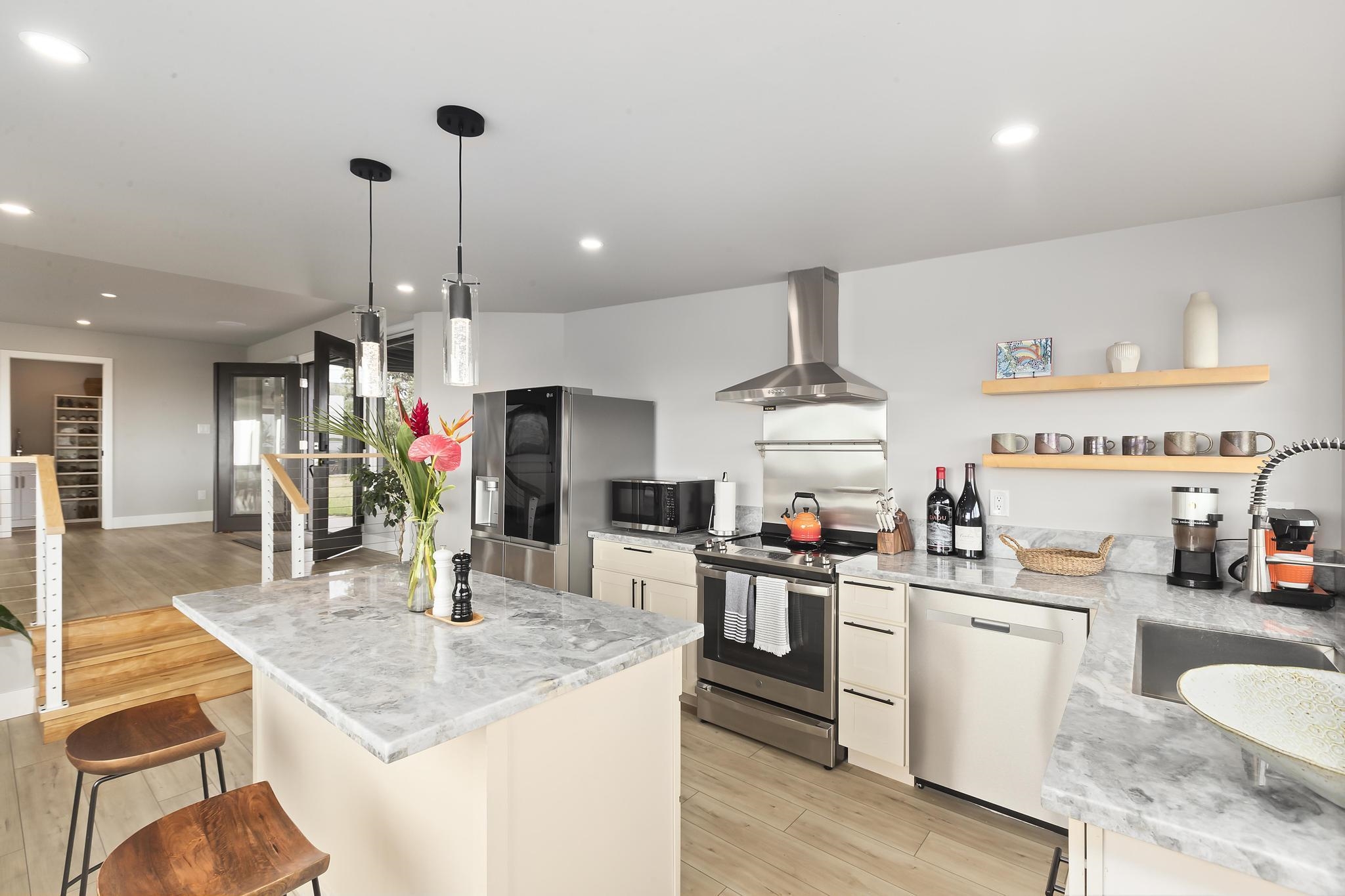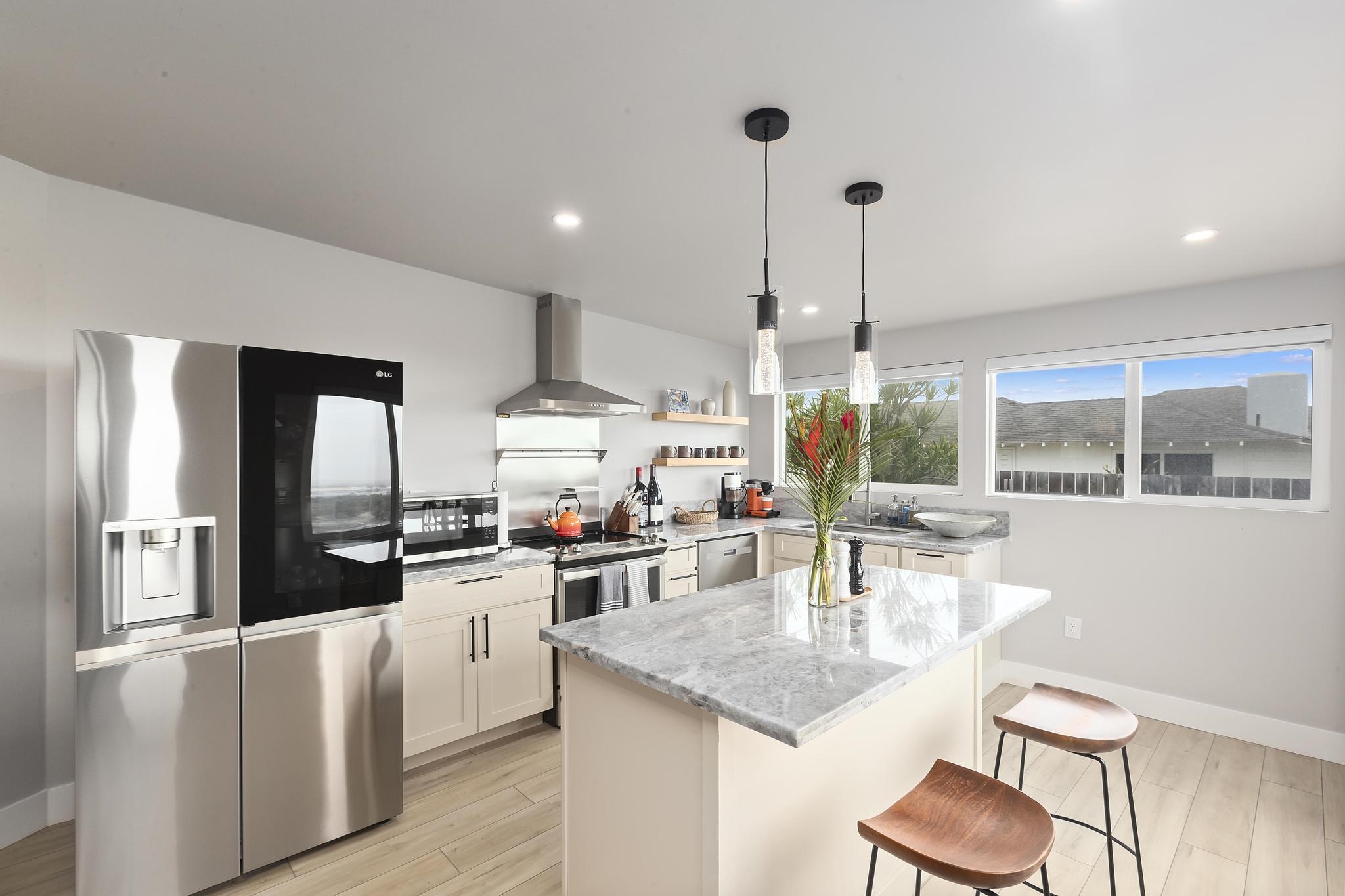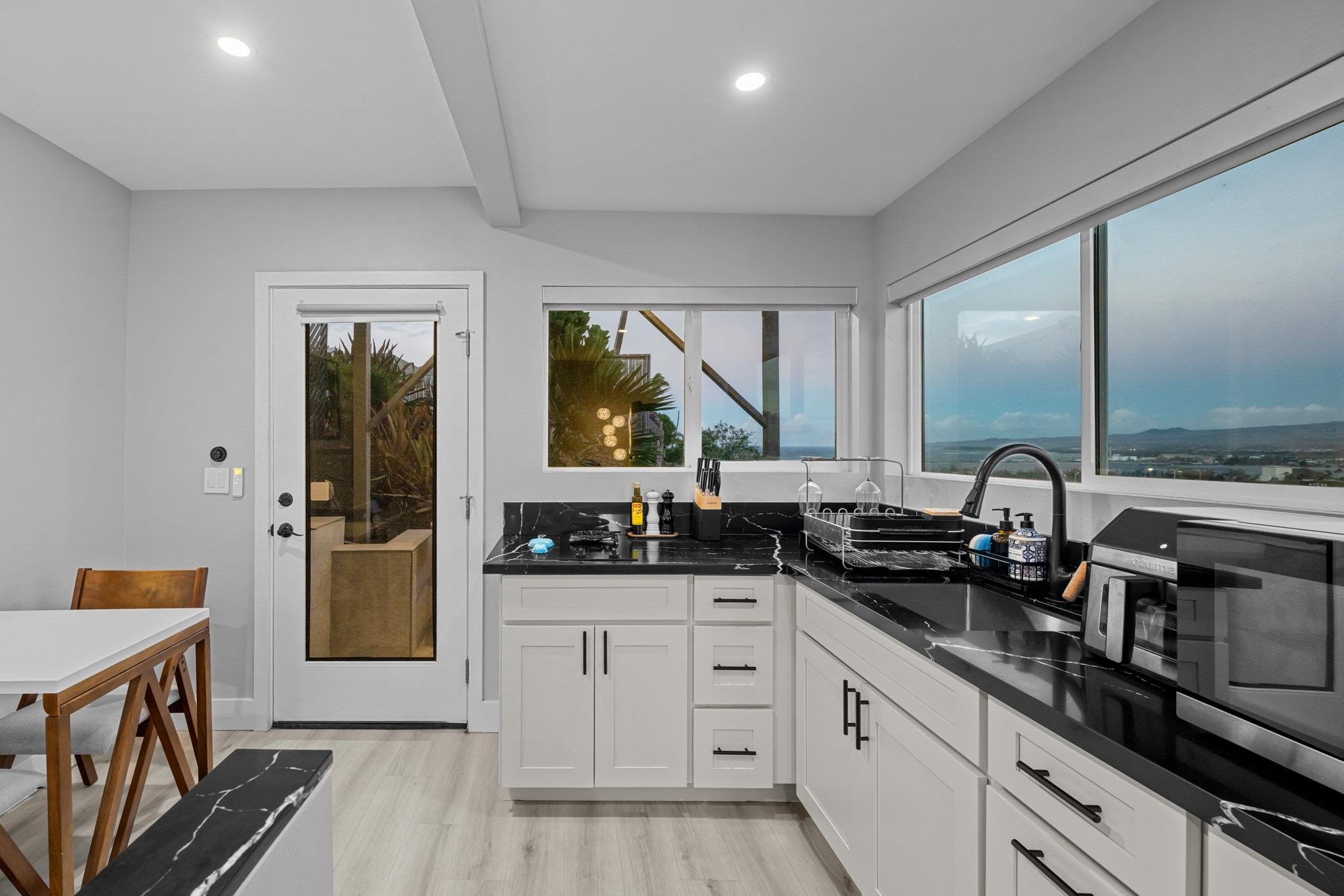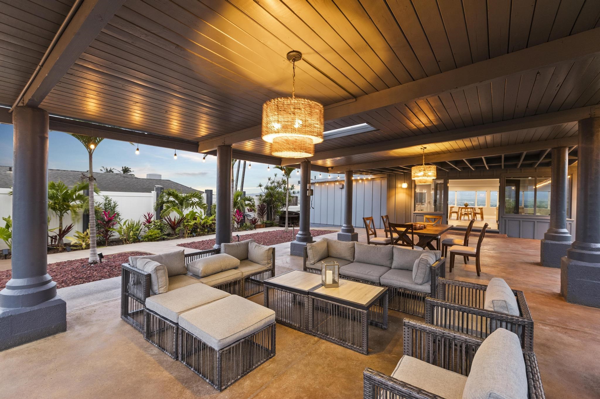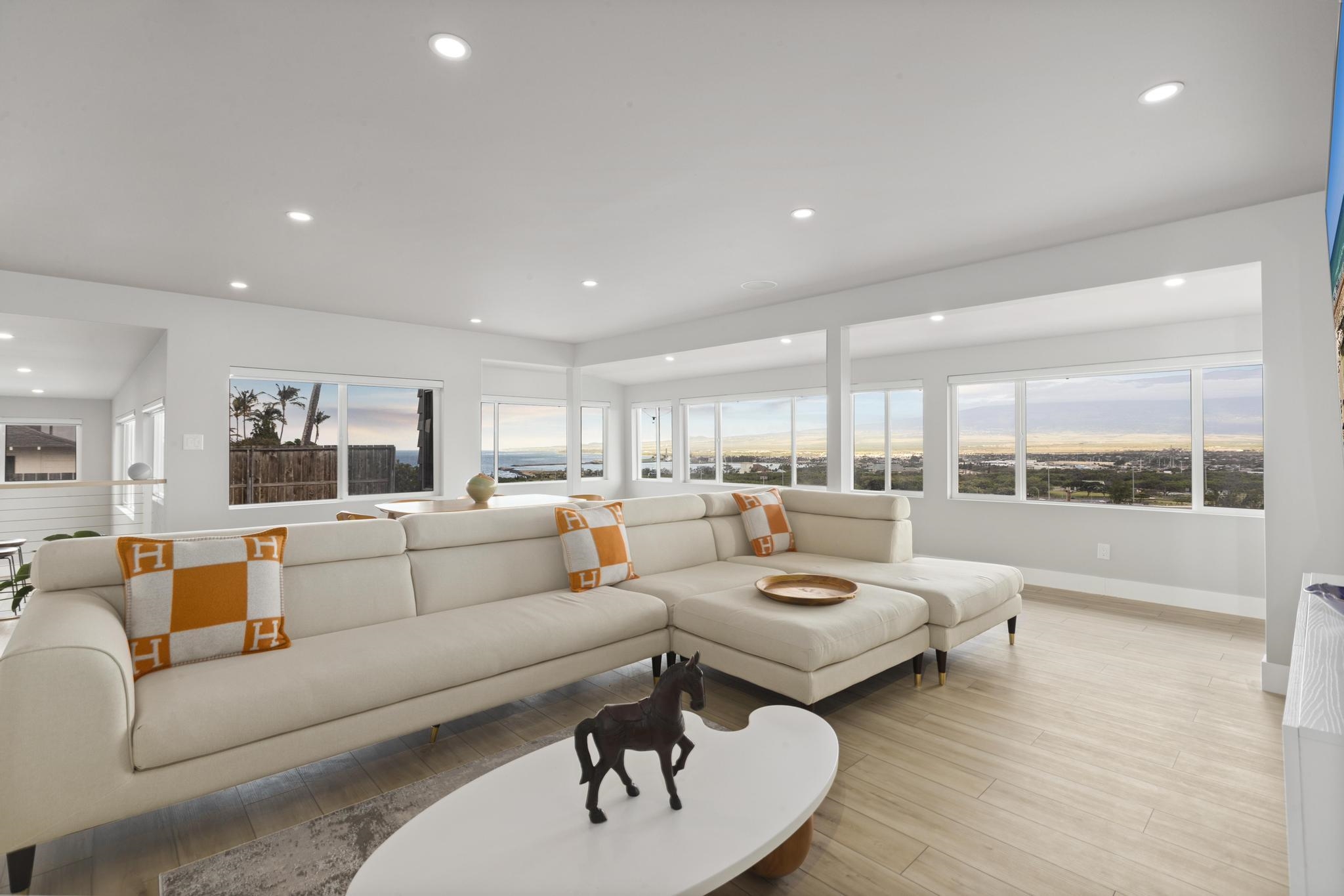 Welcome to this stunning home, situated on the crest of Liholiho Ridge, within Wailuku’s coveted and ultra-convenient, Sandhills. Begin your Maui day with vivid red sunrises over Mt. Haleakala and sweeping views from the north shore across the Kahului harbor, all the way to Wailea. Then end your day with spectacular sunsets over the West Maui mountains. Privacy is paramount in this location, with its gated entry, ensuring a peaceful and serene living experience. This residence offers a luxurious and contemporary living experience. The tasteful remodel features a thoughtfully re-imagined floor plan, ensuring a seamless flow throughout. Every detail has been meticulously attended to, including all new windows, with remote controlled zebra blinds, allowing you to effortlessly capture these views and adjust the natural light to your preference. The interior of this home is a true masterpiece. The all-new kitchen and baths feature top-of-the-line finishes, creating a modern and elegant aesthetic. The flooring and paint have been tastefully selected, providing a fresh and inviting atmosphere. Ambient recessed lighting adds a touch of sophistication, illuminating each room with a warm glow. Step outside and be captivated by the exterior features of this property. Ideal for entertaining, a huge, covered lanai, invites you and your guests, to relax and unwind while enjoying these gorgeous surroundings. Uplighting on the palms and tropical landscaping create a picturesque ambiance. Enjoy maintenance-free astroturf and auto-timer drip irrigation for the plants. The lower level matches the tasteful interior design and has its own entrance. The mature Fairchild mango tree adds a touch of natural beauty to this already enchanting oasis. The parking area has room for at least 6 cars. Don't miss the opportunity to make this exquisite home yours. Contact us today to schedule a private showing and experience the beauty and elegance that awaits you atop Liholiho Ridge.