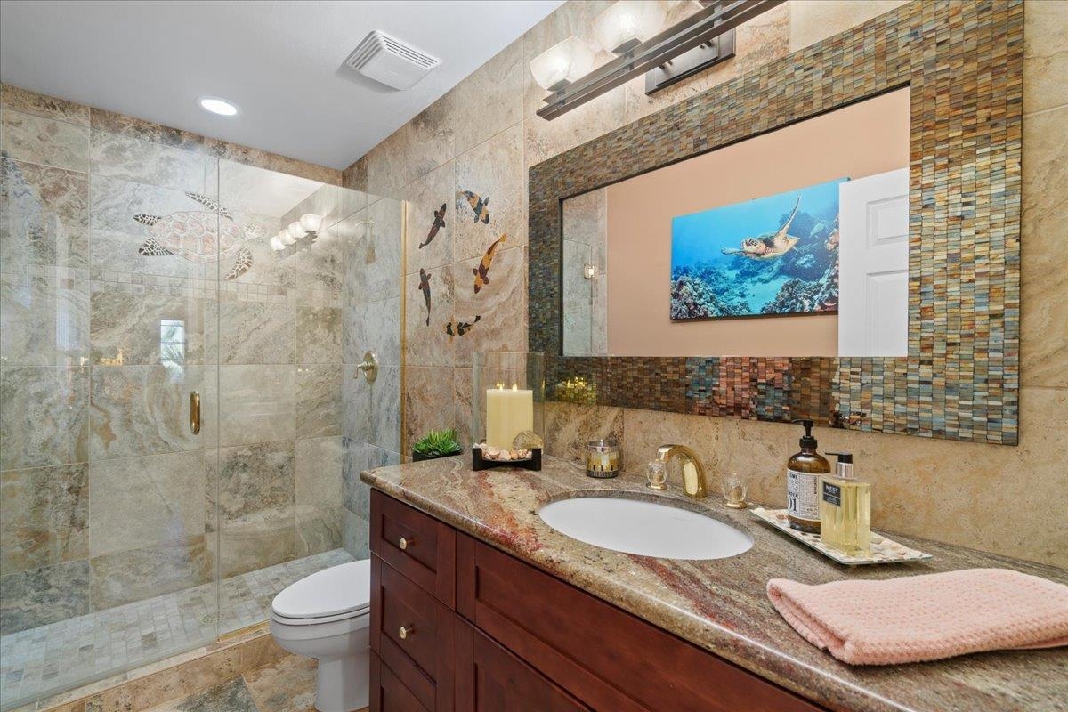 Stunning 2-bedroom, 2-bath upper-level furnished unit with beautiful ocean/sunset and golf course views. Remodeled in 2014, features include new window treatments, tile, new kitchen appliances, full renovations of both bathrooms (toilets, sinks/faucets, countertops, shower, bath enclosure and lighting). Replacement of front and back door screen doors, new lighting in kitchen and dining room, and new ceiling fans. Installation of air conditioners in bedrooms and living room (2017). New water heater installed (2021). This is a pet-friendly community featuring a pool, spa, clubhouse, workout area, and built-in barbecue grills. World-class shopping, dining, beaches, and golf are all just a few minutes away. If you’re looking to truly experience the Wailea lifestyle, complete with gorgeous ocean views, this is the home for you!