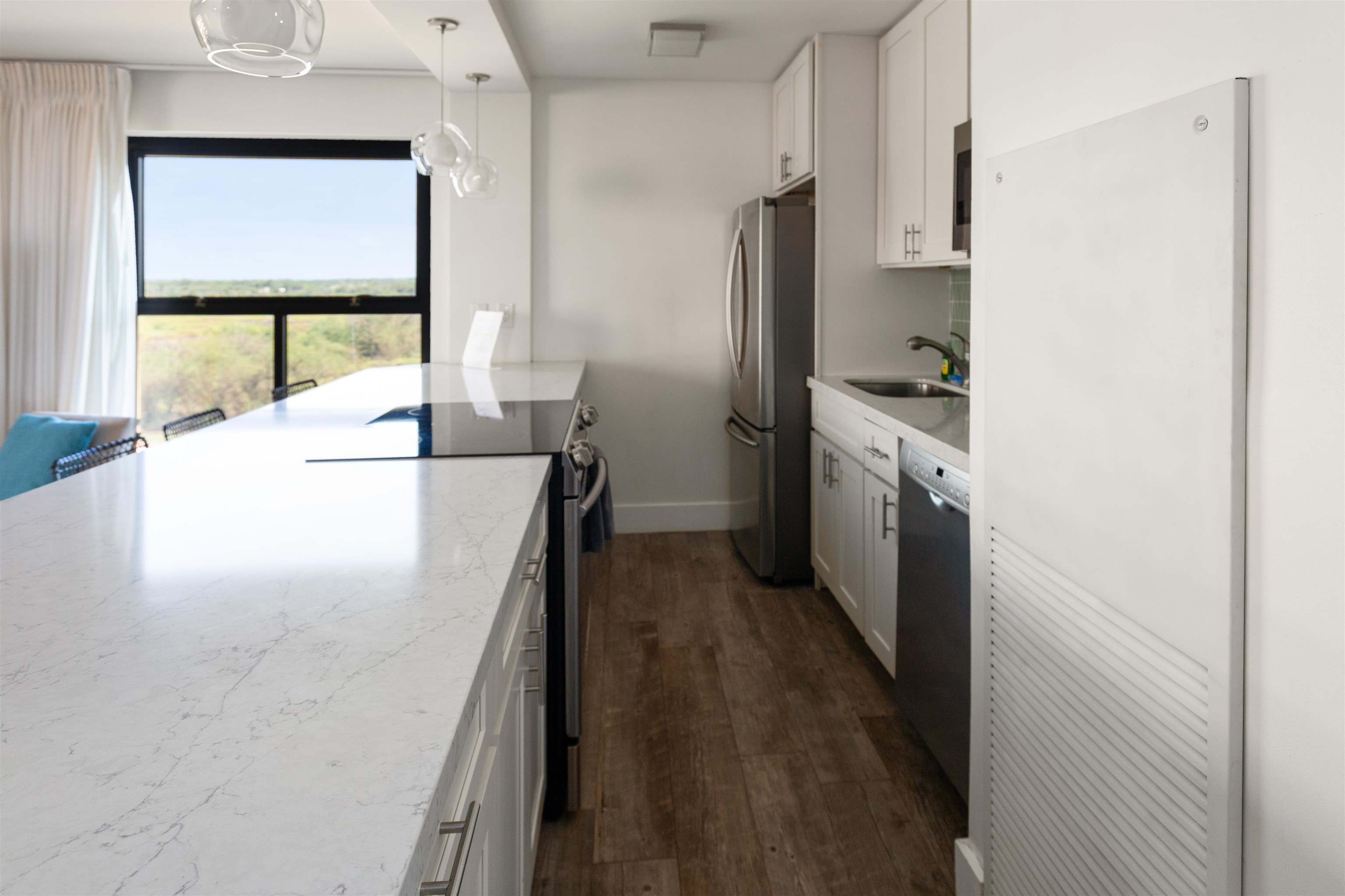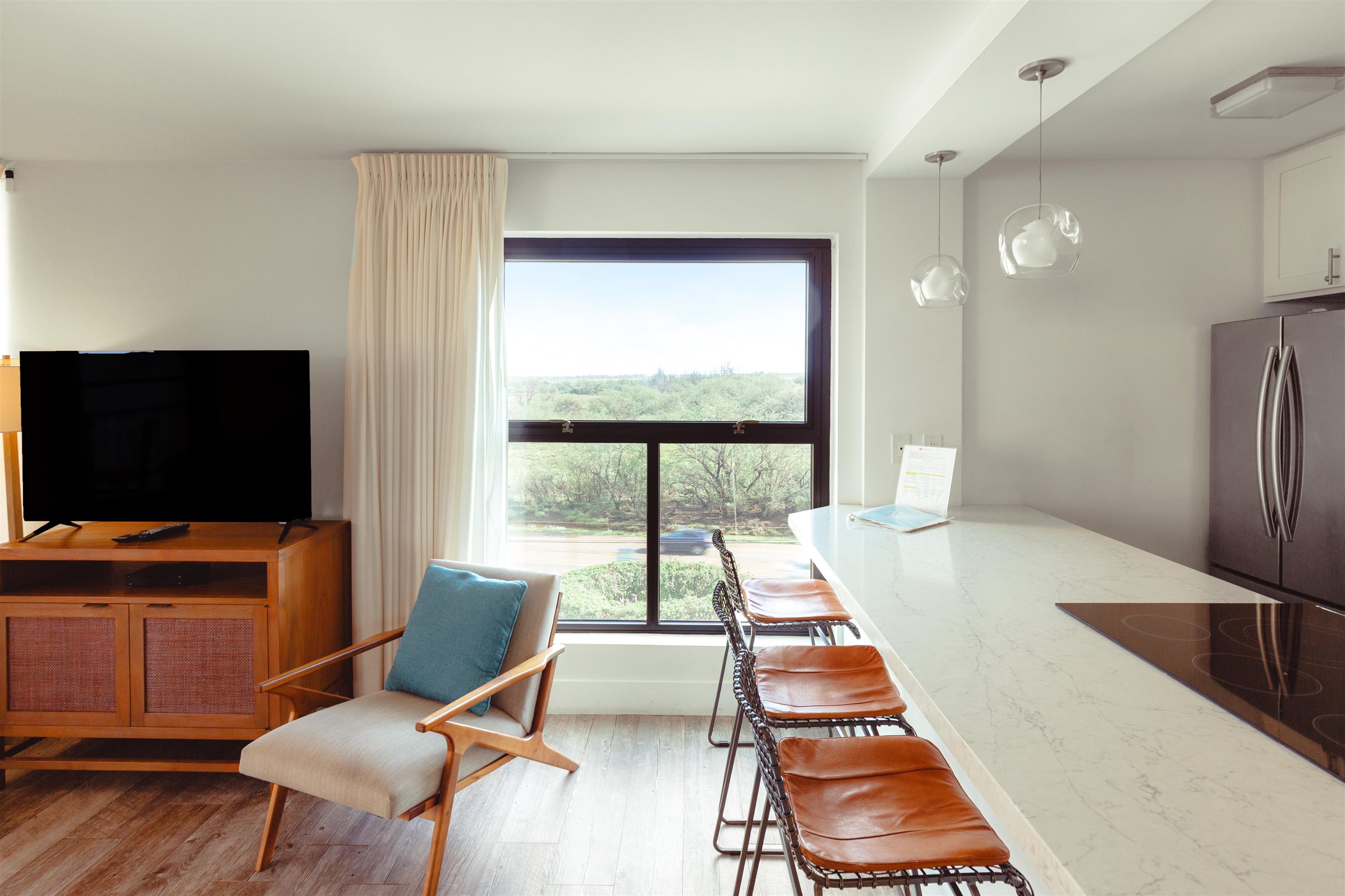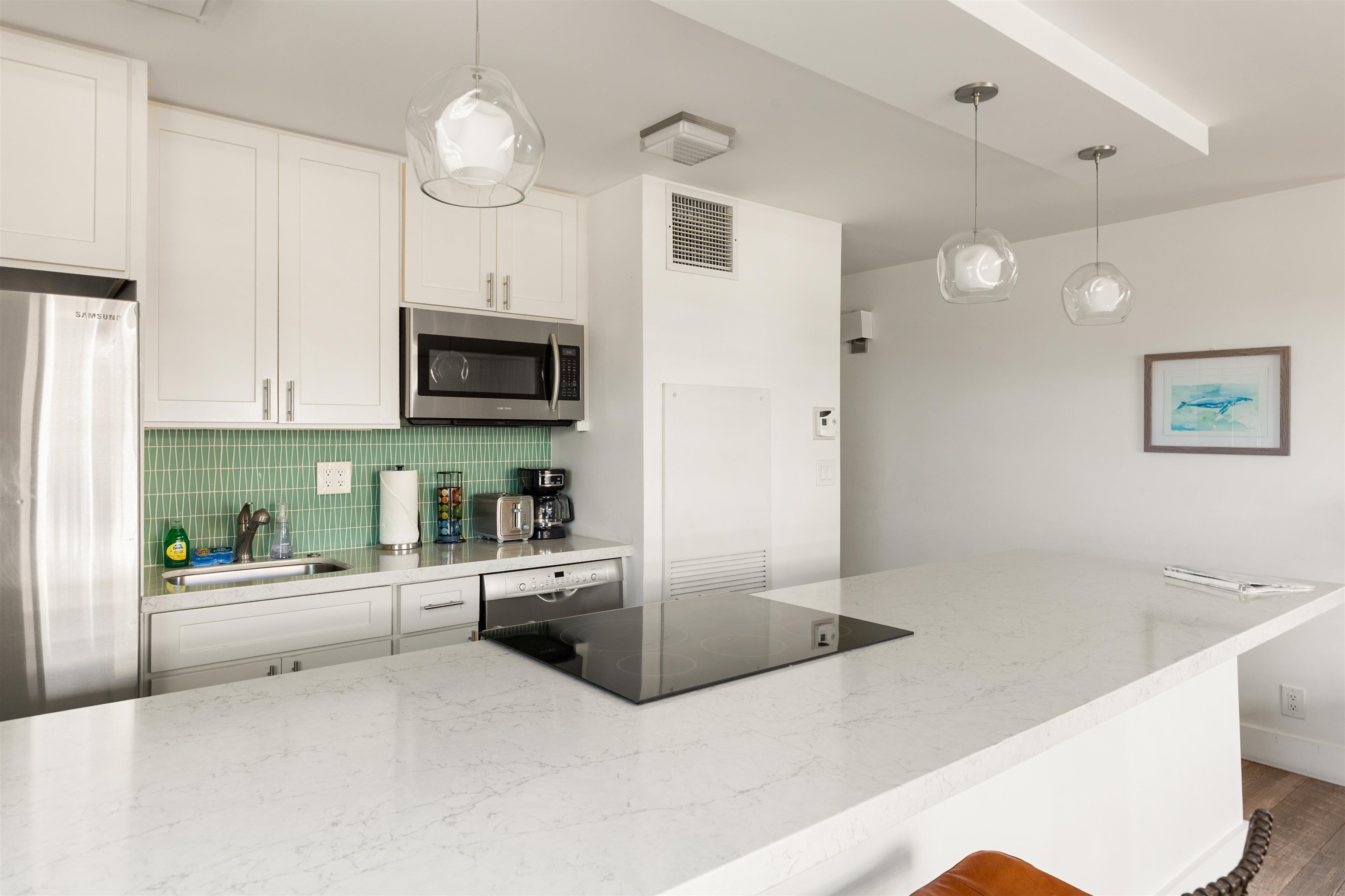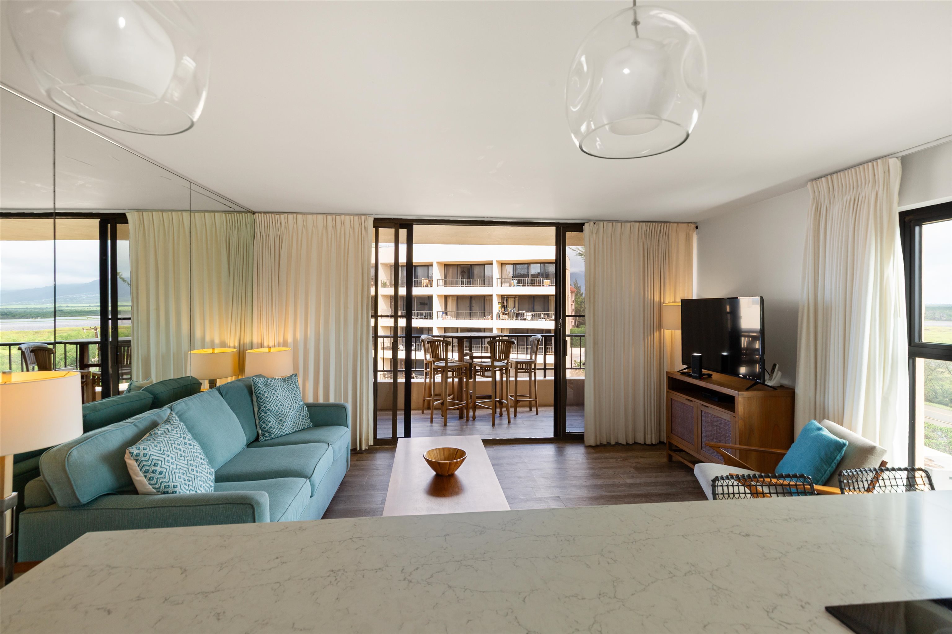 Sugar Beach Resort #502 offers a top-quality remodel with porcelain tile flooring, custom aquamarine tilework, stainless appliances, and quartz countertops. This fully furnished corner unit features extra windows, ocean, mountain, and pond views, central AC, in-unit washer/dryer, and access to the oceanfront pool, hot tub, sauna, and on-site restaurant. The unit is pet-friendly with no size restrictions and allows legal short-term vacation rentals zoned Hotel/Resort. Sugar Beach Resort sits on over 5 miles of sugar fine sand with whale watching during whale season. Relax on your private lanai, where the soothing sounds of ocean waves and vibrant sunsets create an unforgettable atmosphere. Comprehensive Utilities Included.......all utilities, such as electricity, water, sewer, garbage, Wi-Fi, cable TV, an individual internet connection, and telephone—providing hassle-free living and predictable expenses.