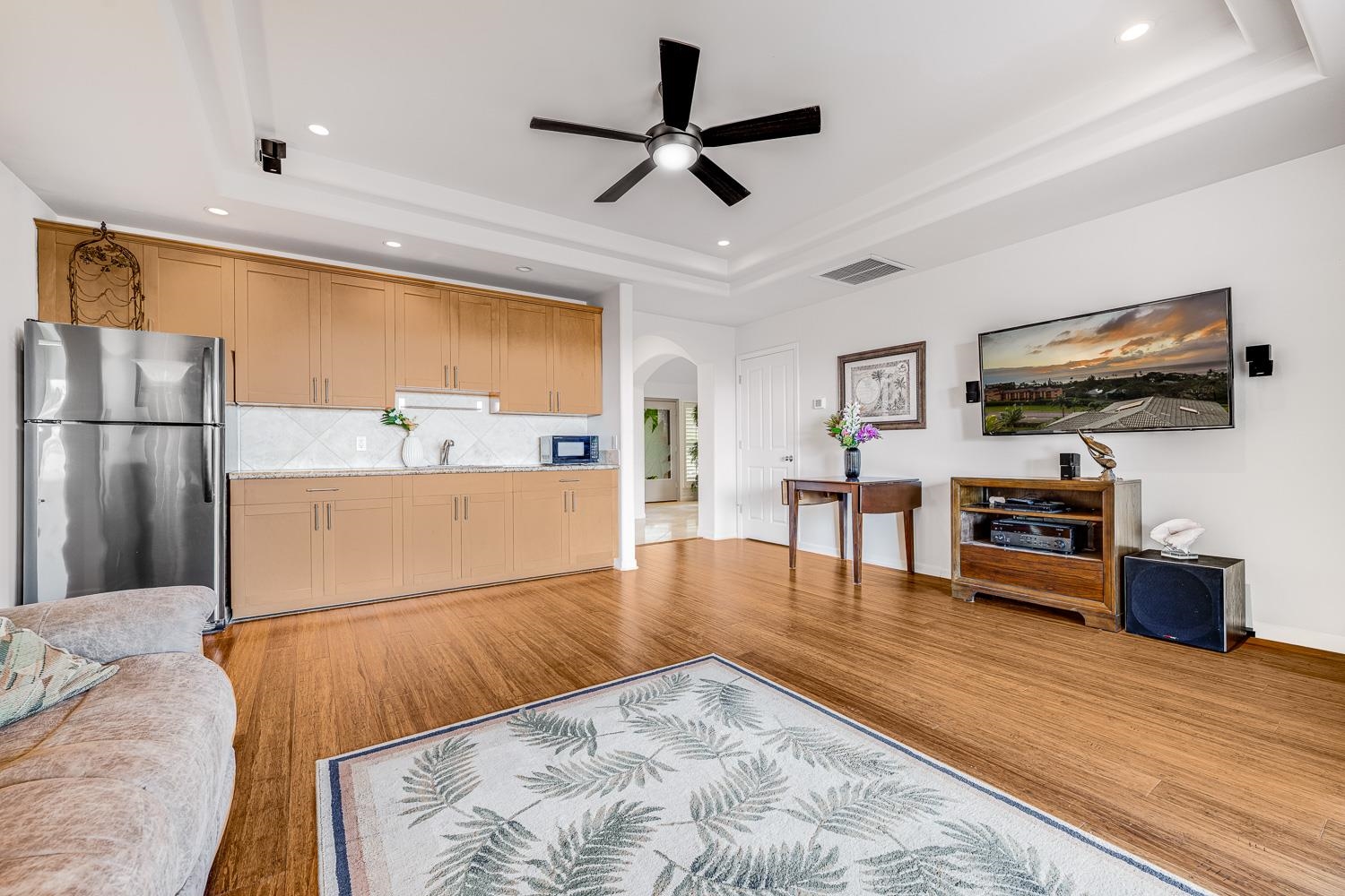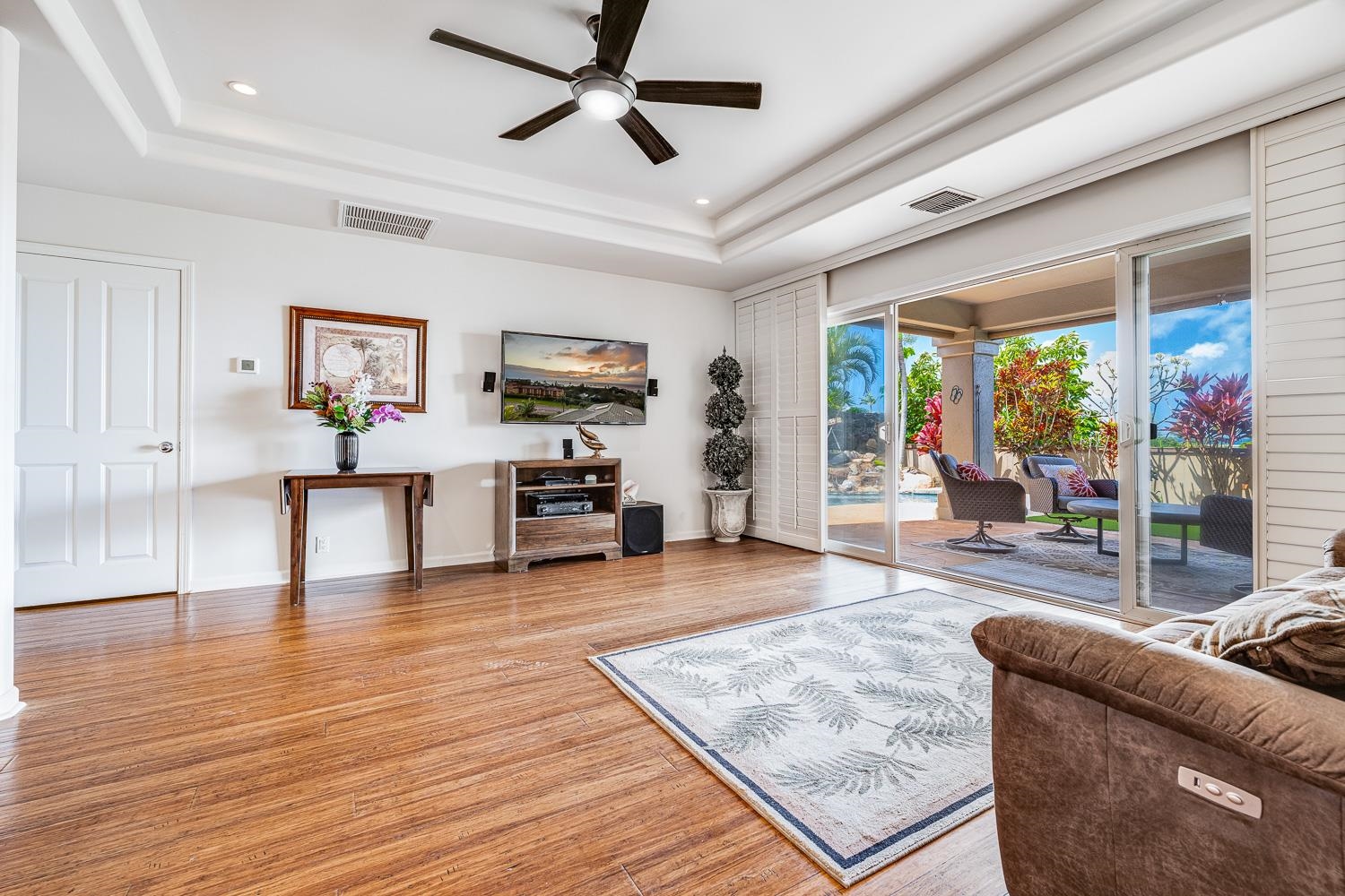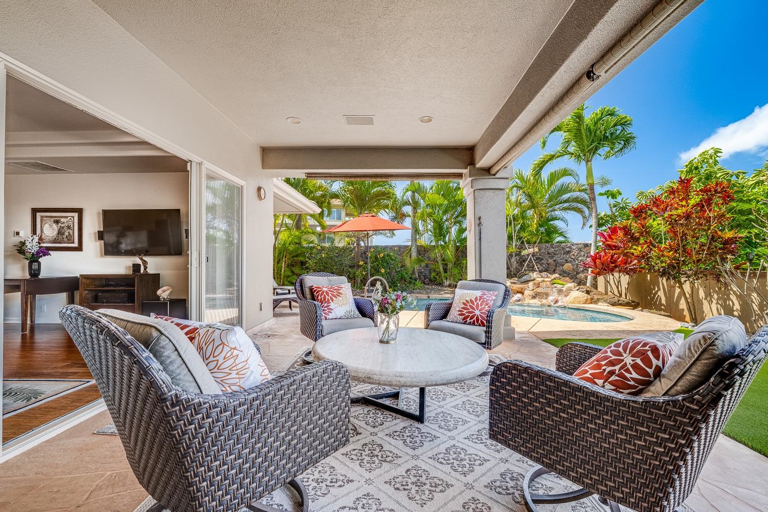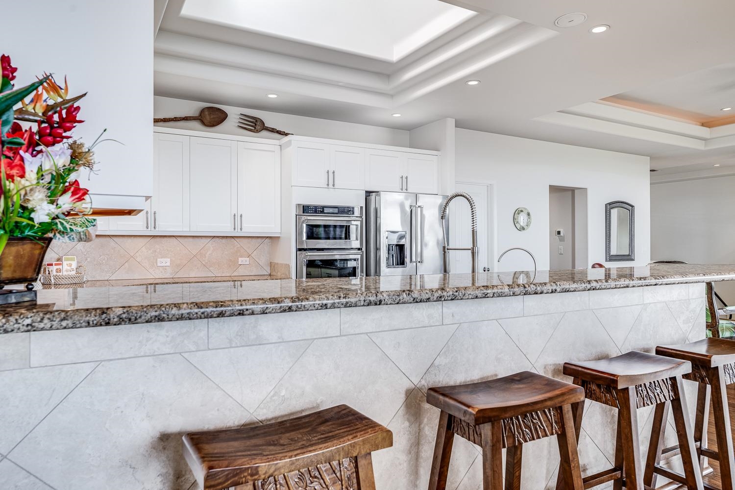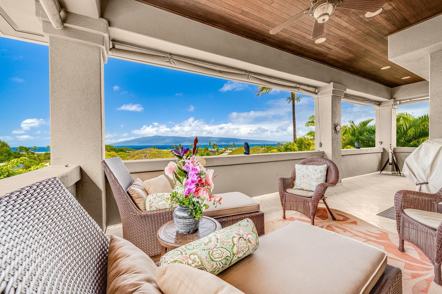Positioned within the sought-after Kahana Ridge community in Lahaina, 302 Kahana Ridge Drive offers a refined take on West Maui living, with panoramic ocean views, generous interior spaces, and a highly convenient location. Beautifully updated and exceptionally maintained, this three-bedroom, two-and-a-half-bath Kahana Ridge residence offers approximately 2,784 square feet of interior living space and captures sweeping ocean views extending to Molokai and Lanai. Offered fully furnished, the interior living space is designed to capture natural light and frame views of the Pacific from multiple vantage points. From the moment you arrive, the home’s clean architectural lines and well-maintained exterior signal a property that has been thoughtfully cared for. A spacious driveway and three-car garage provide both functionality and flexibility, while the surrounding neighborhood reflects the pride of ownership that defines Kahana Ridge. The upper level features the main living area, kitchen, and primary suite, all positioned to take full advantage of the views. An expansive lanai extends off the living space, providing an ideal setting for outdoor dining and relaxation. The kitchen has been thoughtfully refreshed with refinished cabinetry and quality finishes, while large windows and tinted glass enhance both comfort and natural light throughout the main living areas. Custom glass front doors create a distinctive entry experience that sets the tone from the moment you arrive. The lower level includes two additional bedrooms, a full bath, and a separate living area with a kitchenette, offering excellent flexibility for guests, extended family, or private use. Additional lanai space on this level further enhances the home’s indoor outdoor living. Outside, a custom pool serves as a focal point of the outdoor space, complemented by a dedicated pool and storage room that adds convenience and functionality. The entire space has been extensively improved, with a regraded backyard, reinforced concrete borders, and professionally designed landscaping that includes synthetic turf and irrigation systems for trees and garden areas. Additional upgrades include a water filtration system, new central air conditioning systems, and substantial interior storage throughout the home. Located in one of West Maui’s most desirable residential communities, Kahana Ridge offers a peaceful neighborhood setting just minutes from the beaches of Kahana, Napili, and Kapalua, along with nearby dining, shopping, and golf. This is a rare opportunity to own a move-in-ready home that combines quality improvements, flexible living spaces, a private pool, and commanding ocean views across multiple islands.