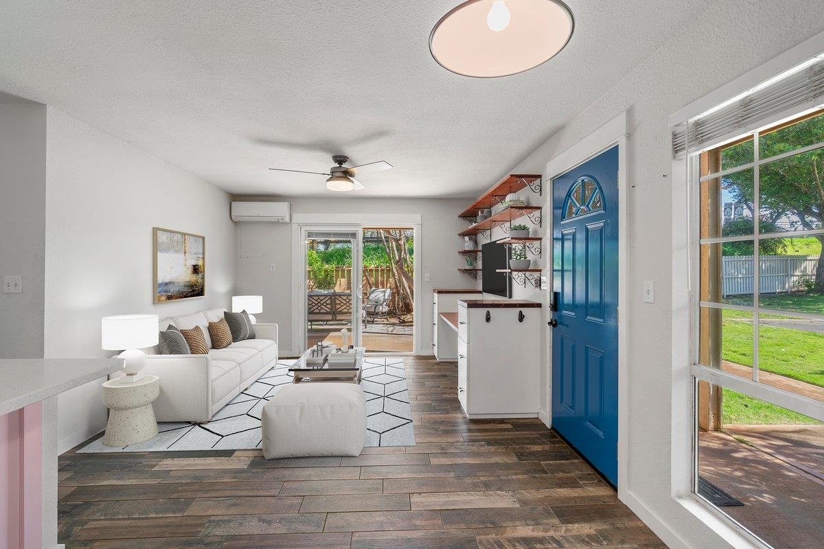 Indulge in tropical living in this inviting Kihei Villages condo. At 750 sq ft, this 2-bedroom, 1.5-bath unit feels twice as big with the private lanai opening off the living room. It creates a natural extension of the space and shifts daily life outdoors with ease. Recent updates focus on function and feel—new wood interior doors, glass slider door, custom woodwork, updated kitchen appliances, and a full-size washer and dryer. Both bathrooms have been redone with a clean, simple finish that keeps the space light without trying too hard. The new tile floors and split AC units throughout keep things cool all year long. Just across the street, Kenolio Park offers open space, a place to walk, and room for dogs to run. A few steps further brings you to the beach and the Kihei Canoe Club, where the shoreline stretches uninterrupted for miles toward Maalaea Harbor. It’s the kind of setting that naturally becomes part of your routine. As this unit is positioned near the entrance and close to ample visitor parking, coming and going is simple—for you and for guests. The primary bedroom includes its own en-suite bath, with a half bath conveniently located between both bedrooms. The pet-friendly complex is located in North Kihei, with straightforward access to Wailea, Central Maui, and Kahului Airport—keeping the rest of the island within easy reach while still feeling tucked into its own corner.