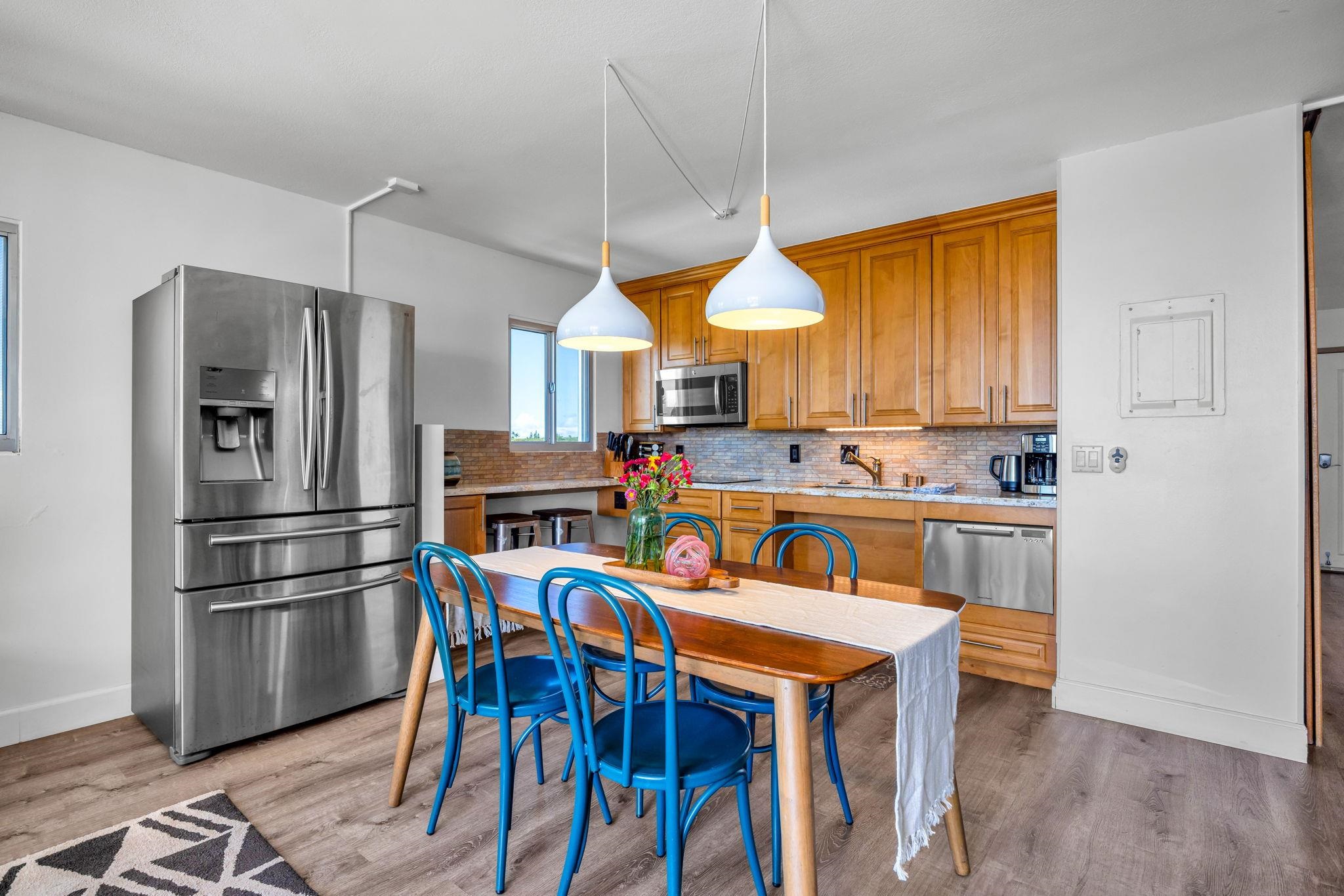 Welcome to Island Surf #600, a rare top-floor corner vacation rental in the heart of South Kihei, offering exceptional flexibility, income potential, and sweeping island views. Situated within a Business Community (B-2) Zone, this property is not affected by proposed short-term rental phase-out legislation, making it a compelling option for investors seeking stability and long-term viability. This 2-bedroom, 2-bathroom unit spans 921 square feet and is thoughtfully designed with a lock-off configuration, allowing for multiple rental strategies. With two separate entrances, the unit can be rented as a full 2-bedroom, or split into a 1-bedroom and a studio - creating a duplex-style setup that maximizes occupancy and income potential. Whether you’re looking to diversify your rental approach or cater to different guest needs, the flexibility here is a standout feature. Positioned on the top (6th) floor and at the corner of the building, Unit #600 enjoys added privacy, extra windows, and an abundance of natural light throughout. The elevated vantage point captures panoramic ocean views and stunning West Maui Mountain vistas, while its location on the quieter side of the complex - furthest from the South Kihei Road and Auhana Road intersection - helps minimize road noise and enhances the overall living experience. Island Surf is known for its unbeatable central location and mixed-use convenience. The ground level is home to a variety of local businesses, shops, and dining options, while directly across the street you’ll find The Cove surf break at Kalama Park - one of South Maui’s most popular beginner-friendly surf spots. Just behind the complex is South Maui Gardens, a vibrant open-air gathering place featuring food trucks and a weekly Thursday market with local vendors offering art, jewelry, clothing, and more. Offered fully furnished and with future bookings in place, Island Surf #600 is a turnkey opportunity ready for immediate use and income generation. With its flexible layout, strong rental appeal, and prime Kihei location, this is a property that truly checks all the boxes.