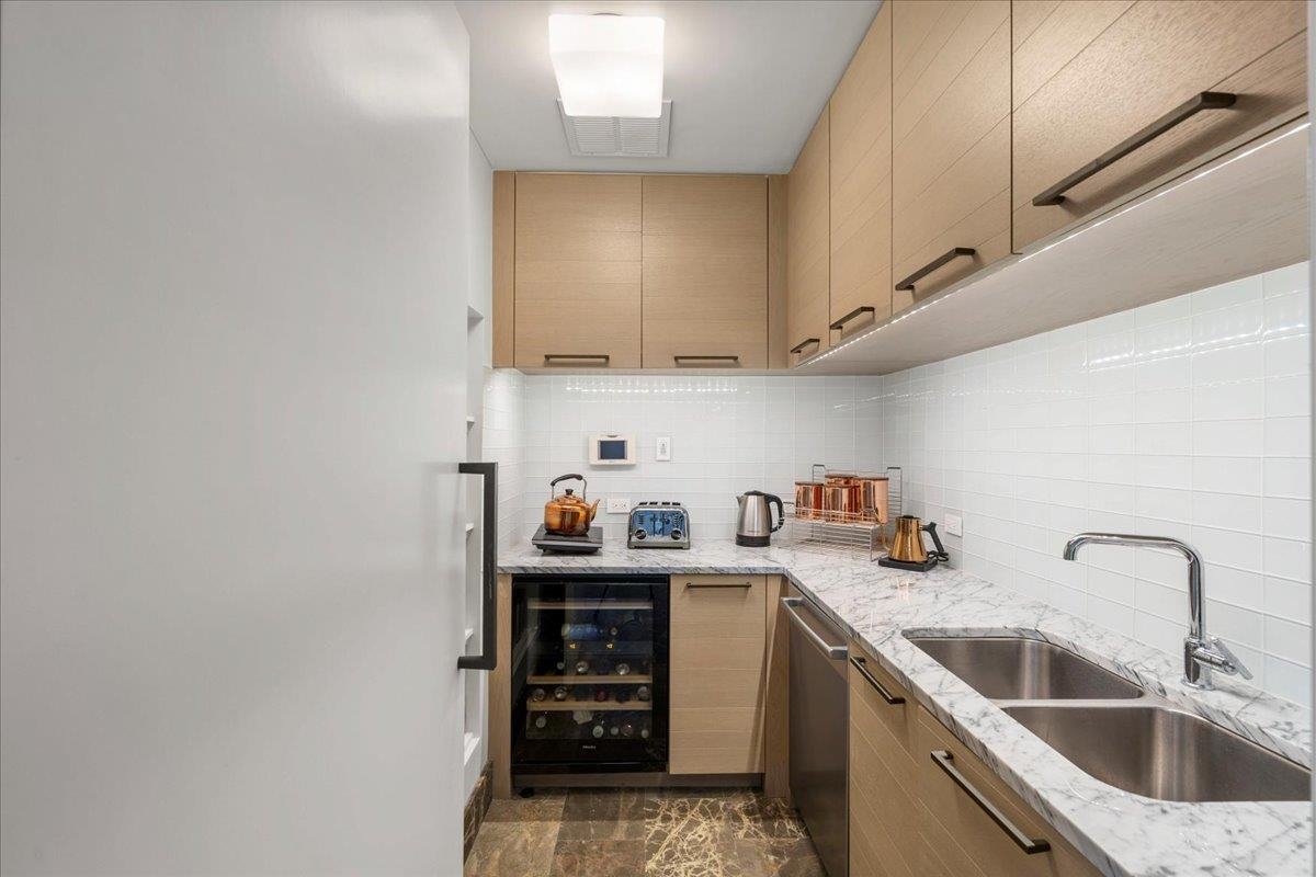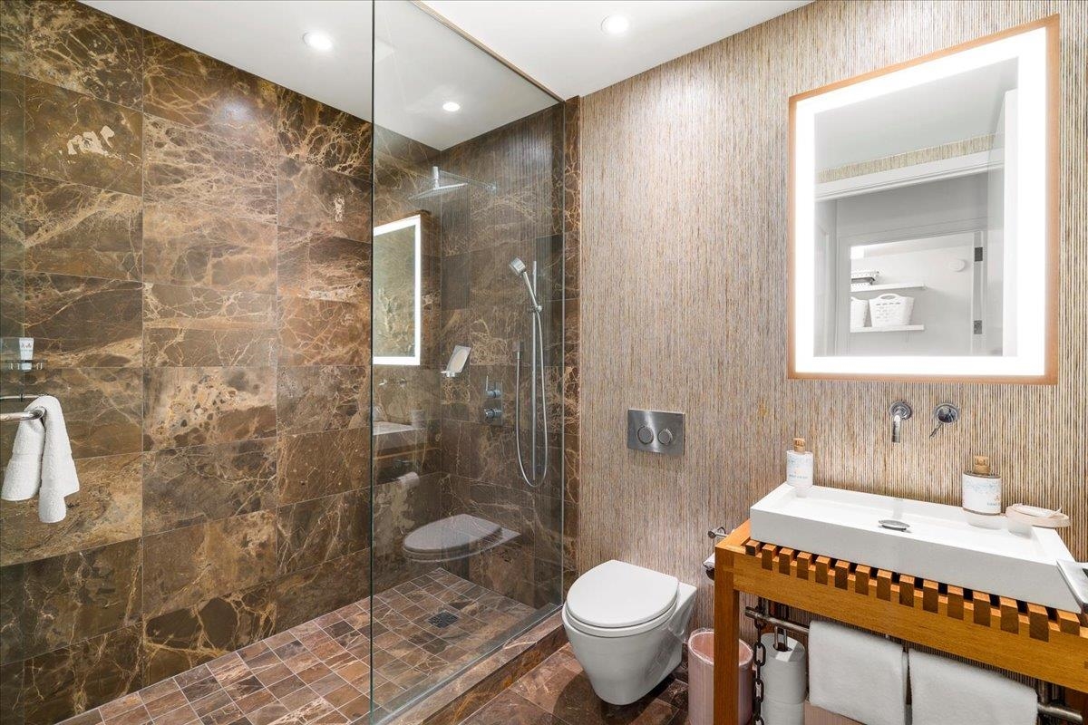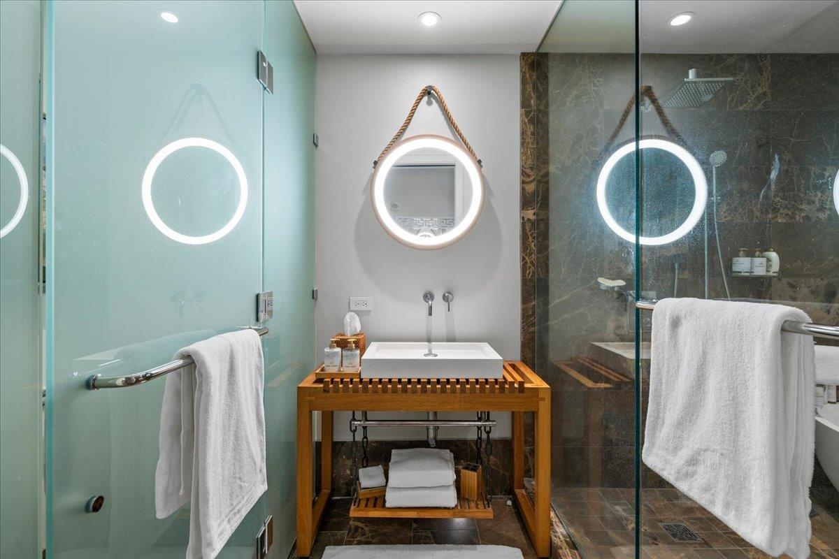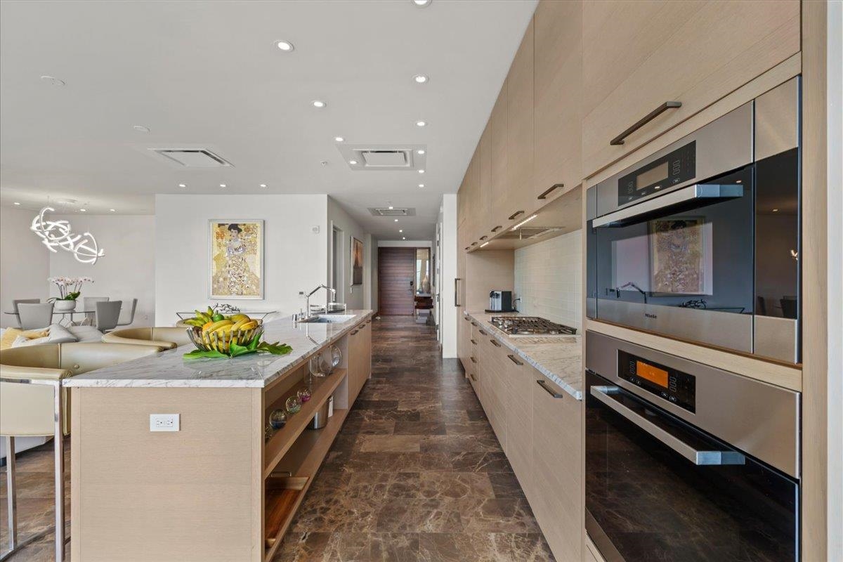 Andaz Residences F2 (Unit 801) offers a rare opportunity to own one of the coveted private villas at the Andaz Maui Wailea Resort. Ownership combines the privacy of an oceanfront home with full access to the exceptional amenities of the Andaz Hotel including pools, spa, fitness center, beach service, concierge, and award-winning dining. These exclusive residences rarely come to market. This spacious 3-bedroom, 4-bathroom villa features a thoughtfully designed floor plan with en-suite baths for each bedroom. Stunning ocean and sunset views from the lanai, great room, kitchen, and primary suite. The light-filled great room showcases custom designer furnishings, floor-to-ceiling windows, and sliding glass doors that invite Maui’s signature ocean breezes. The chef’s kitchen with Miele appliances opens seamlessly to the lanai with outdoor grill and dining area, perfect for indoor-outdoor island living. A well-equipped butler’s pantry includes an additional dishwasher, ice maker, wine refrigerator, and generous storage. Each bedroom suite offers a soaking tub, separate shower, and private water closet. Additional features include a powder bath with walk-in shower, laundry room with Miele washer and dryer, lockable owner closet, electric blackout and sheer shades, Apple TV, and zoned Sonos sound. While the unit was not previously in a vacation rental program it’s eligible to participate, this furnished turnkey villa is ready for personal enjoyment and/or guest stays. Owners enjoy a dedicated poolside cabana and two garage parking spaces, Mokapu Beach and the Wailea Beach Path are just steps away. Pet-friendly complex.