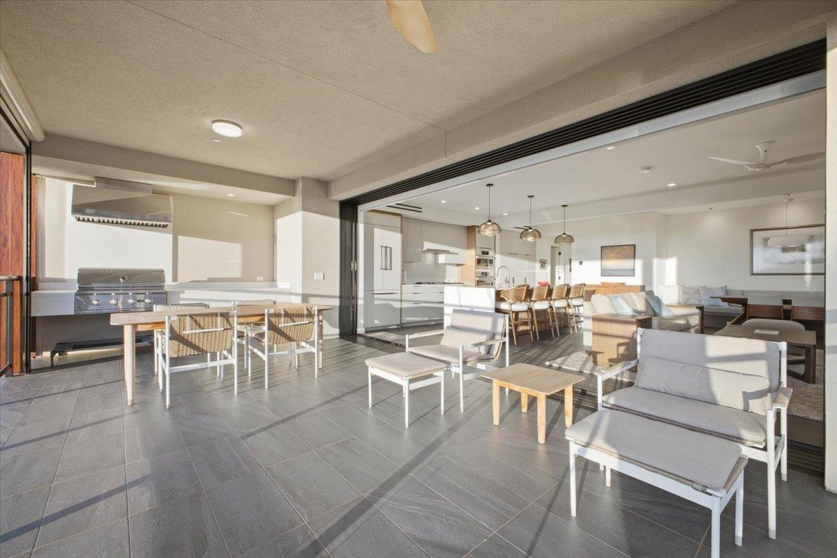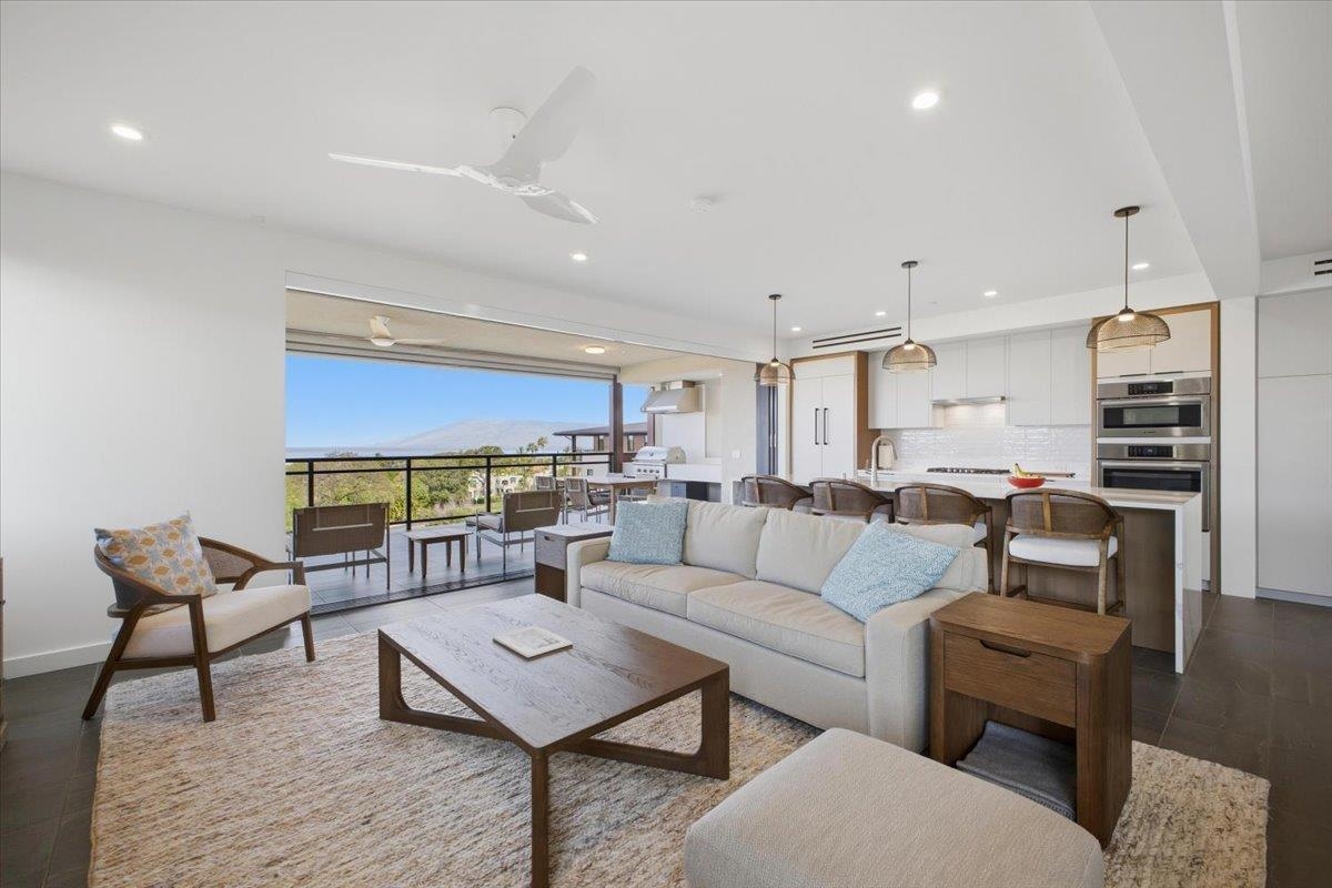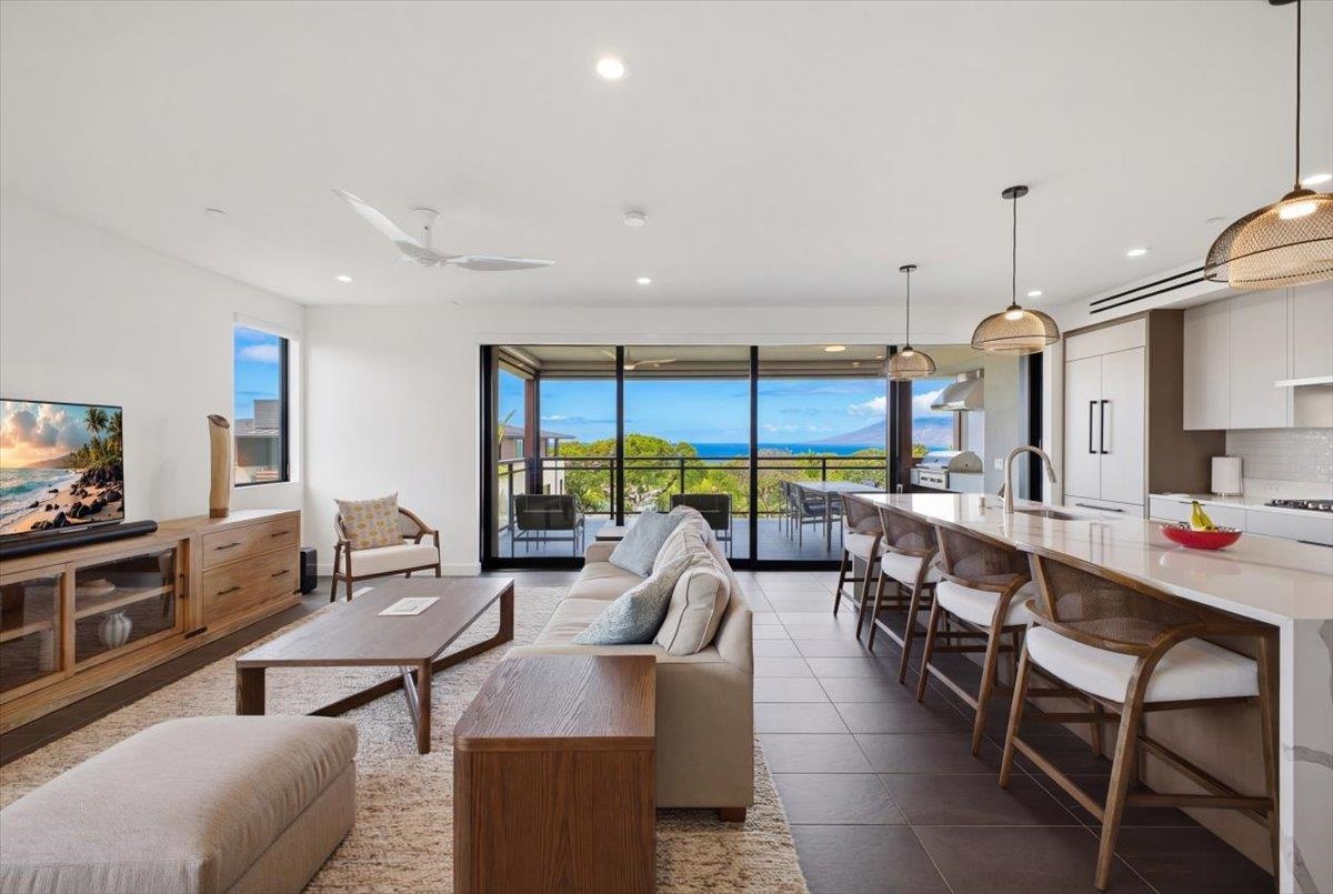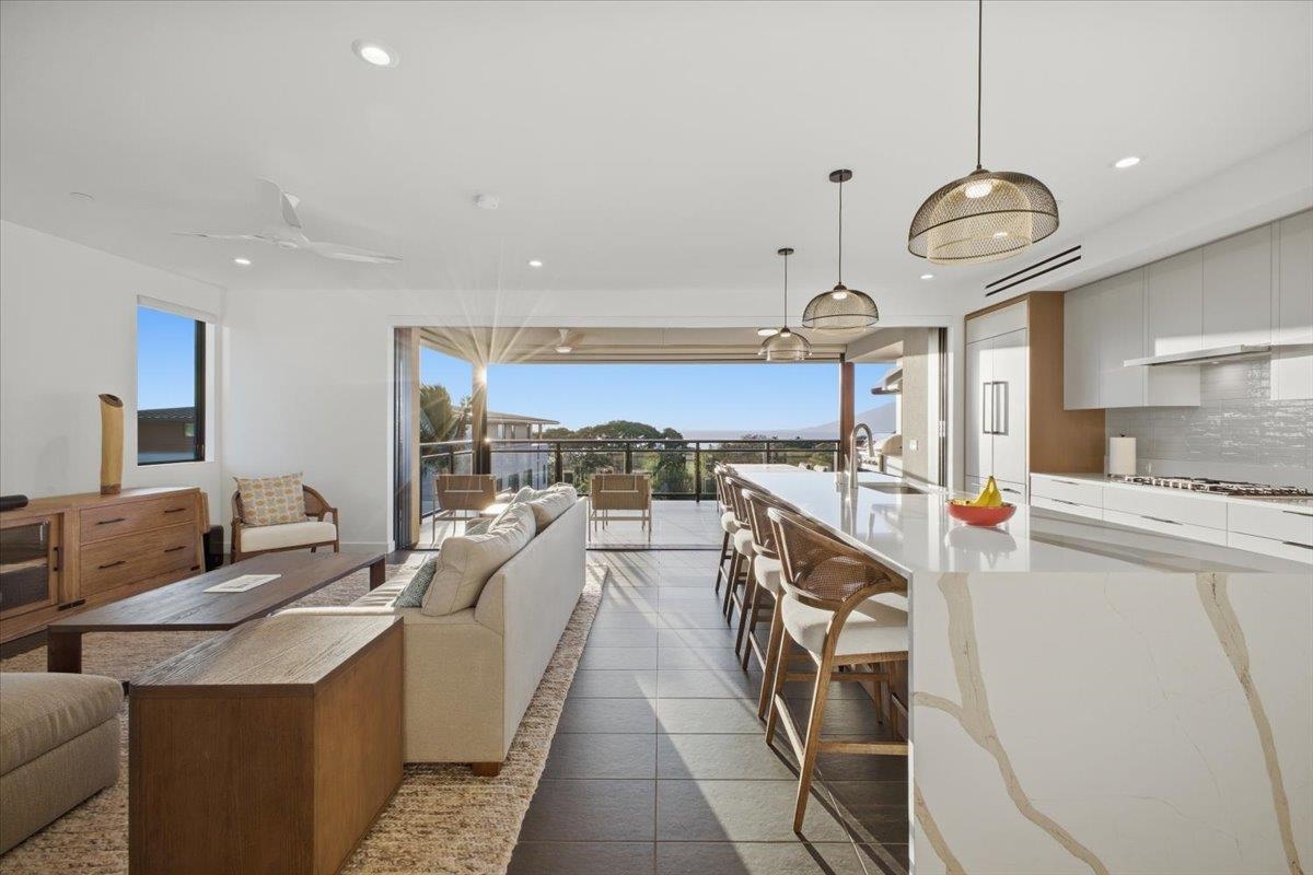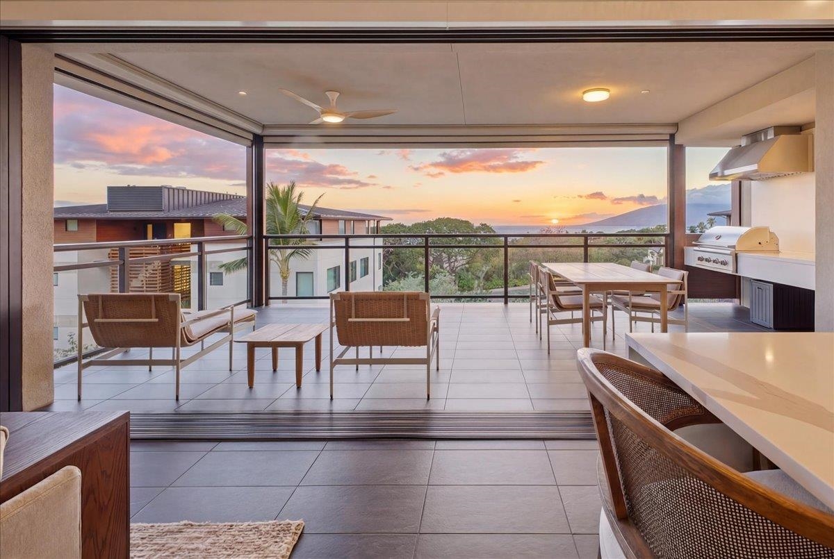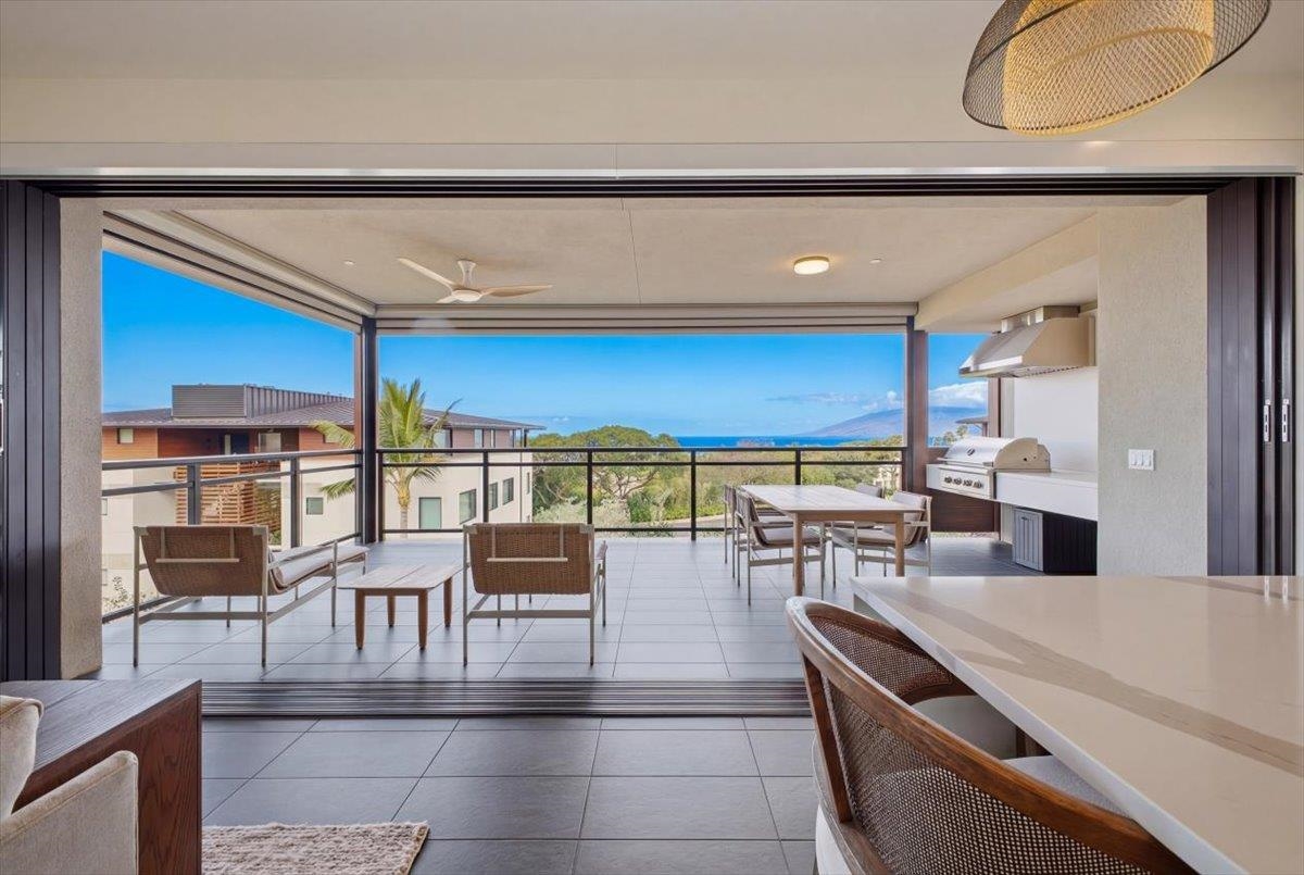 The One You’ve Been Waiting For! This pristine, second floor 2 Bedroom 2 Bath unit in Wailea’s Newest Development has it all. This premium location provides you with amazing Ocean and Outer Island views with incredible sunsets and the indescribable joy of great whale watching from your new home. La’i Loa 11C features an open floor plan that sits wide to the view for maximum enjoyment throughout all of your living areas and the generously oversized lanai. The beautiful lanai doors disappear into the walls to create a seamless indoor outdoor lifestyle where your Maui future awaits. This home is offered turnkey with gorgeous furnishings designed by Philpotts Interiors including Arhaus, DWR, RH, and Mitchell Gold. The handsome tile flooring upgrade extends to all areas and the world class chef’s kitchen with high end appliances including gas range from Bosch and Fisher Paykel double drawer dishwasher is designed to be completely open for entertaining or your daily relaxation with loved ones. The expansive lanai is impressive and where much of your Maui life will unfold. It features a Coyote gas grill with plenty of room for outdoor dining and an outdoor living area. The dining area features custom banquette and seating. You’ll notice the Hunter Douglas auto blinds and shades on all windows, plus the auto sunscreens on both sides of the oversized lanai, which provides you with the flexible privacy and customizable mood setting for appreciating the beauty of each Maui day. The two baths are elegant in both decor and function, offering the comfort and quality feel of resort type spa living. In addition to the community gates, each building has electronic access gates and garage, plus an elevator to all levels. Your private storage space in the garage area is huge and so convenient for extra storage, ready for any bikes, clubs, and all of your other Maui accessories. The gated community has unbelievable amenities including an expansive infinity edge pool with dedicated lap end, a giant hot tub spa, steam and sauna in the facilities, state of the art fitness center with free weights, two gathering areas, a secluded area with gas fired pit for sunset watching and more. This incredible unit is being sold turnkey - so just get ready to drop your bags and start living the good life in the one of a kind Wailea Resort, with all the world class beaches, shopping, restaurants, and amazing beauty of Maui to enjoy.