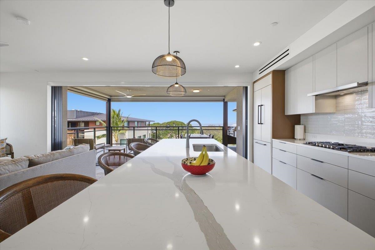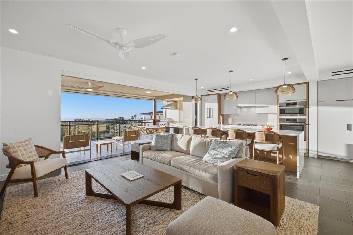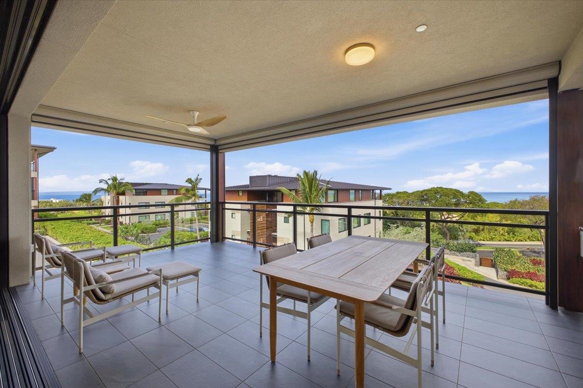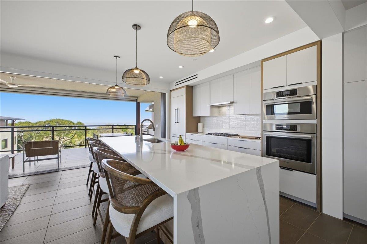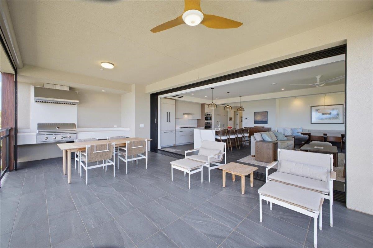 The One You’ve Been Waiting For! This pristine, second floor 2 Bedroom 2 Bath unit in Wailea’s Newest Development has it all. This premium location provides you with amazing Ocean and Outer Island views with incredible sunsets and the indescribable joy of great whale watching from your new home. La’i Loa 11C features an open floor plan that sits wide to the view for maximum enjoyment throughout all of your living areas and the generously oversized lanai. The beautiful lanai doors disappear into the walls to create a seamless indoor outdoor lifestyle where your Maui future awaits. This home is offered turnkey with gorgeous furnishings designed by Philpotts Interiors including Arhaus, DWR, RH, and Mitchell Gold. The handsome tile flooring upgrade extends to all areas and the world class chef’s kitchen with high end appliances including gas range from Bosch and Fisher Paykel double drawer dishwasher is designed to be completely open for entertaining or your daily relaxation with loved ones. The expansive lanai is impressive and where much of your Maui life will unfold. It features a Coyote gas grill with plenty of room for outdoor dining and an outdoor living area. The dining area features custom banquette and seating. You’ll notice the Hunter Douglas auto blinds and shades on all windows, plus the auto sunscreens on both sides of the oversized lanai, which provides you with the flexible privacy and customizable mood setting for appreciating the beauty of each Maui day. The two baths are elegant in both decor and function, offering the comfort and quality feel of resort type spa living. In addition to the community gates, each building has electronic access gates and garage, plus an elevator to all levels. Your private storage space in the garage area is huge and so convenient for extra storage, ready for any bikes, clubs, and all of your other Maui accessories. The gated community has unbelievable amenities including an expansive infinity edge pool with dedicated lap end, a giant hot tub spa, steam and sauna in the facilities, state of the art fitness center with free weights, two gathering areas, a secluded area with gas fired pit for sunset watching and more. This incredible unit is being sold turnkey - so just get ready to drop your bags and start living the good life in the one of a kind Wailea Resort, with all the world class beaches, shopping, restaurants, and amazing beauty of Maui to enjoy.