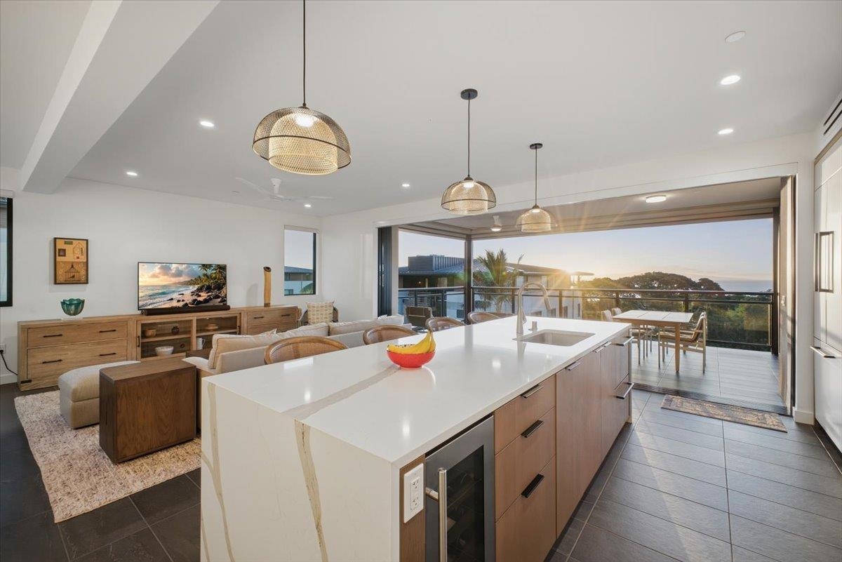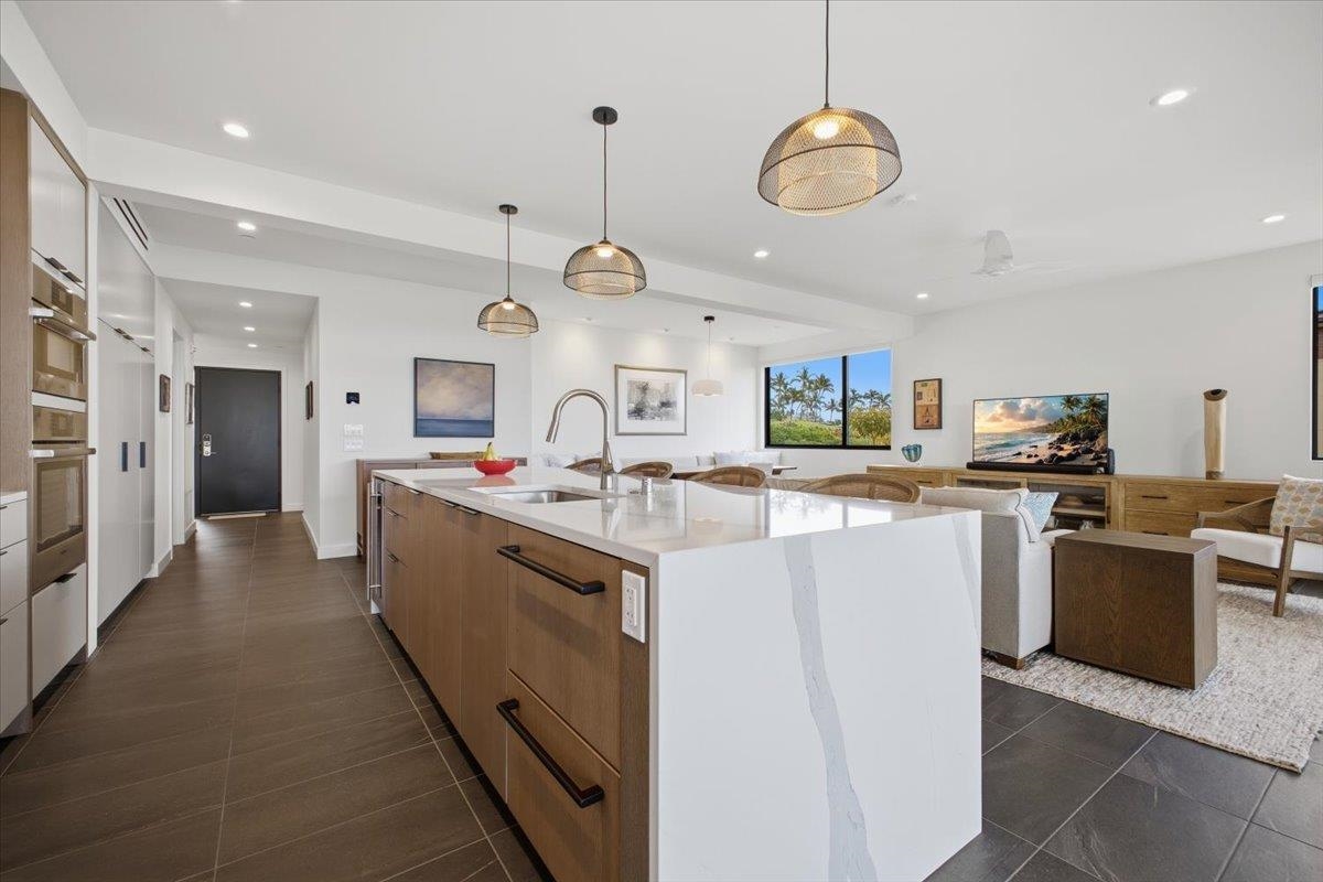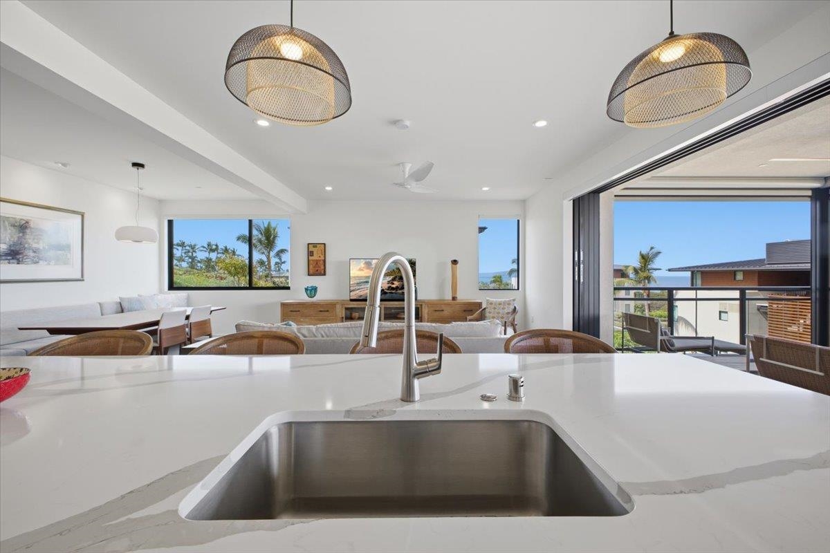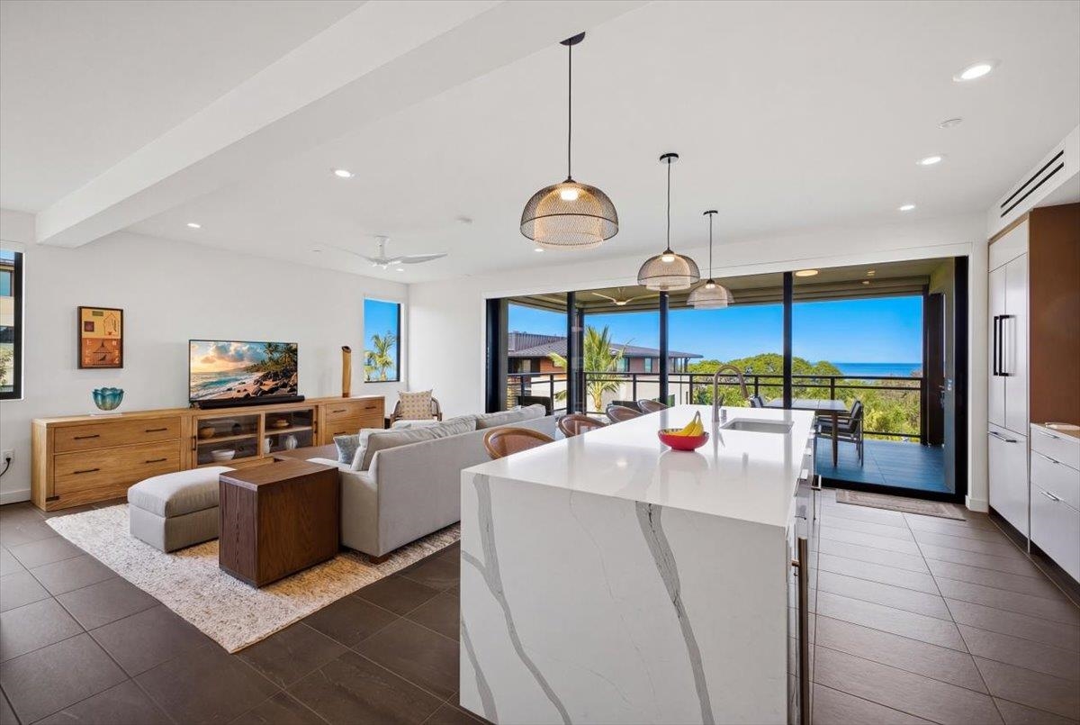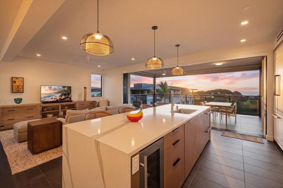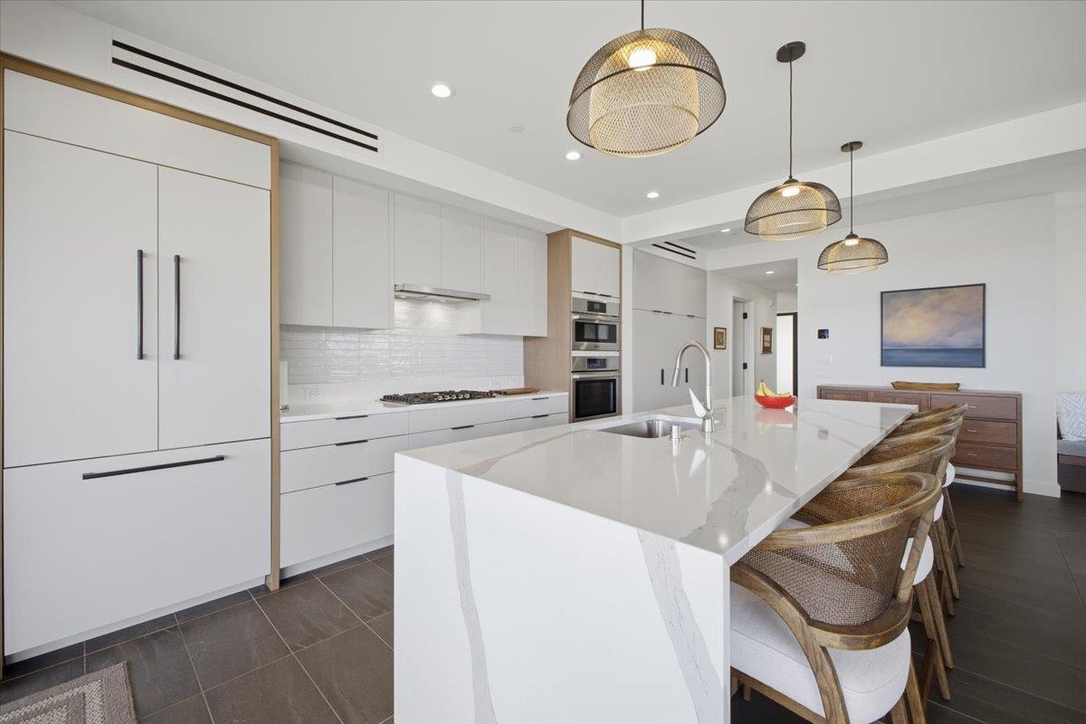 The One You’ve Been Waiting For! This pristine, second floor 2 Bedroom 2 Bath unit in Wailea’s Newest Development has it all. This premium location provides you with amazing Ocean and Outer Island views with incredible sunsets and the indescribable joy of great whale watching from your new home. La’i Loa 11C features an open floor plan that sits wide to the view for maximum enjoyment throughout all of your living areas and the generously oversized lanai. The beautiful lanai doors disappear into the walls to create a seamless indoor outdoor lifestyle where your Maui future awaits. This home is offered turnkey with gorgeous furnishings designed by Philpotts Interiors including Arhaus, DWR, RH, and Mitchell Gold. The handsome tile flooring upgrade extends to all areas and the world class chef’s kitchen with high end appliances including gas range from Bosch and Fisher Paykel double drawer dishwasher is designed to be completely open for entertaining or your daily relaxation with loved ones. The expansive lanai is impressive and where much of your Maui life will unfold. It features a Coyote gas grill with plenty of room for outdoor dining and an outdoor living area. The dining area features custom banquette and seating. You’ll notice the Hunter Douglas auto blinds and shades on all windows, plus the auto sunscreens on both sides of the oversized lanai, which provides you with the flexible privacy and customizable mood setting for appreciating the beauty of each Maui day. The two baths are elegant in both decor and function, offering the comfort and quality feel of resort type spa living. In addition to the community gates, each building has electronic access gates and garage, plus an elevator to all levels. Your private storage space in the garage area is huge and so convenient for extra storage, ready for any bikes, clubs, and all of your other Maui accessories. The gated community has unbelievable amenities including an expansive infinity edge pool with dedicated lap end, a giant hot tub spa, steam and sauna in the facilities, state of the art fitness center with free weights, two gathering areas, a secluded area with gas fired pit for sunset watching and more. This incredible unit is being sold turnkey - so just get ready to drop your bags and start living the good life in the one of a kind Wailea Resort, with all the world class beaches, shopping, restaurants, and amazing beauty of Maui to enjoy.