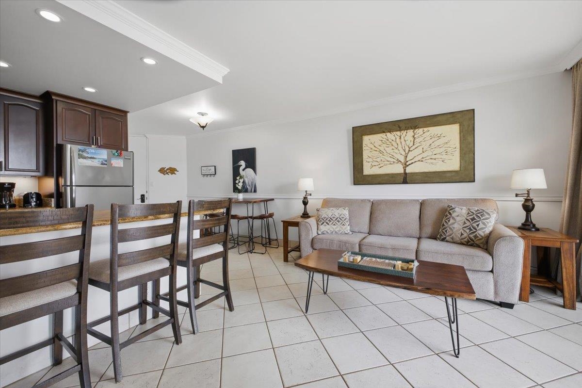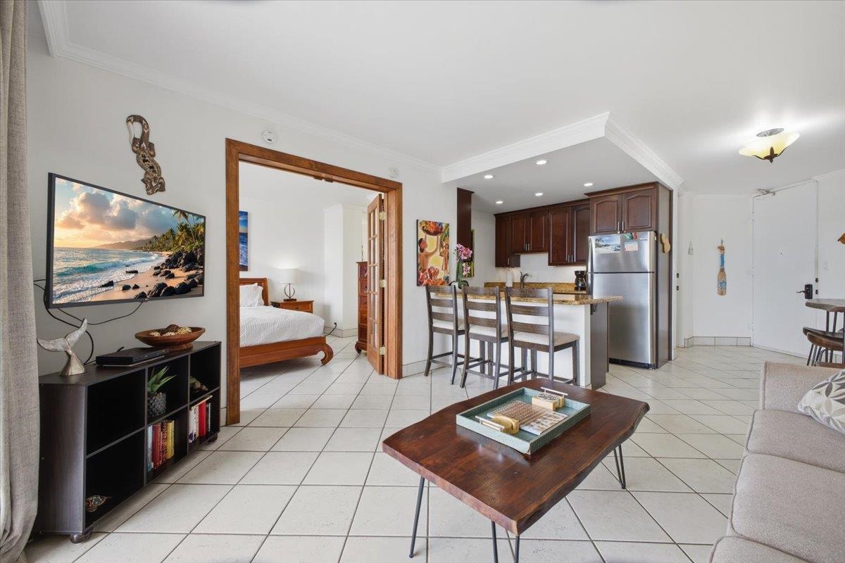Welcome to Kauhale Makai 632, a top-floor gem ideally positioned on the desirable north corner of the Plumeria Building. This beautifully situated 2-bedroom, 2-bathroom condo offers 799 square feet of comfortable island living with breathtaking panoramic views. From both the primary bedroom and the living room, enjoy stunning vistas of the Pacific Ocean, and the majestic West Maui Mountains-perfect for soaking in Maui's unforgettable sunsets. Kauhale Makai is ideally located adjacent to Waipuilani Park, providing expansive green space for outdoor activities, along with tennis and pickleball courts just steps away. The nearby beach and park setting create an idyllic environment for relaxation and recreation. Conveniently located in North Kihei, you're just minutes from a variety of local restaurants, shops, and conveniences. A short drive south brings you to Wailea, where you'll find world-class beaches, renowned golf courses, and exceptional dining experiences. Whether you're seeking a full-time residence, vacation getaway, or investment opportunity, Kauhale Makai 632 offers the perfect blend of location, views, and lifestyle.