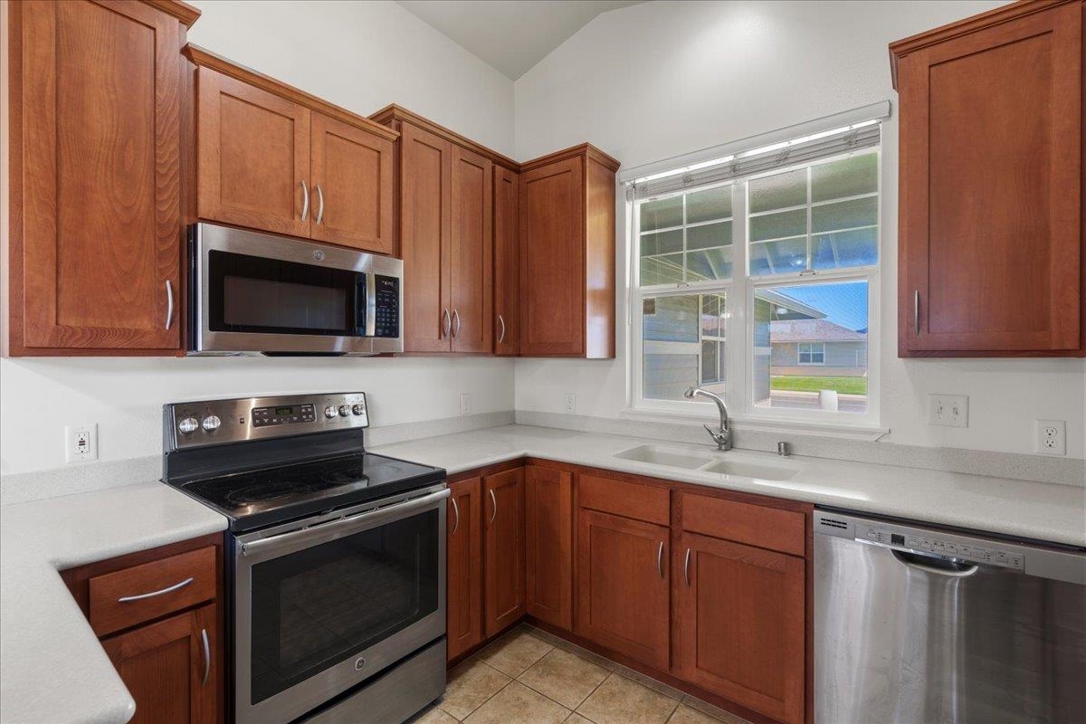 Welcome to one of Central Maui's best neighborhoods, the Parkways at Maui Lani! Located near the Dunes at Maui Lani Golf Course, 103 Olina features 3 bedrooms and 2 bathrooms over 1,385 sqft of single-level living space. Built in 2016 by Towne Island Homes, this beautiful home is the Hapuna Floorplan with 9-foot ceilings, 8-foot custom doors, corian counter tops, and recently updated luxury vinyl flooring. Central air conditioning keeps the home cool while 13 net-metered solar panels backed up by 2 Tesla Model 2 batteries (the equivalent of 4 Tesla model 1 batteries) keep electrical bills virtually non-existent. Low-maintenance, irrigated landscaping complements the home and keeps life easy! Currently the lowest-priced offering in the Parkways, this could be the perfect home for your family!