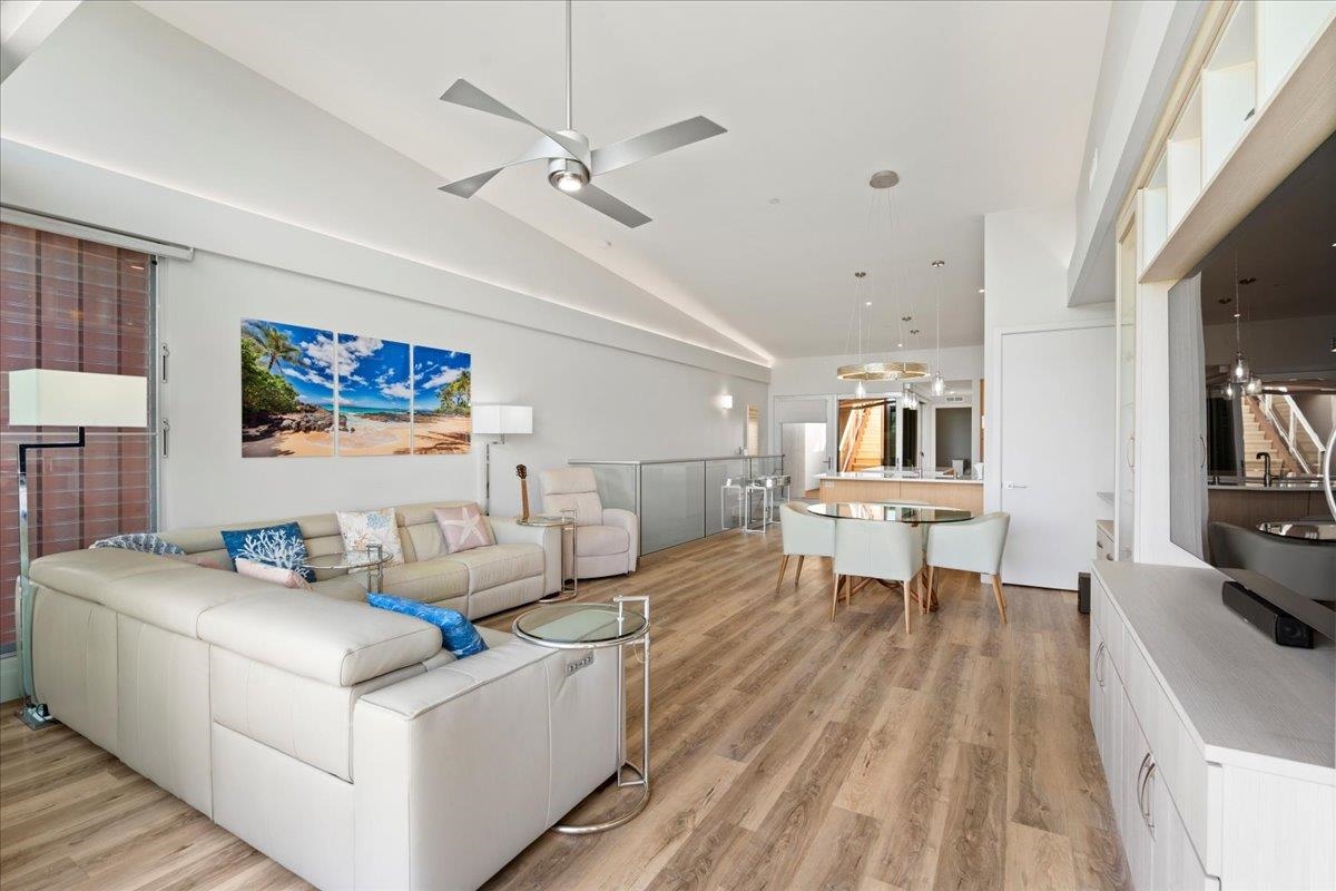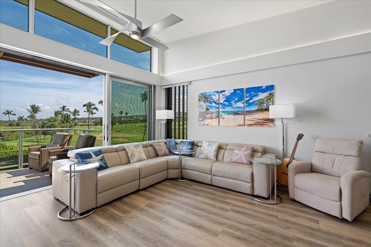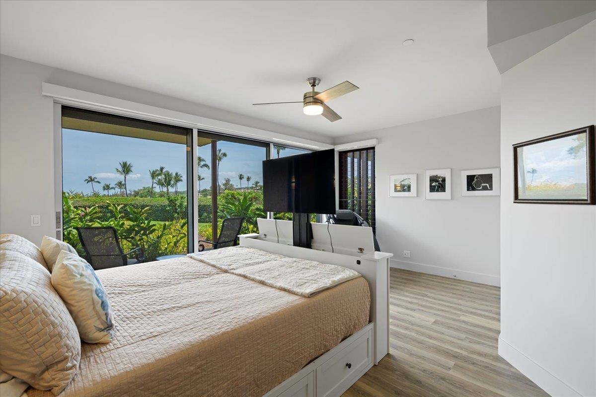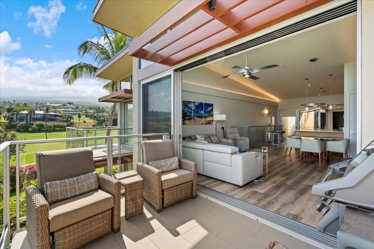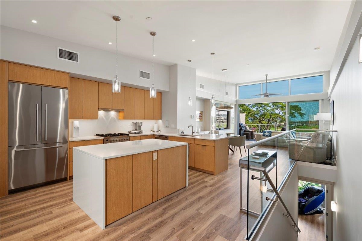 Welcome to Makalii one of Wailea’s newest luxury residences known for its mid-century modern design. This spectacular condominium (7C) is located on the upper row and is situated in the only building that that faces north, overlooking the beautiful Wailea Blue Golf Course. The orientation of this building provides wonderful privacy and an abundance of natural light from the floor to ceiling windows.There are 3 spacious bedrooms and 3 bathrooms including a separate guest suite “casita” located over the one car garage. This ensuite is south facing with a beautiful glimpse of the ocean and offers a wonderful private space for guests and family. As you enter the home through your private courtyard there are no steps. The open-concept layout flows effortlessly from the entryway to the living room, gourmet kitchen, and out to the cozy lanai. Features include Fisher Paykel appliances, including refrigerator, freestanding gas range, and dish washer. Quartz countertops, designer cabinetry, Luxury Vinyl Plank flooring throughout, California Closets organizers in all three bedrooms, media center in living room and coffee bar in primary bedroom. Insoroll Elements motorized interior blinds, and Pratic motorized retractable awning in the courtyard. Epoxy floor in the garage with EV charger. The common amenities offer a wonderful resort feel including a saline pool with infinity edge, fitness center, steam room, hot tub, and private facilities for owners. The complex is walking distance to Polo Beach, the Wailea Beach path, The Shops at Wailea, Wailea’s wonderful resorts, dining and shopping.