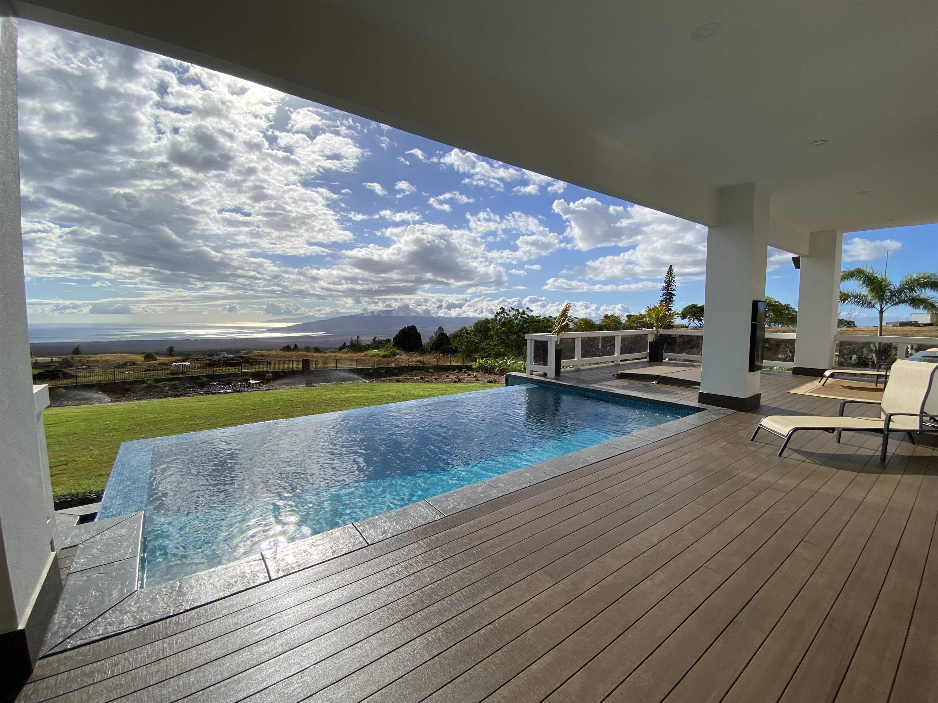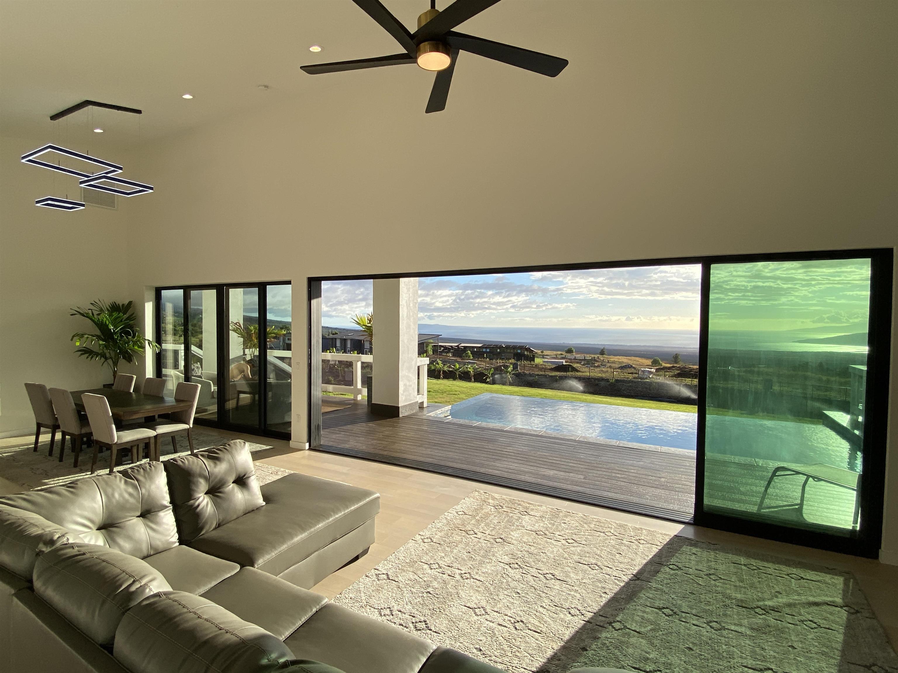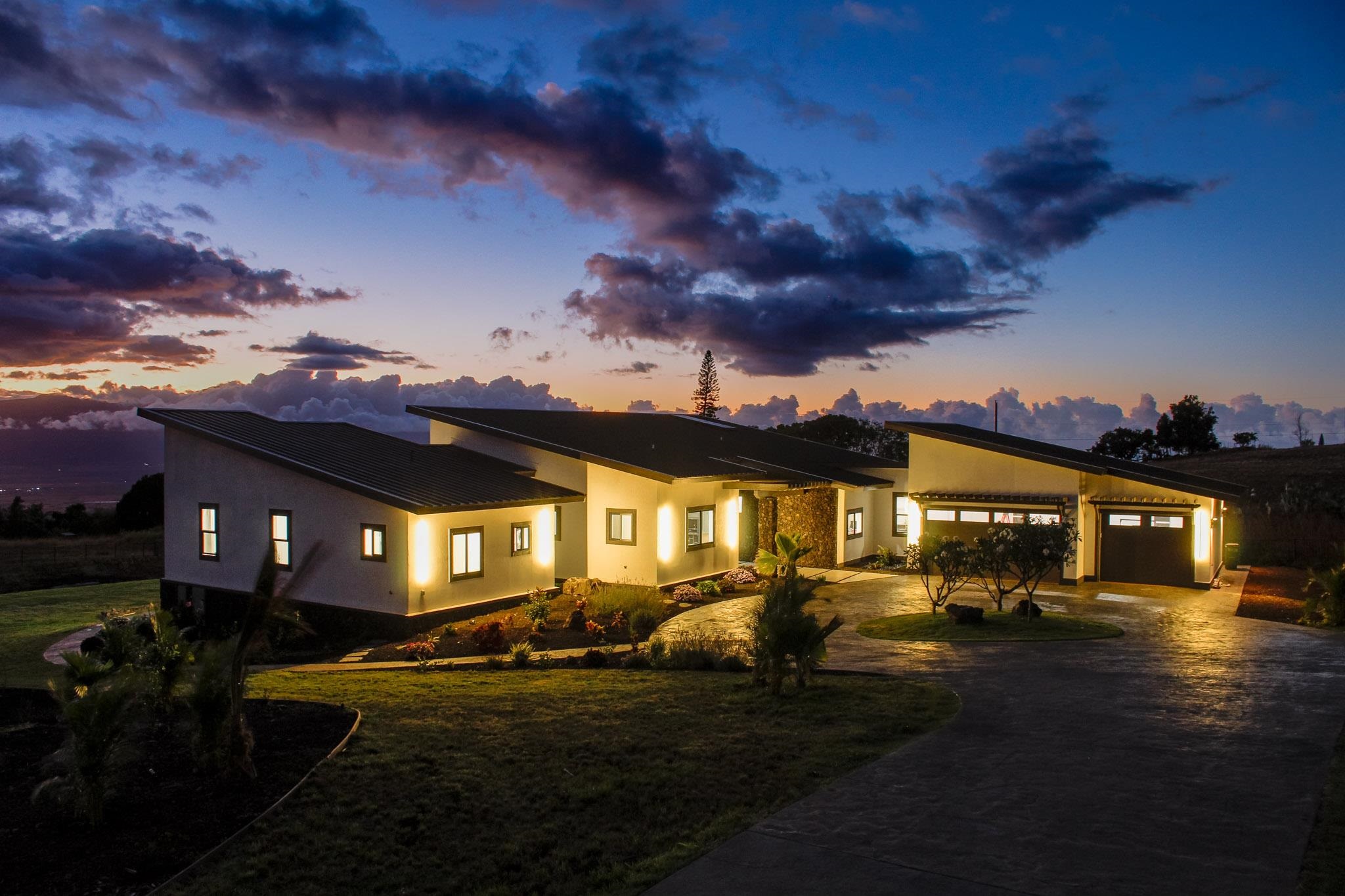 A newly completed 2023 Custom home in the prestigious Kula Io subdivision. This 4 bedroom 4 bath home sits on 2 acres of gorgeous land with amazing sunset ocean views. Over 5000 square feet of living, garage, and spacious lanai make this well designed house a wonderful place to call your home. Conveniently located just 18 mins from town, its the perfect place to be. At 2200 feet elevation the weather is perfect! Banana, macademia nut, and citrus trees are planted and ready to provide your family with fresh organic food. Fully fenced, and privately located, this is one of the best properties in the subdivision. Come take a look around sunset and prepare to be amazed!