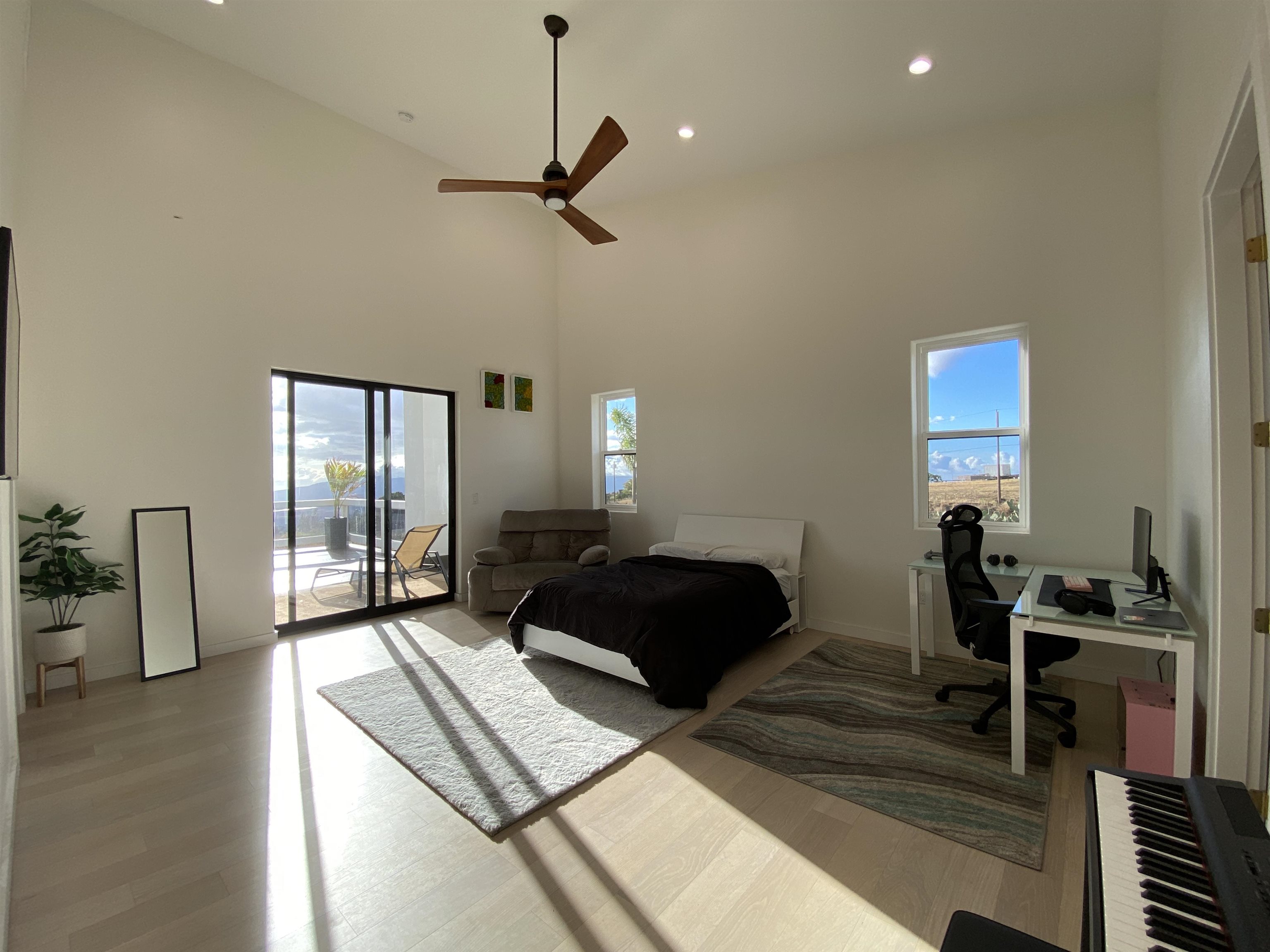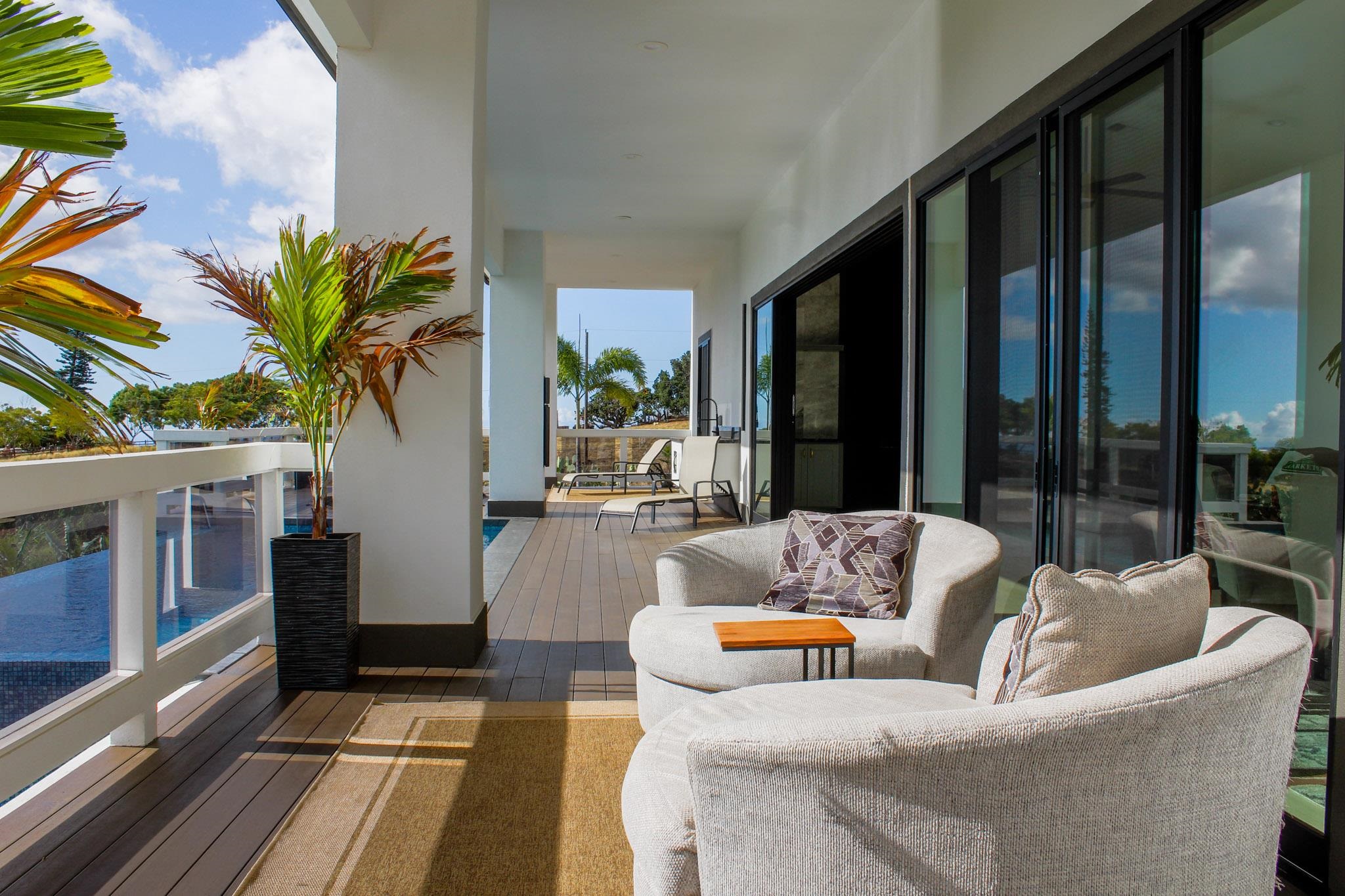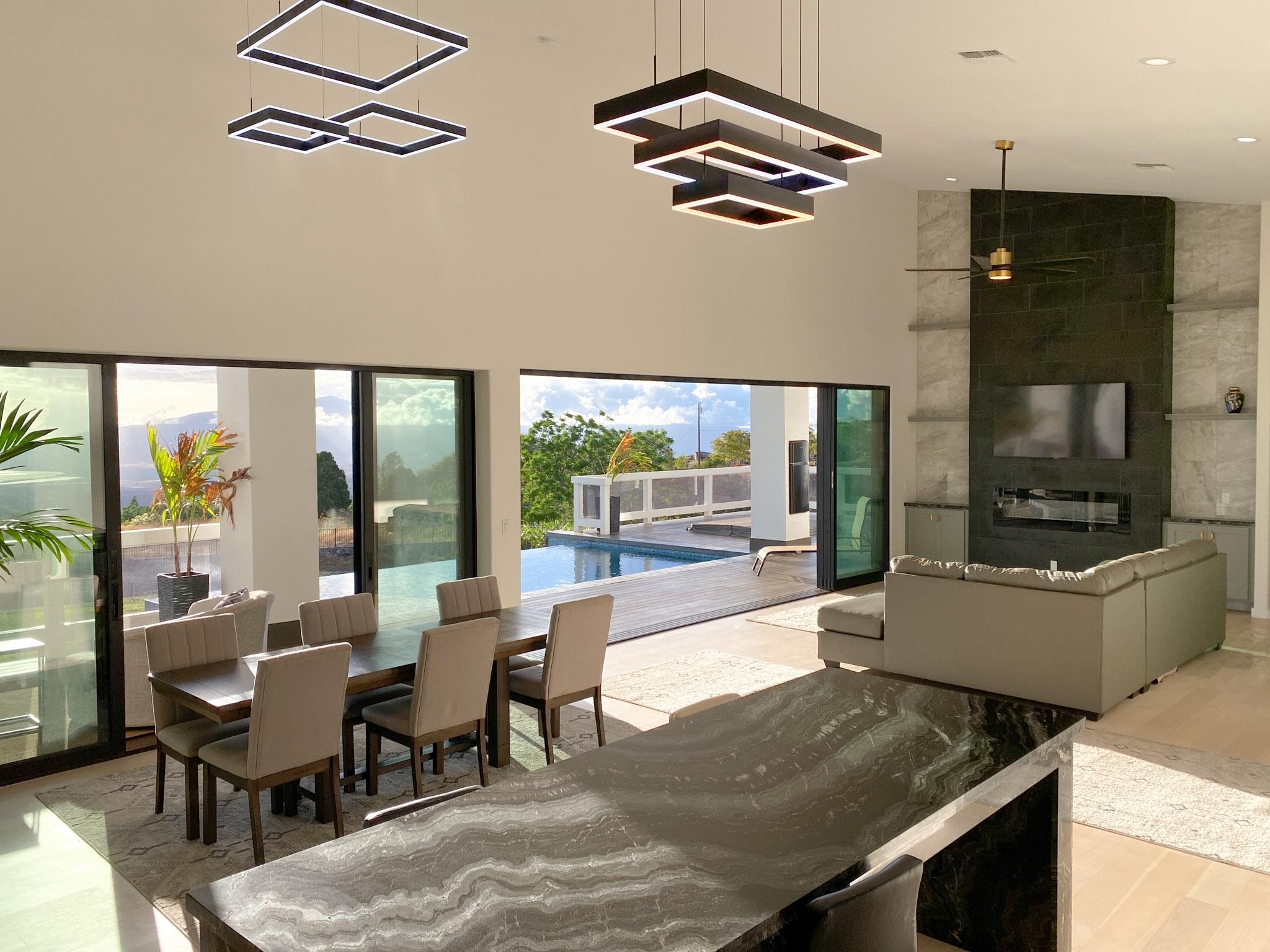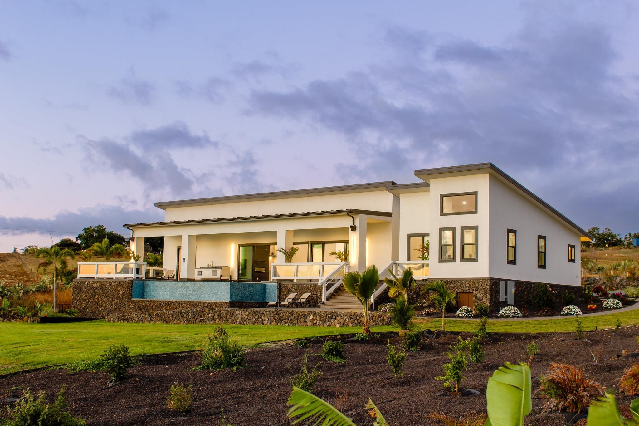A newly completed 2023 Custom home in the prestigious Kula Io subdivision. This 4 bedroom 4 bath home sits on 2 acres of gorgeous land with amazing sunset ocean views. Over 5000 square feet of living, garage, and spacious lanai make this well designed house a wonderful place to call your home. Conveniently located just 18 mins from town, its the perfect place to be. At 2200 feet elevation the weather is perfect! Banana, macademia nut, and citrus trees are planted and ready to provide your family with fresh organic food. Fully fenced, and privately located, this is one of the best properties in the subdivision. Come take a look around sunset and prepare to be amazed!