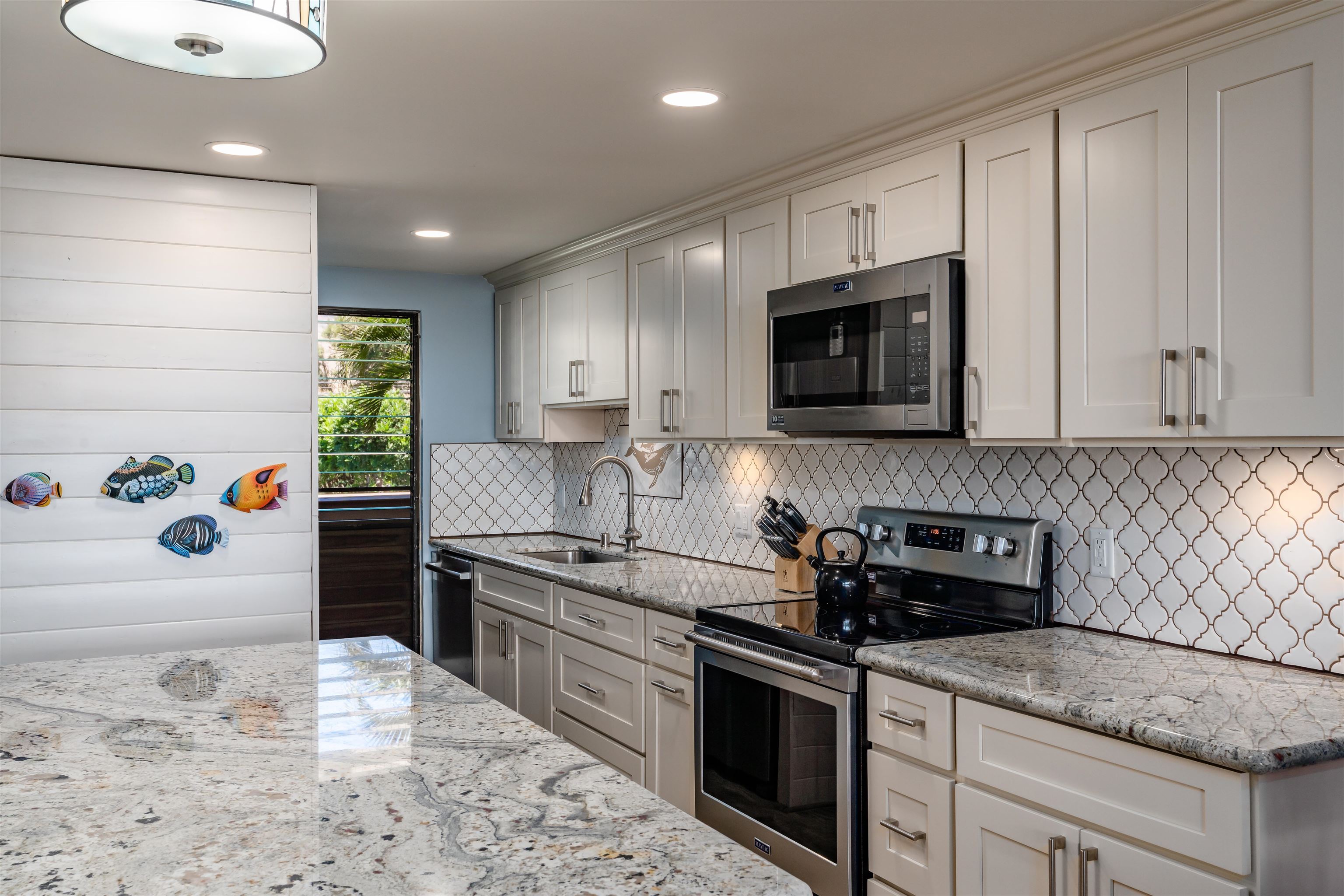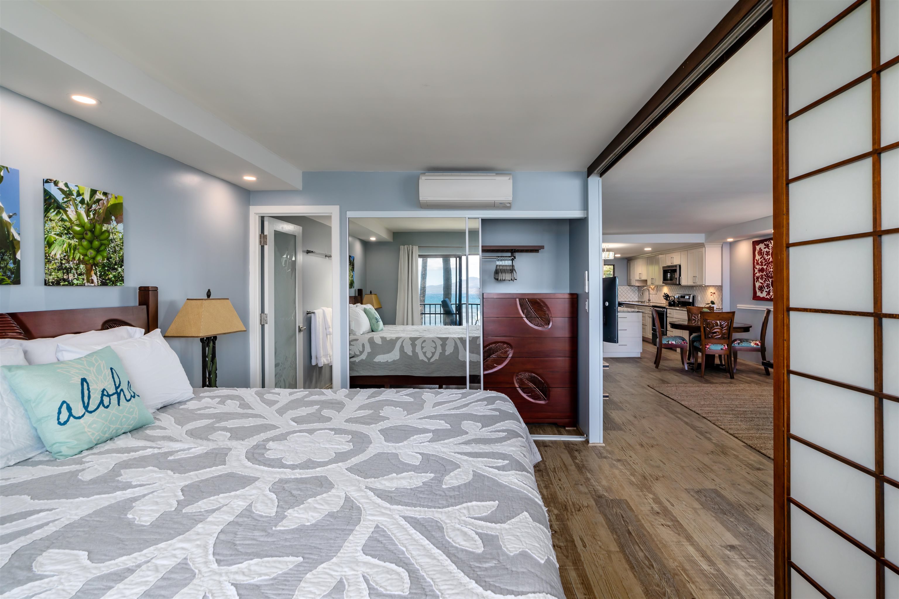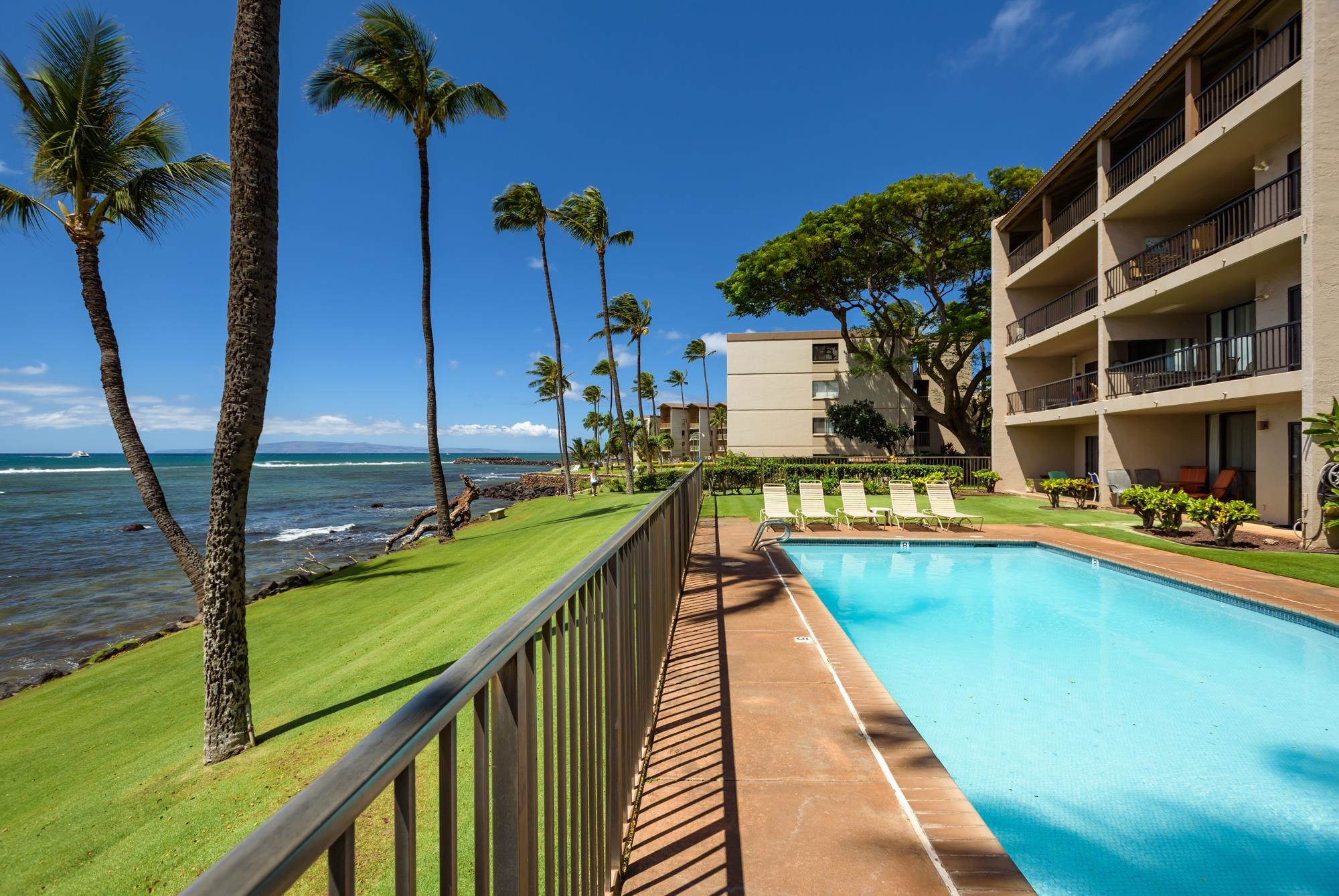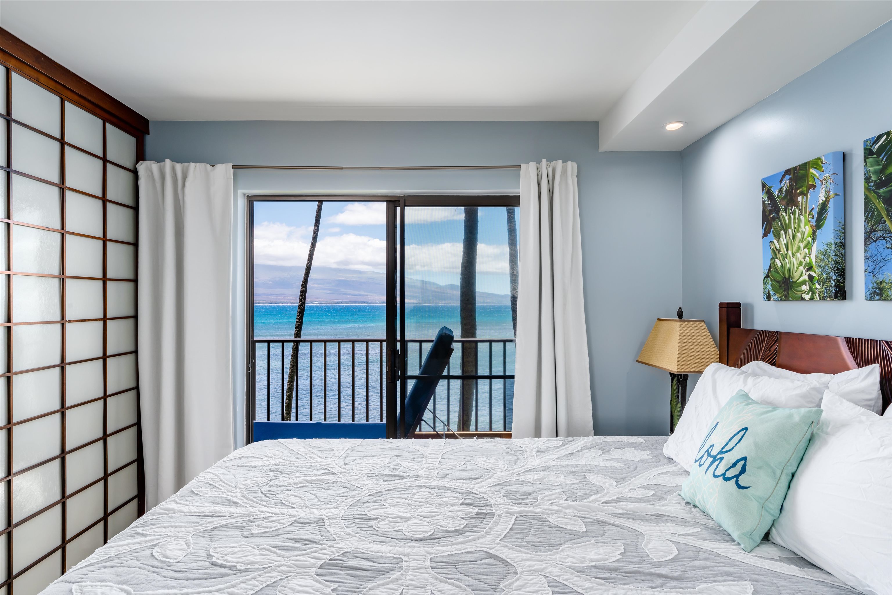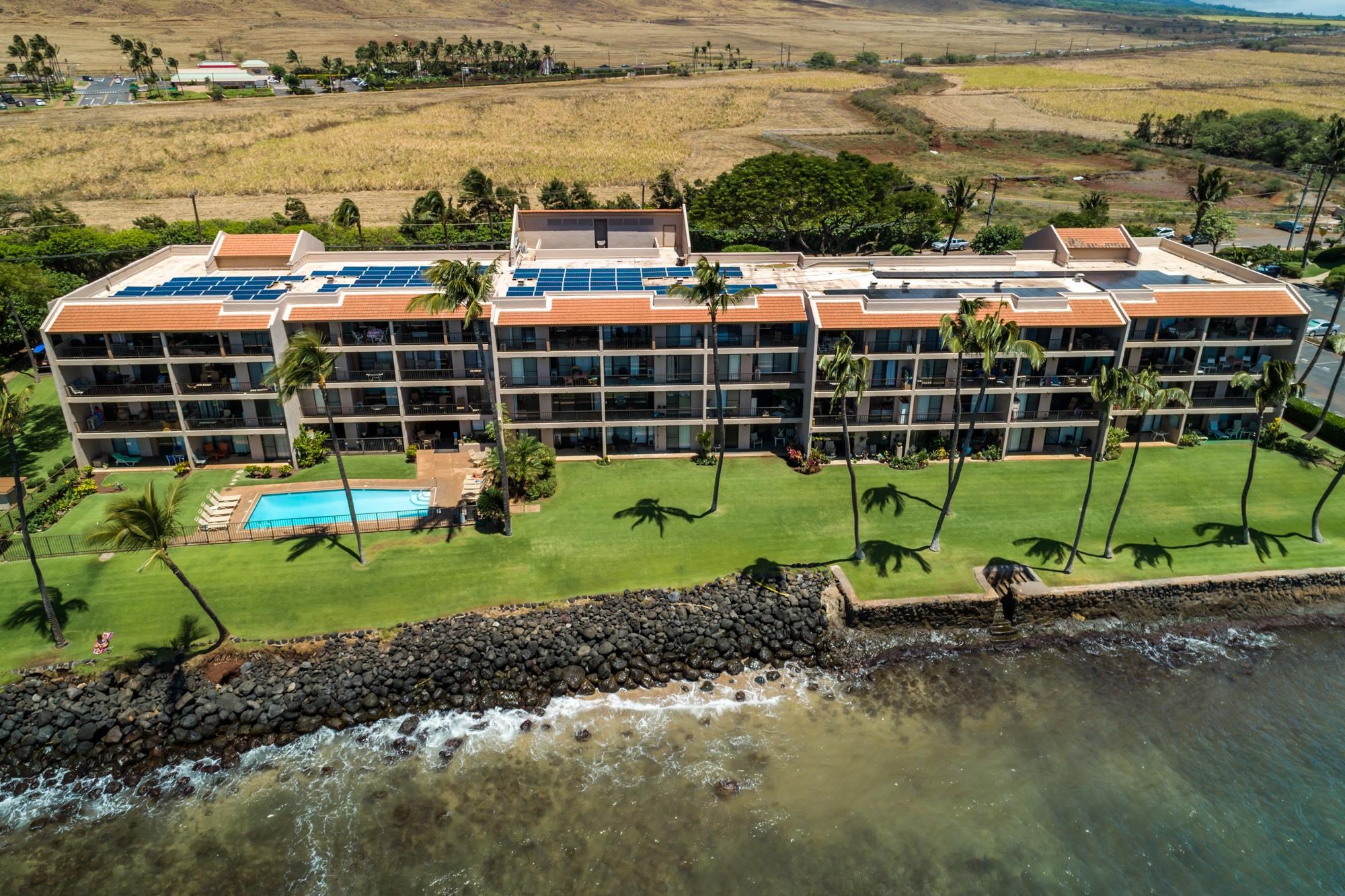 Lauloa 209 — oceanfront, fully renovated, and ready to go. Step inside to wide-plank floors, solid wood cabinetry, new countertops, and split A/C throughout. The living area opens to a lanai with unobstructed views across Ma'alaea Bay to Haleakala. Primary suite has an ensuite bath and ocean views. The building sits right on the water with a pool, lawn, and easy access to Ma'alaea Harbor, Sugar Beach, and nearby restaurants. Turnkey condition with proven rental history. Second home, investment, or both — this one checks the boxes.