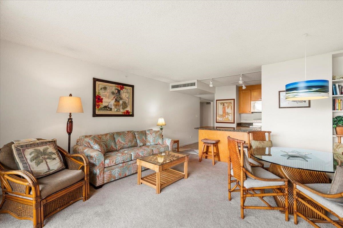 This is the one! A well-established Hotel Zoned, short-term vacation rental with a strong history of consistent occupancy. Experience the epitome of resort living at Aston Kaanapali Shores #423. Located perfectly on the fourth floor, this resort-style condominium offers two bedrooms, two bathrooms, and accommodations for up to six guests. A spacious private lanai affords views of the verdant tropical landscape, courtyard pool, as well as breathtaking ocean vistas, sunsets, and whale sightings. The lanai also overlooks a serene koi pond, with tranquil sounds from the waterfall. The residence is offered fully furnished and showcases an open floor plan that includes a comprehensively equipped kitchen, a dining table for four occupants, a breakfast bar with stools, a Smart television, a new pull-out sofa sleeper, and supplementary seating options. #423 is a well-established short-term vacation rental with a strong occupancy history. Beyond the resort gates, the best of West Maui is literally at your fingertips. Whalers Village, Hula Grill and Duke's Beach House to Star Noodle and Mala Ocean Tavern. Championship golf courses are all within easy reach. And for nature lovers, the Ka'anapali coastline is one of Maui's premier whale watching destinations — from December through April, humpback whales breach and spout just offshore. Combined with the nightly spectacle of fiery West Maui sunsets painting the sky over Lanai and Molokai, the views from #423 are nothing short of magical, season after season. As part of the iconic Aston Kaanapali Shores oceanfront resort, owners and guests enjoy world-class amenities right at their doorstep — lush 10-acre tropical grounds with direct beachfront access, two sparkling freshwater pools, relaxing hot tubs, tennis and pickleball courts, a fitness center, and a beloved open-air beachfront restaurant and bar. Don't miss your chance to own this true ocean-view treasure on the world-renowned Ka'anapali Coast — where lifestyle and investment meet in perfect harmony.