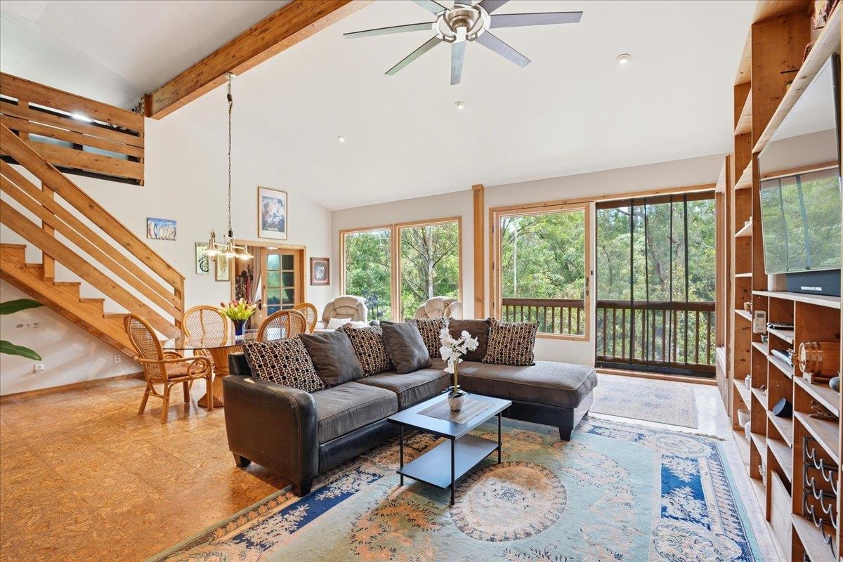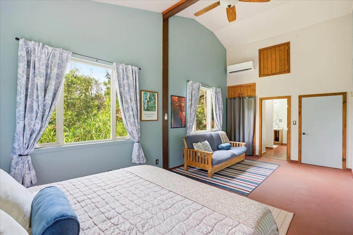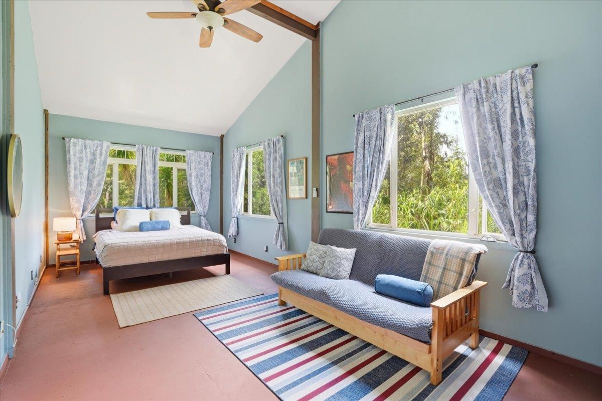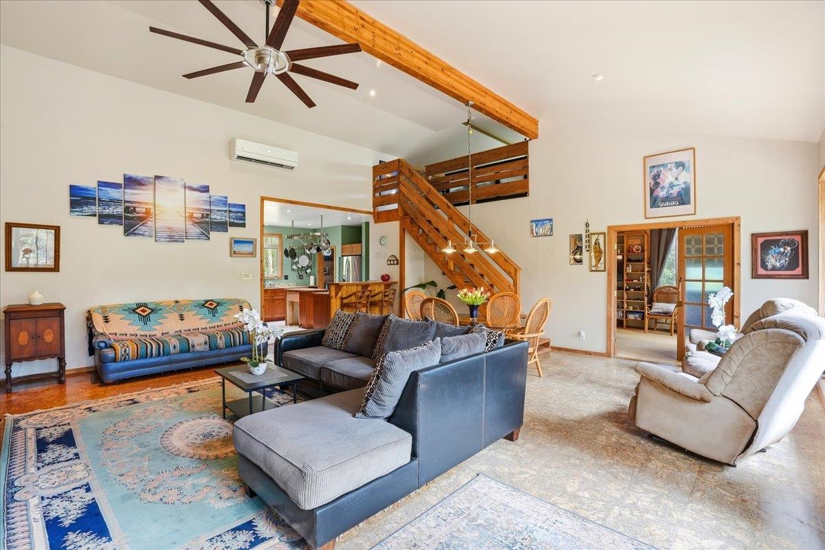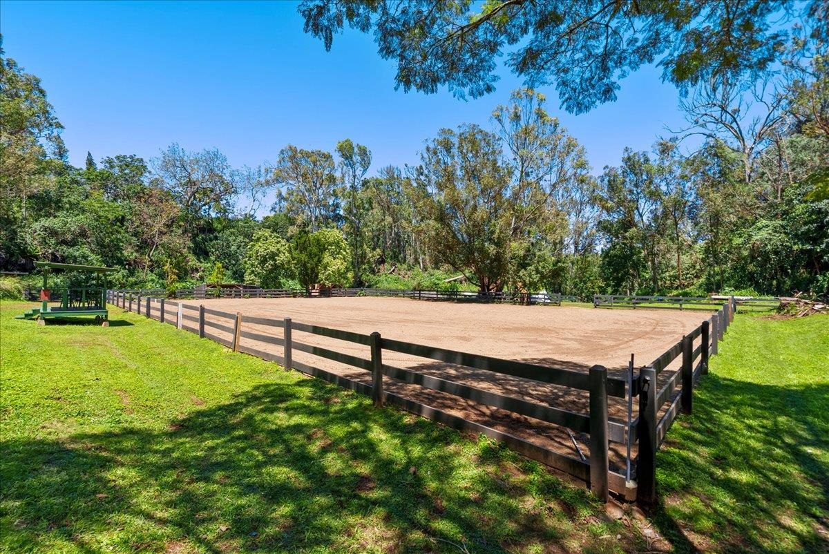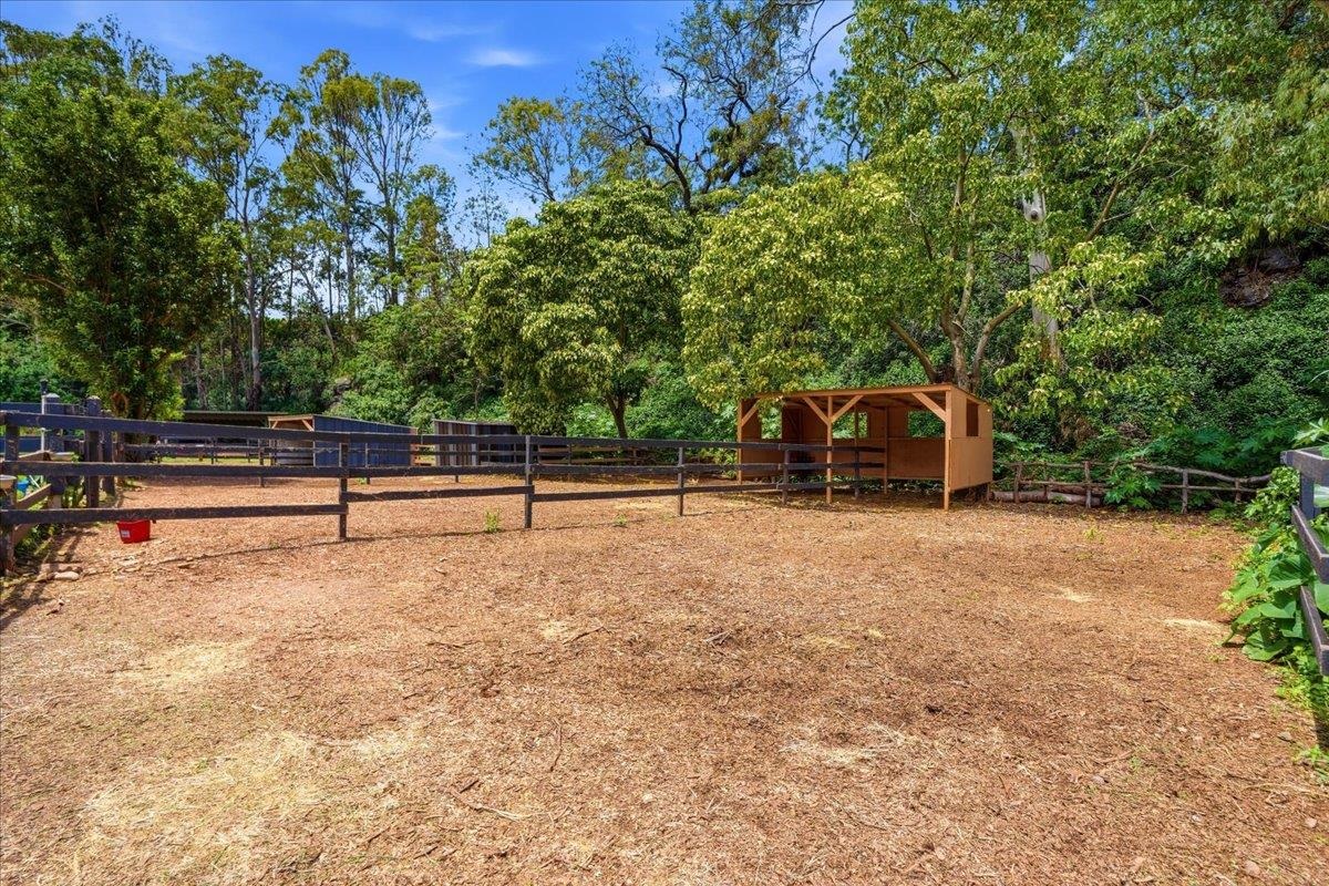 If home is where your horse is, try imagining yourself on this 9.618-acre ranch in the heart of Maui's cowboy town, Makawao! With a 16-stall horse barn and a climate-controlled tack room, a huge riding arena used for horse shows, training, and riding lessons, and farm buildings filling every corner, this has been a working ranch for the last 25 years. The primary dwelling was originally built as a barn but was converted into a 4-bedroom, 3-bath, 2,914 sq. ft. amazing home with windows looking out on the ranch as well as barn-high ceilings that give a spacious feeling to the heart of the house! Enjoy extreme comfort with cooling and heating mini-splits in every room! Wind down the rustic center spiral staircase to the mother-in-law style lower-level, where you'll find 2 of the bedrooms and the laundry room. Across from the main arena is the original home that is now a completely rebuilt cottage with a large attached studio... a great place for a ranch manager to live. The possibilities are endless with this versatile property!