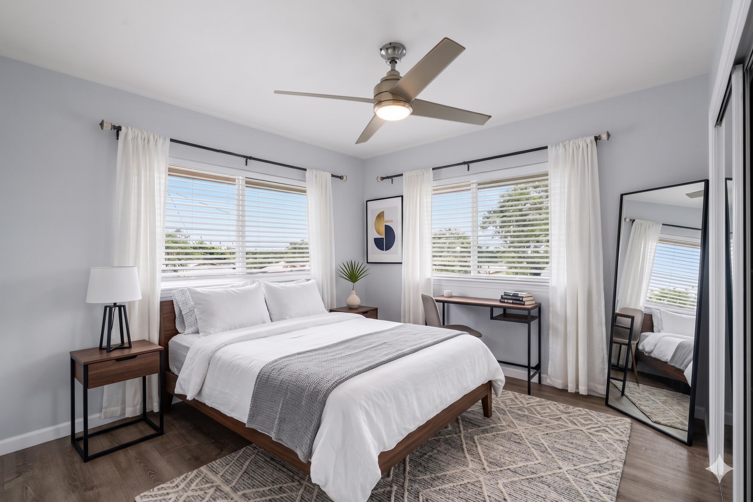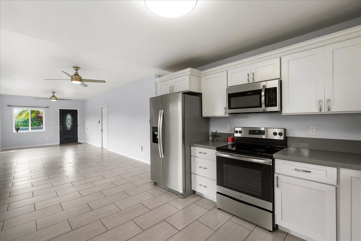 Built in 2017, this 5-bedroom, 2.5-bath home offers modern comfort with a 2-car garage — all for under $1M. The spacious floor plan features 9-foot ceilings, ideal for larger households, along with majestic mountain views. The kitchen is equipped with quartz countertops and stainless steel appliances, while porcelain tile and LVP flooring throughout provide durability and low-maintenance appeal. A Mitsubishi split A/C system keeps the living room and kitchen comfortable year-round. Exterior highlights include an outdoor shower and a fully fenced, low-maintenance yard. Centrally located in Wailuku with temperate weather and convenient access to schools, shopping, restaurants, the hospital, medical offices, airport, and golf courses. No HOA. Listing Broker has a financial interest. Broker/Owner. Some photos are virtually staged.