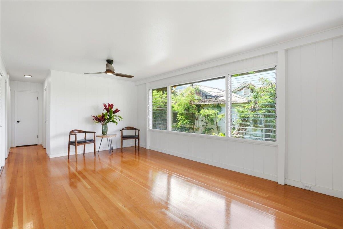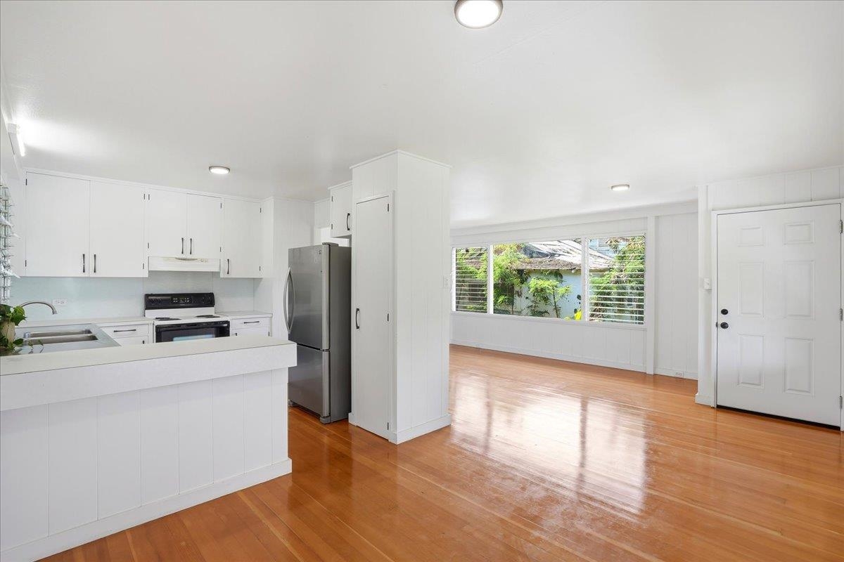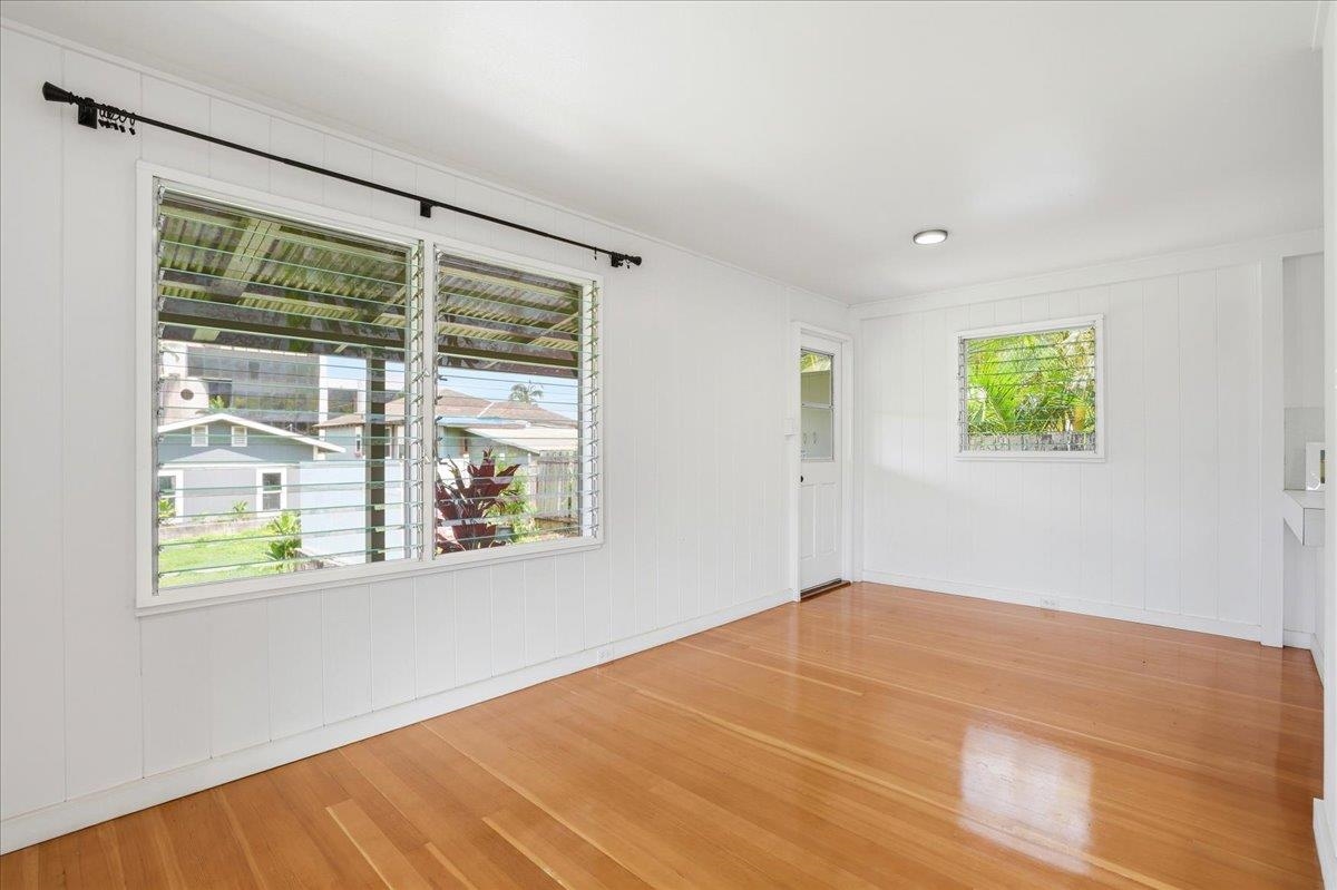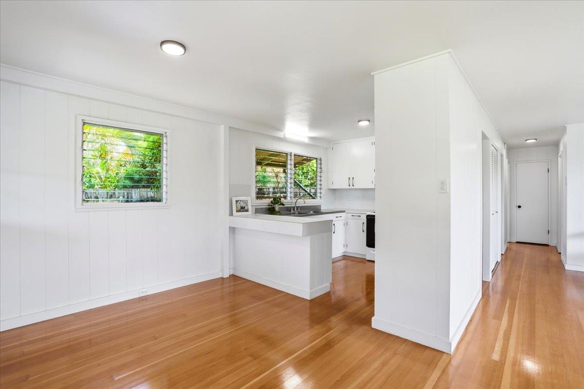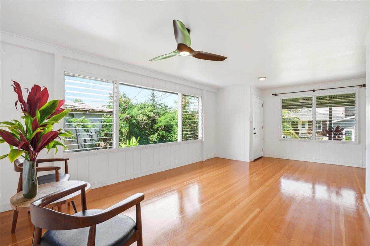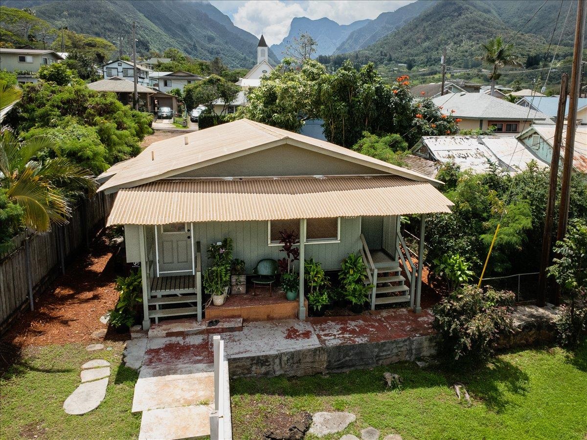 Step into this delightful 2-bedroom, 1-bathroom plantation style home that exudes warmth and character. With nearly 800 square feet of living space, the open floor plan, bright white walls, and picturesque windows create a spacious and inviting feel. Nestled below the entrance to Iao Valley, this thoughtfully updated home offers refinished wood floors, new copper plumbing, fresh interior paint, contemporary light fixtures, and a separate laundry area. It’s truly cute, clean, and move-in ready! Located just minutes from downtown Wailuku, you’ll love the convenience of nearby shops, parks, schools, medical facilities, and county/state buildings. Tucked away at the end of a private sidewalk easement, this home offers a peaceful retreat while still being in the center of it all. Please note, parking is on the street as there is no driveway.
