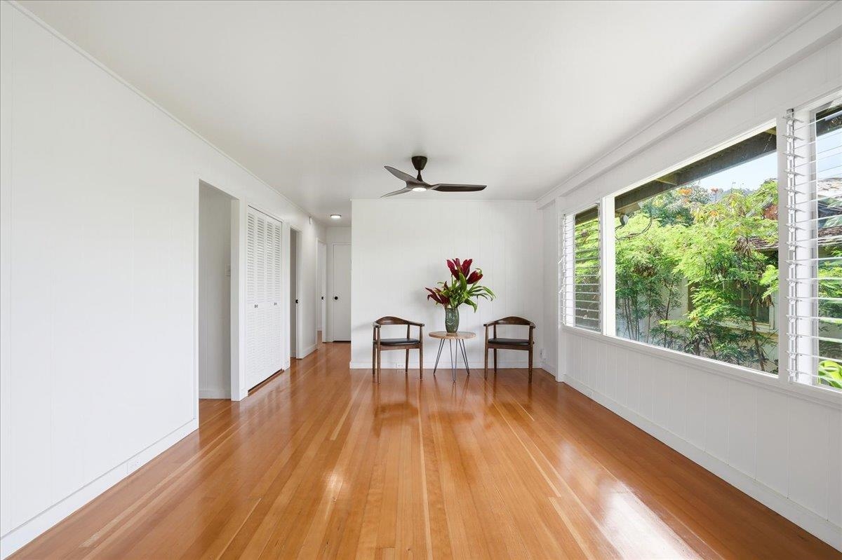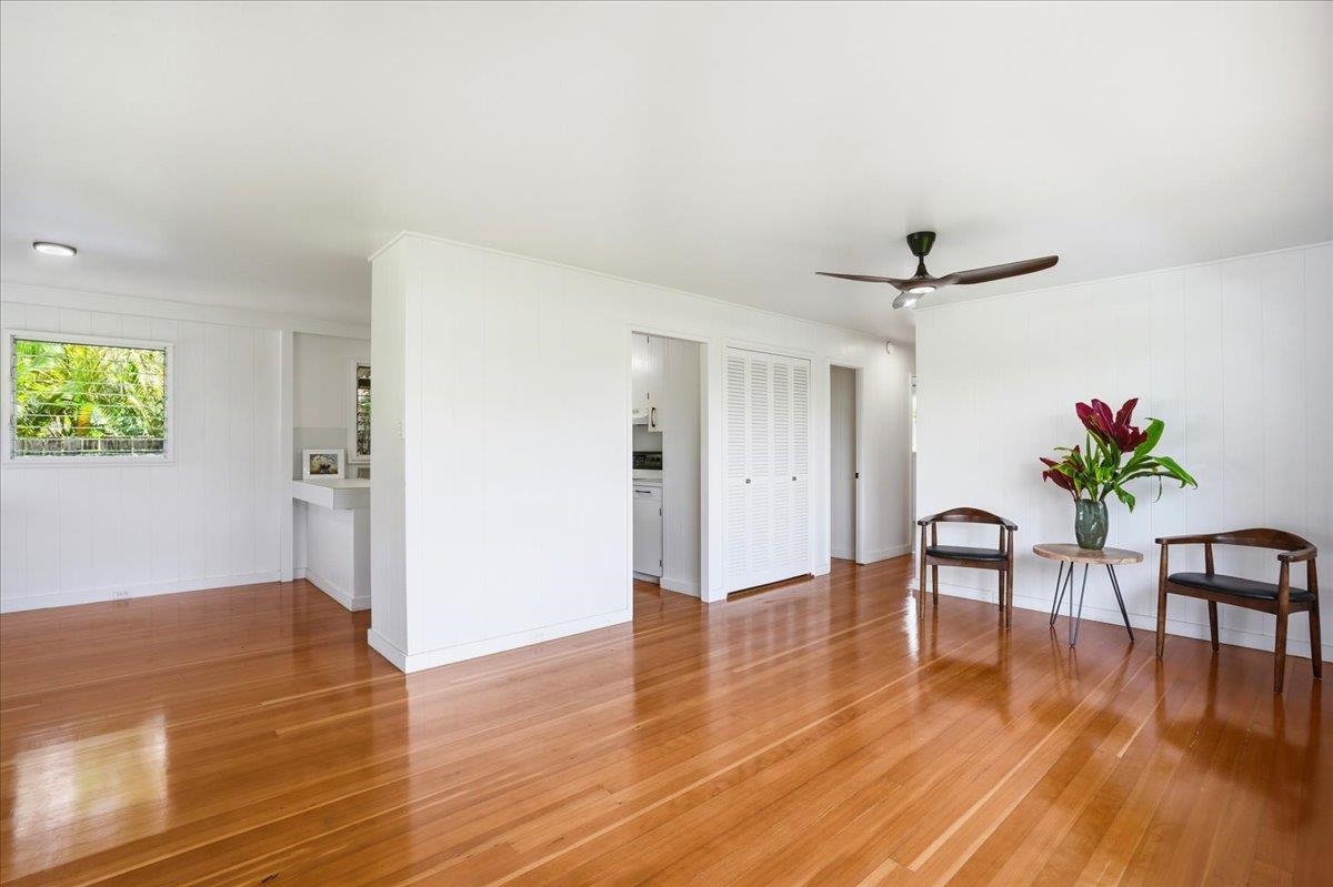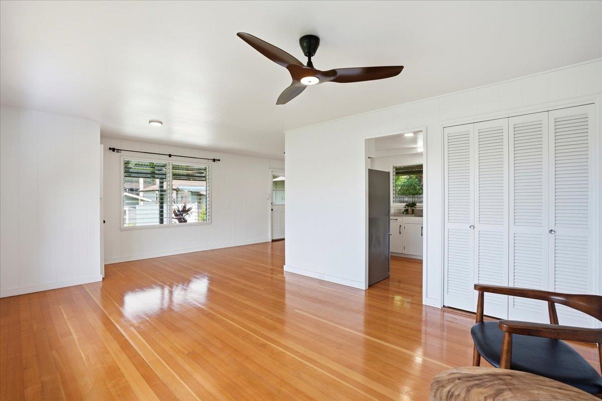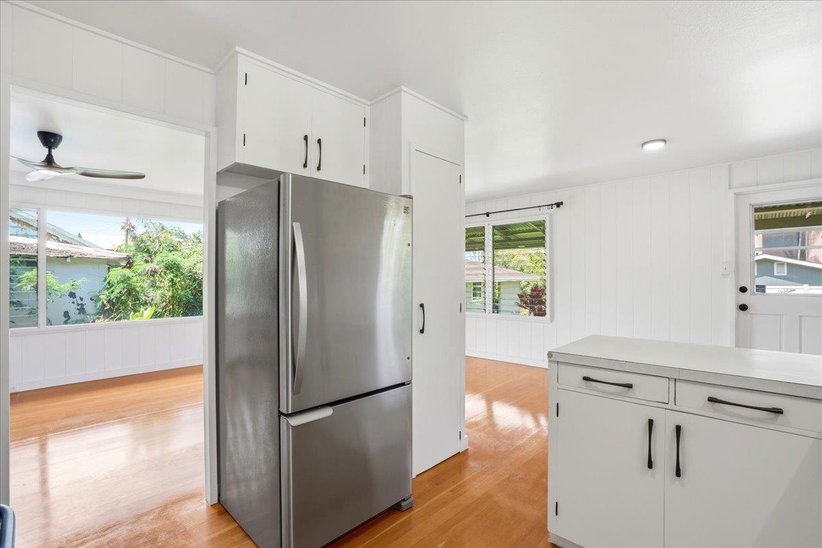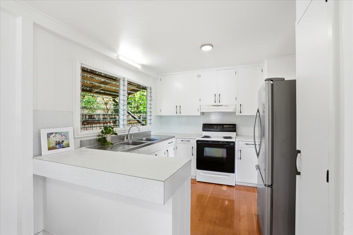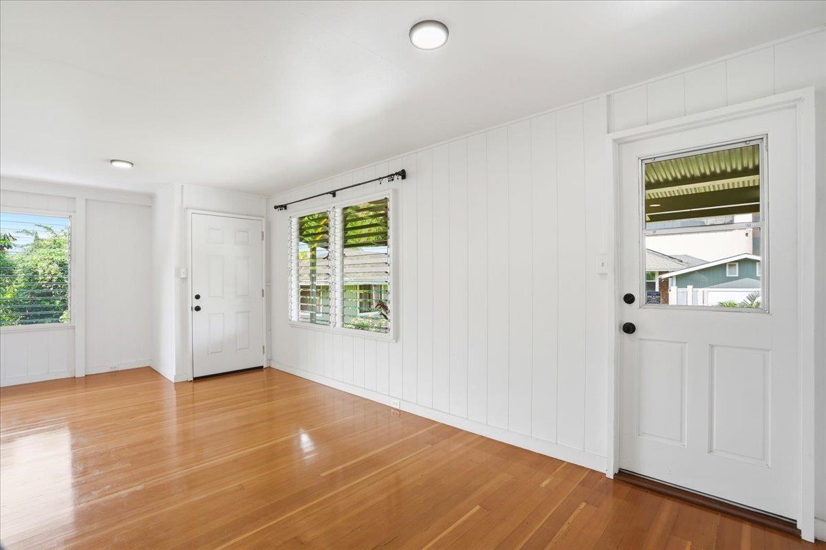 Step into this delightful 2-bedroom, 1-bathroom plantation style home that exudes warmth and character. With nearly 800 square feet of living space, the open floor plan, bright white walls, and picturesque windows create a spacious and inviting feel. Nestled below the entrance to Iao Valley, this thoughtfully updated home offers refinished wood floors, new copper plumbing, fresh interior paint, contemporary light fixtures, and a separate laundry area. It’s truly cute, clean, and move-in ready! Located just minutes from downtown Wailuku, you’ll love the convenience of nearby shops, parks, schools, medical facilities, and county/state buildings. Tucked away at the end of a private sidewalk easement, this home offers a peaceful retreat while still being in the center of it all. Please note, parking is on the street as there is no driveway.