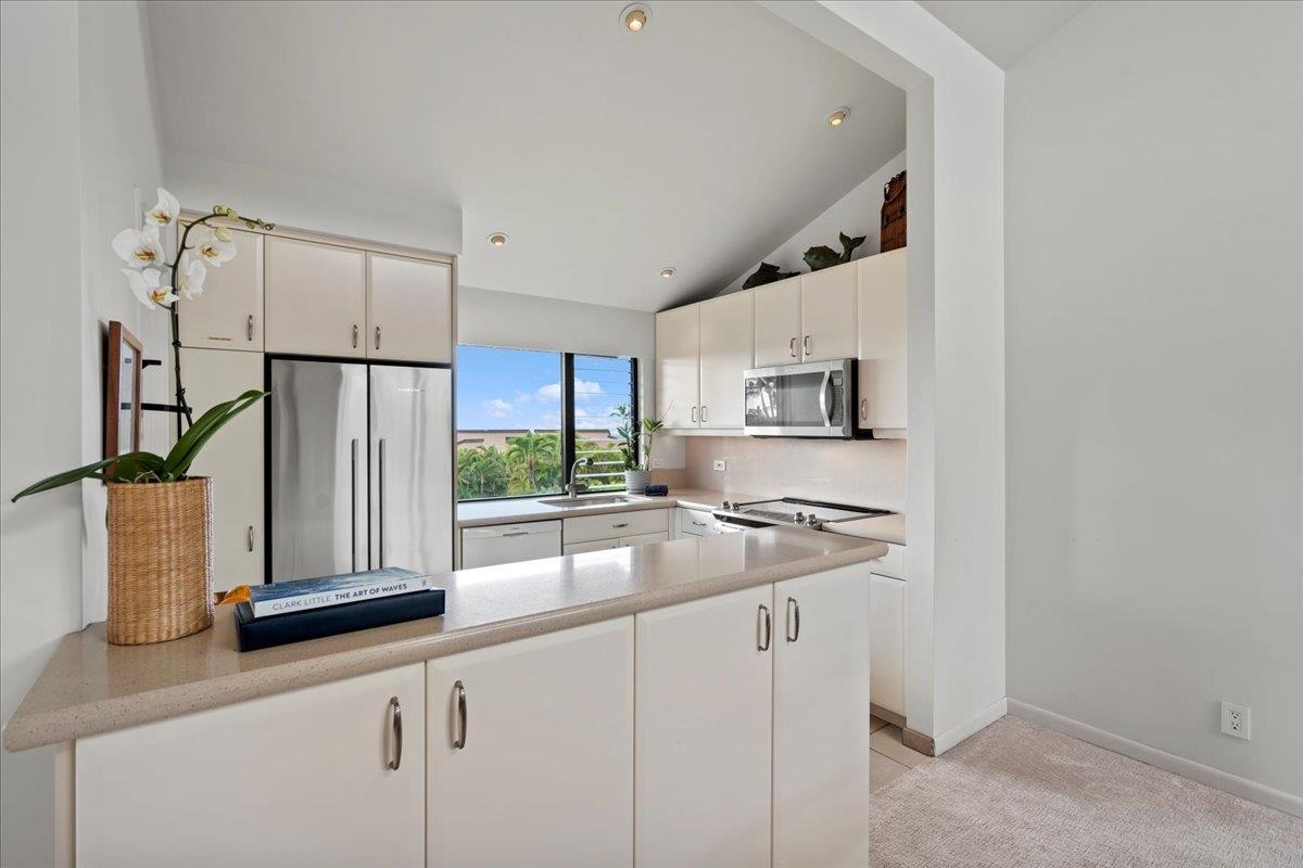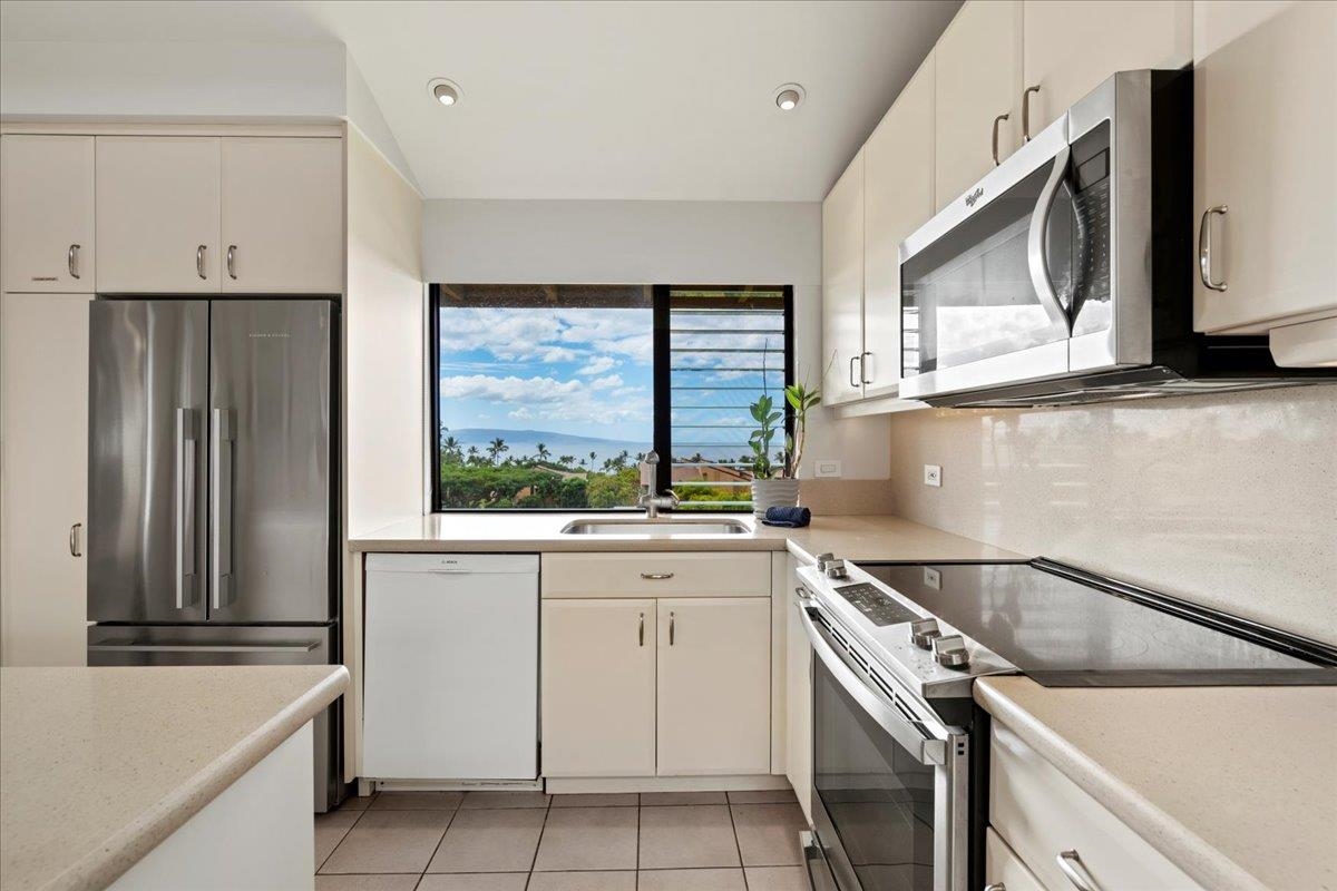 Enjoy stunning panoramic Ocean, Outer Island, and Haleakala views from this incredibly private, top floor, corner unit in highly sought after 17 building at Wailea Ekahi! Villa is offered furnished and is also recently remodeled with all New plush carpets, New remote control ceiling fans, New light fixtures, New Window Shades, New Shower Heads, and New high-end Kitchen appliances including Bosch Dishwasher and Fisher and Pykell Stainless steel refrigerator. The villa features New Central Air Conditioning, New Washer/Dryer, and both baths were upgraded and beautifully re-tiled. The spacious Primary bedroom has an enclosed lanai with upgraded double pane windows creating a pleasant sitting area, and a custom built in office space all situated privately above a natural gulch boasting tropical landscapes and Big mountain views. The Wailea Ekahi Village resort is situated on over 34 acres of tropically landscaped grounds and features a beachfront pool pavilion, four swimming pools, tennis courts, pickleball, shuffle board, gym, and direct access to world famous Keawakapu Beach. Close proximity to Golf, Shopping, and Dining throughout the Wailea Resort.