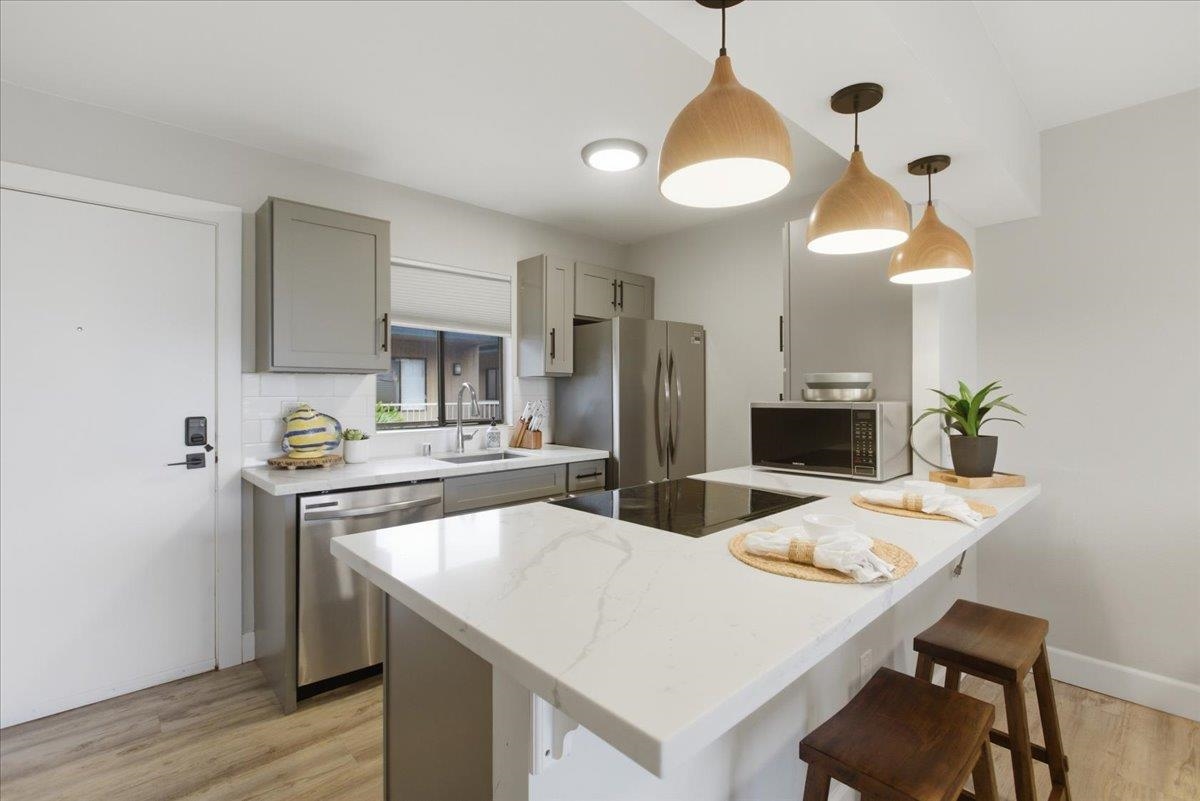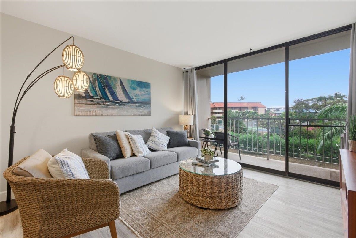 Refined island living awaits in this beautifully upgraded 2-bedroom, 2-bath residence at Pacific Shores, offered fully furnished and thoughtfully appointed. The interior has been enhanced with three brand-new split-system A/C units, creating a cool, comfortable retreat after sun-filled days. Clean lines and intentional upgrades lend a sense of ease and livability, while the layout invites both relaxation and connection. This unit includes one assigned parking stall and access to a sparkling pool and gathering spaces, ideal for unwinding or hosting in a laid-back island setting. Perfectly positioned in the vibrant heart of Kihei, you’re just moments from the golden shoreline of Kamaole I Beach Park and the playful surf at nearby Cove Park. An array of local cafés, shops, and dining options are within easy reach, creating a lifestyle that feels both effortless and richly connected. From morning ocean dips to evening skies painted in color, this is a home that captures the rhythm and beauty of South Maui living.