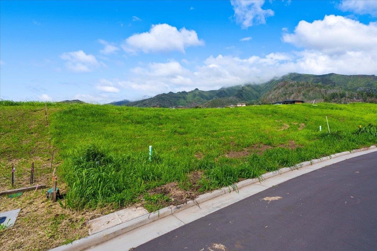 If Wai'olu Estates is where you want to build, Lot 42 is where you want to buy. At 15,997 square feet (nearly 0.37 acres), Lot 42 on Kiha Place is one of the largest lots currently for sale in Wai'olu Estates — and unlike most of the active competition, which sits along the main Kauna Lipo Drive corridor, this lot is tucked into Kiha Place, a quiet cul-de-sac shared by just 12 home sites. If you've been watching Wai'olu Estates, the time to act is now. This is no longer just a community on paper — homes are completed, residents have moved in, and more are under construction. The elevated position delivers both ocean and mountain views — Kahului Harbor and the Pacific to the front, the dramatic ridgeline of the West Maui Mountains as your backdrop. The county water meter is already installed and county sewer is in place, so this lot is truly build-ready. The Wai'olu Estates community features a gated entry, wide paved roads, sidewalks, and streetlights. Everything Central Maui offers is close by: Maui Memorial Hospital, Kahului Airport, schools at every level, the University of Hawaii Maui College, retail, and Wailuku's charming historic district.