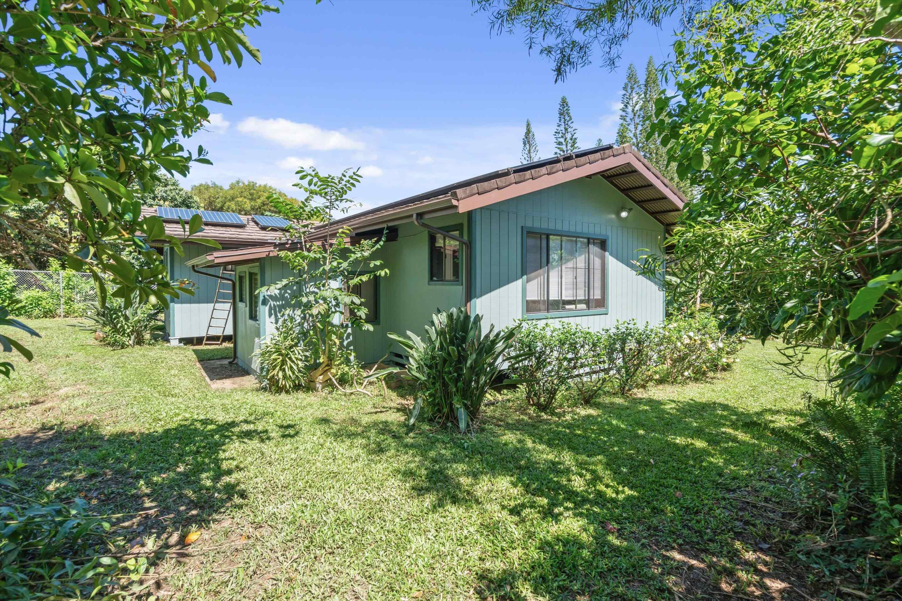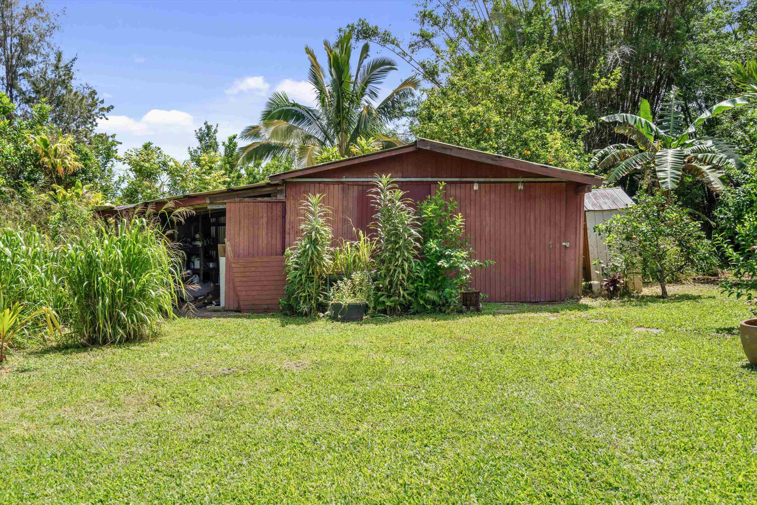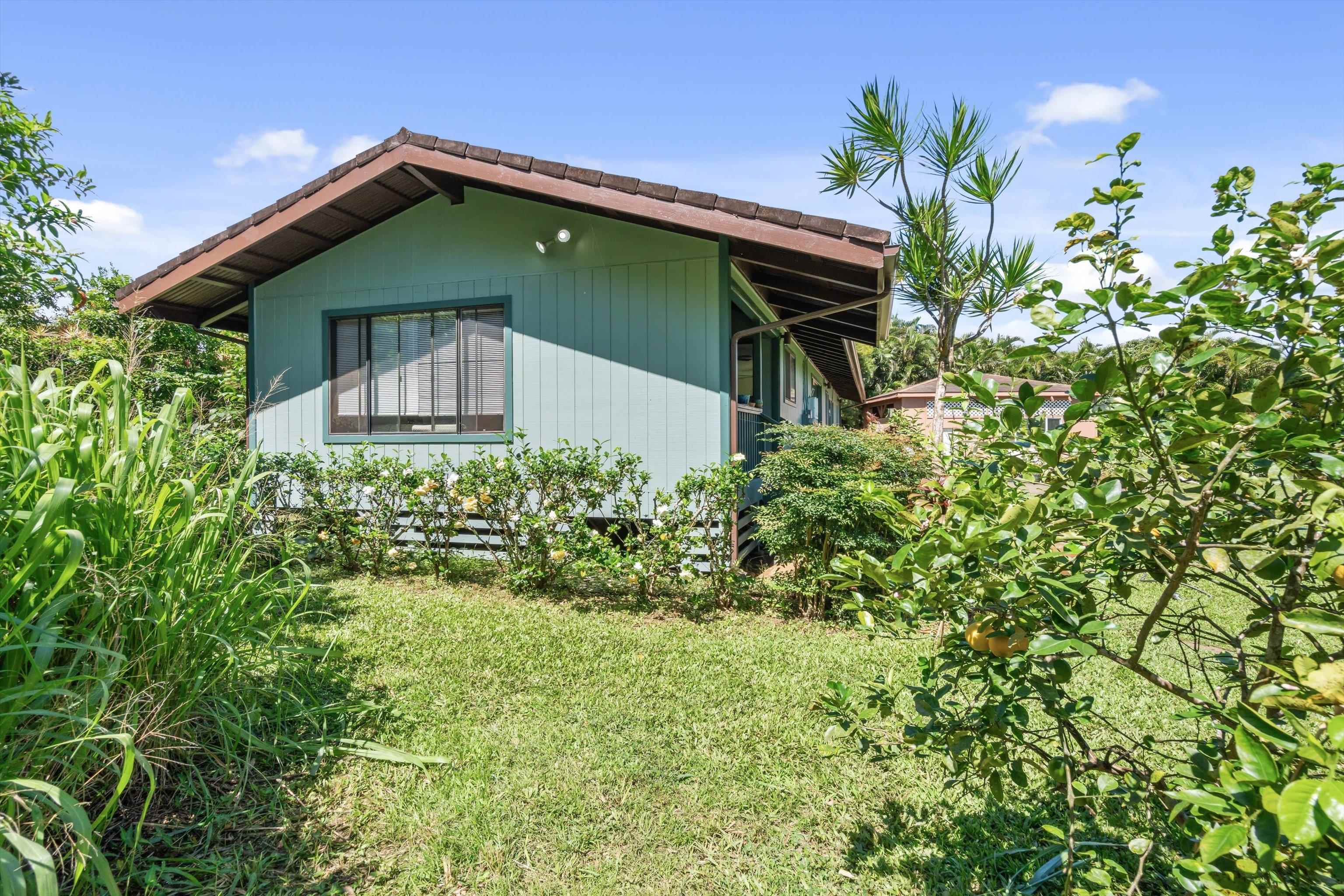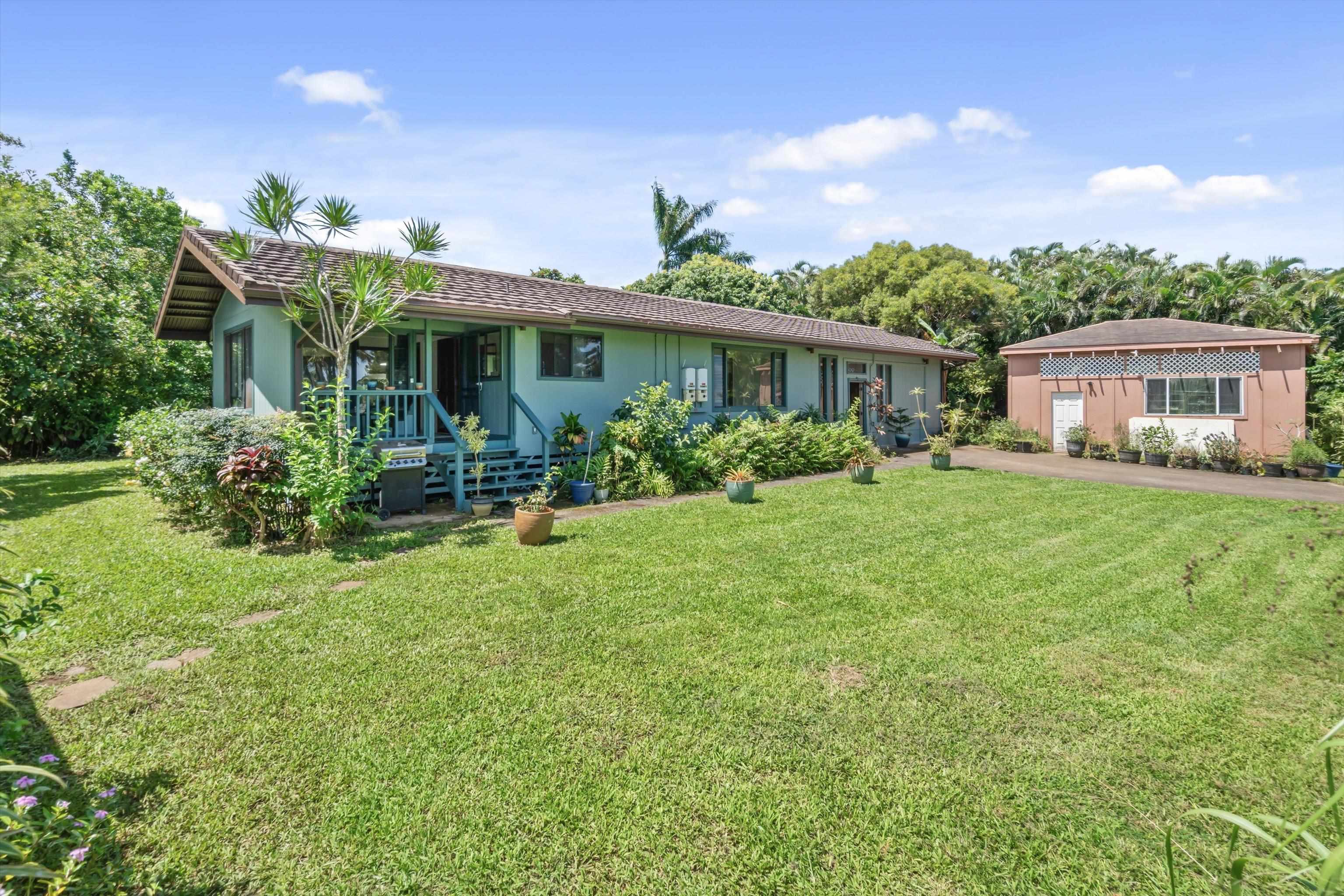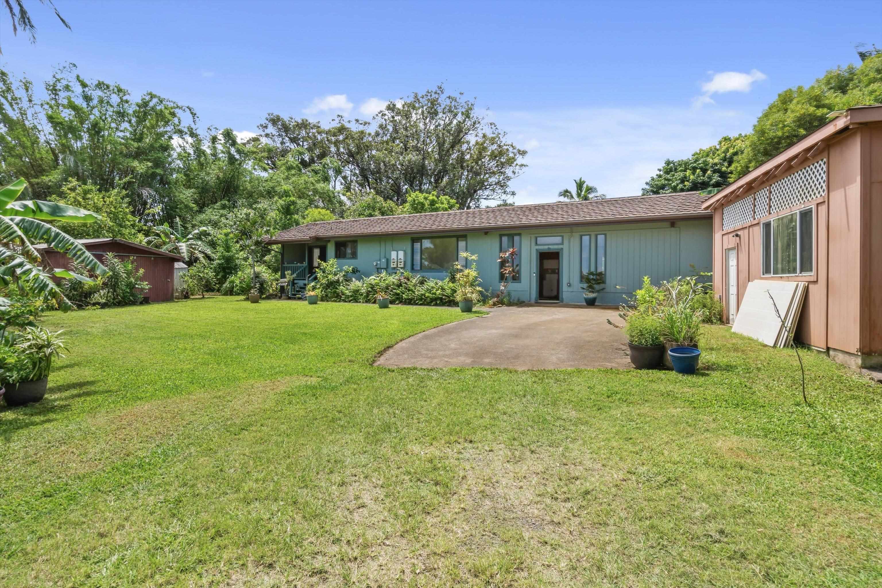 Tucked away on 1.47 lush agricultural acres in Haiku, this private property offers a rare blend of flexibility, privacy, and island charm. Public records reflect a 2-bedroom, 2-bath home, while the adaptable layout allows for multiple living options, including a potential attached studio or separate-entry unit—ideal for extended family, guests, or rental income. The home features a spacious, open feel with seamless indoor-outdoor living. Mature landscaping includes a variety of fruit trees—lime, Hawaiian lemon, coconut, banana, and sugar cane—along with puakenikeni, heliconia, and gardenia and other tropical flowers. A peaceful bamboo grove adds to the sense of serenity, tucked within the uncultivated portion of the acreage. Additional highlights include a detached structure with an Endless Pool spa and storage, extra outbuildings, and two fenced areas suited for gardening, pets, or agriculture. Set back from Holokai Road behind a gated entry, the property offers exceptional privacy in a peaceful Haiku setting. Within a 15 minute drive, are stores, schools, post office and beaches. Some images include virtual staging.