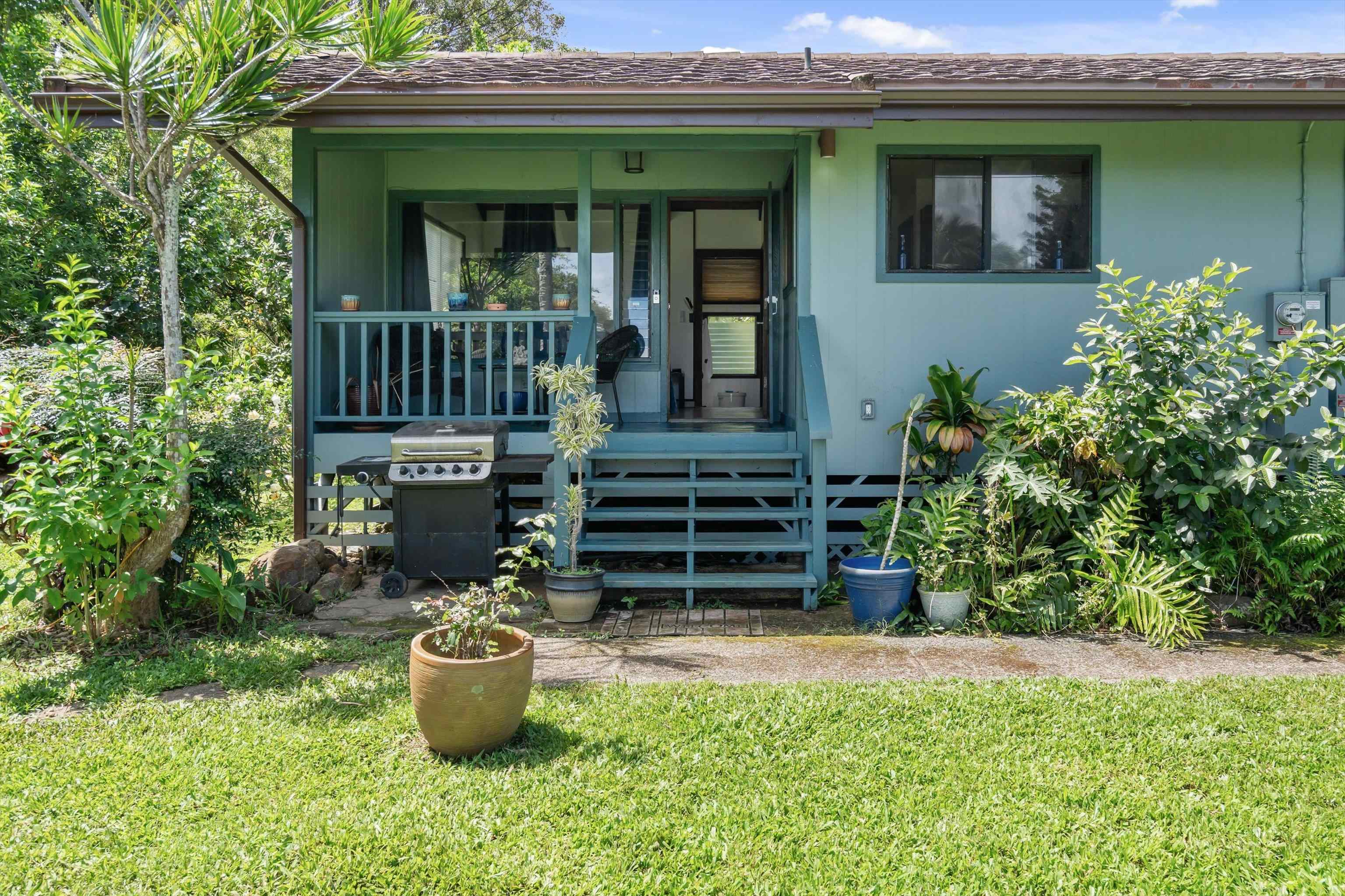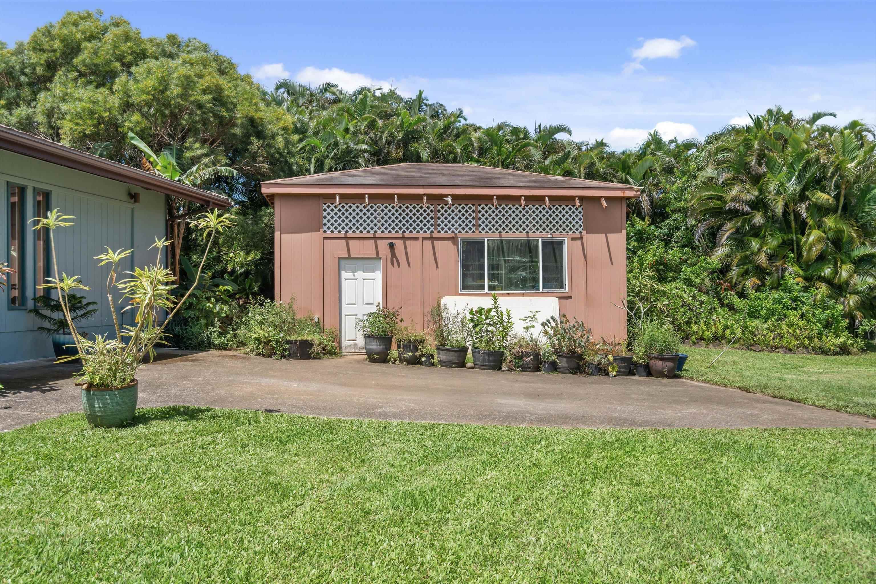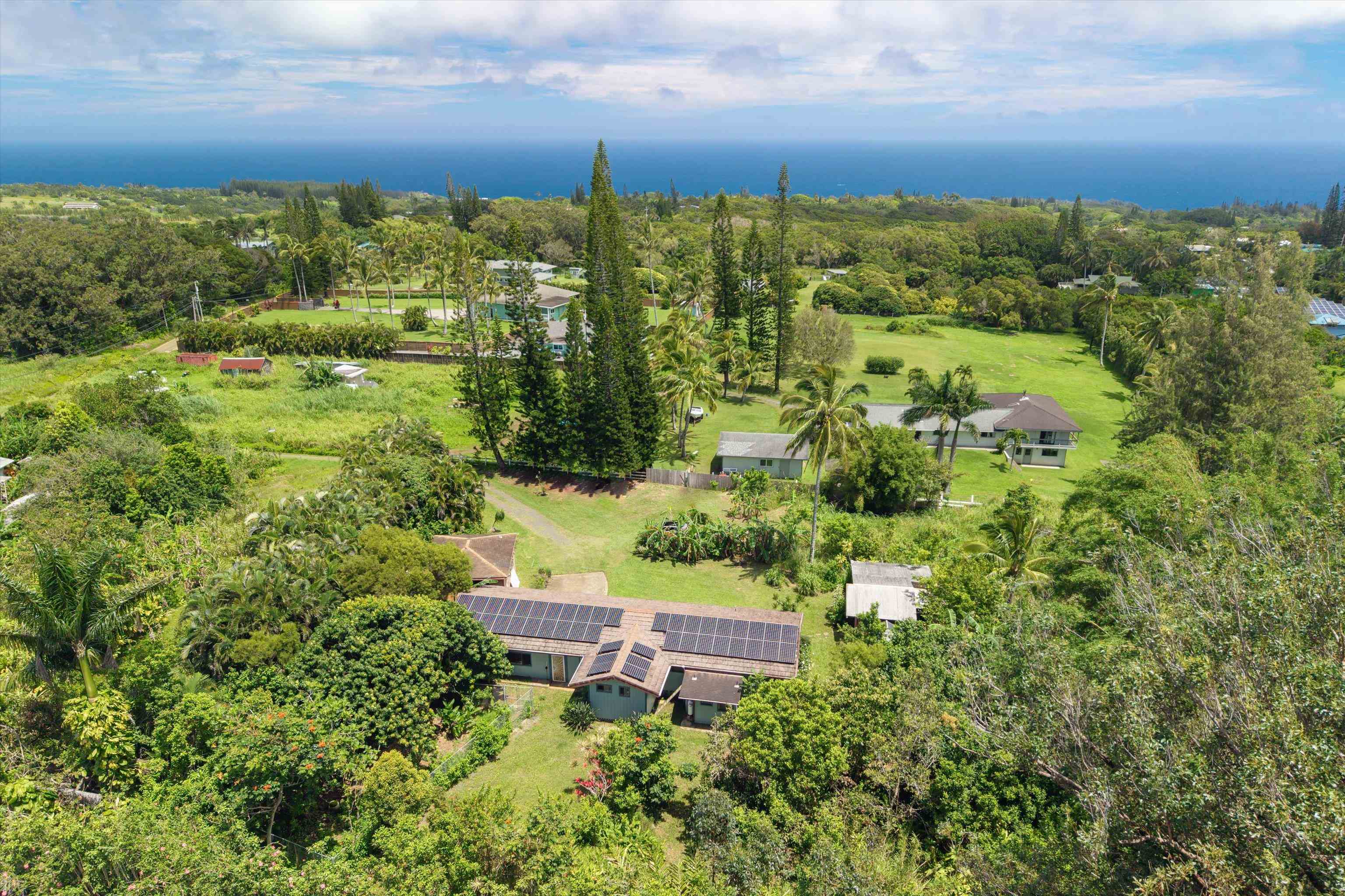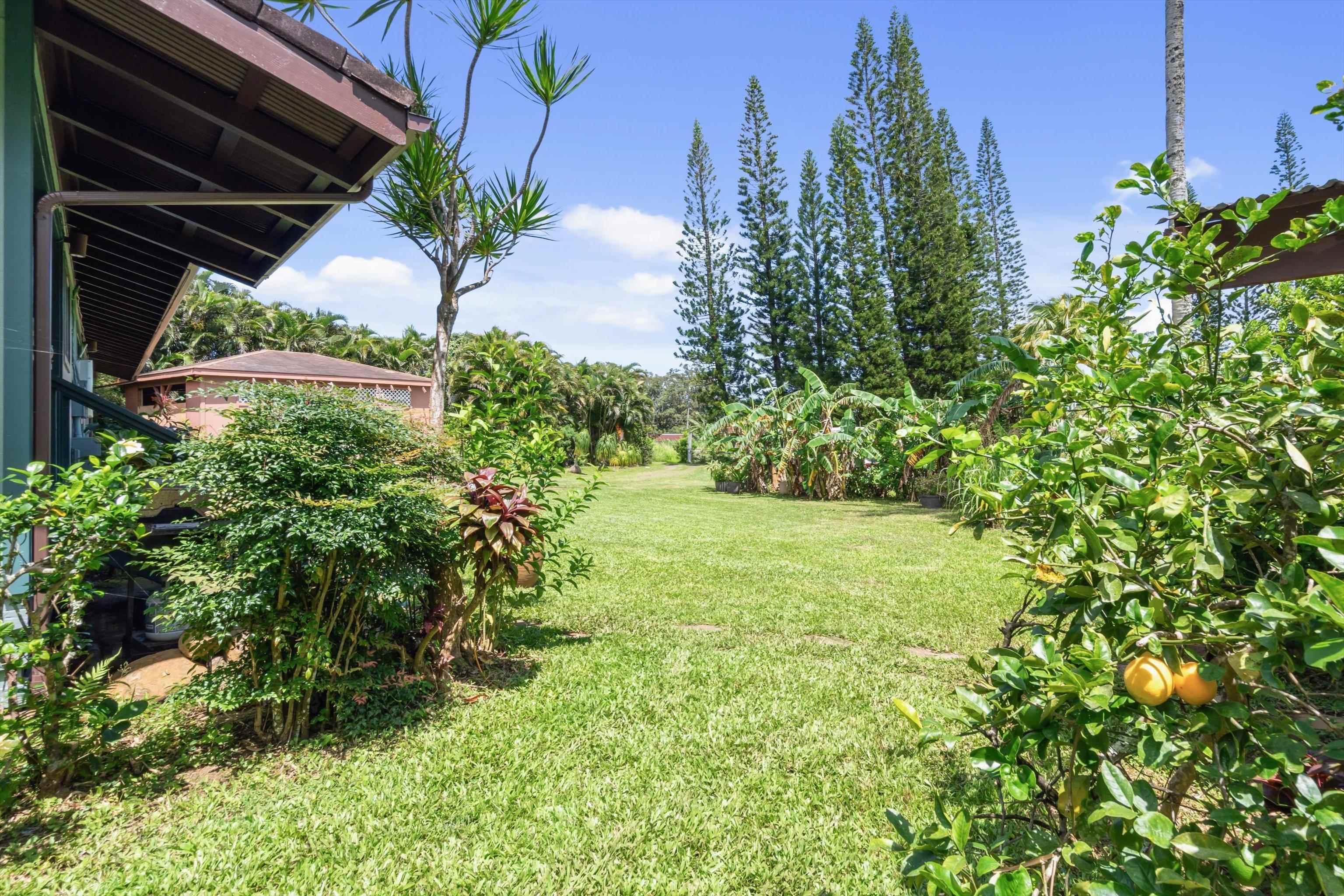 Tucked away on 1.47 lush agricultural acres in Haiku, this private property offers a rare blend of flexibility, privacy, and island charm. Public records reflect a 2-bedroom, 2-bath home, while the adaptable layout allows for multiple living options, including a potential attached studio or separate-entry unit—ideal for extended family, guests, or rental income. The home features a spacious, open feel with seamless indoor-outdoor living. Mature landscaping includes a variety of fruit trees—lime, Hawaiian lemon, coconut, banana, and sugar cane—along with puakenikeni, heliconia, and gardenia and other tropical flowers. A peaceful bamboo grove adds to the sense of serenity, tucked within the uncultivated portion of the acreage. Additional highlights include a detached structure with an Endless Pool spa and storage, extra outbuildings, and two fenced areas suited for gardening, pets, or agriculture. Set back from Holokai Road behind a gated entry, the property offers exceptional privacy in a peaceful Haiku setting. Within a 15 minute drive, are stores, schools, post office and beaches. Some images include virtual staging.