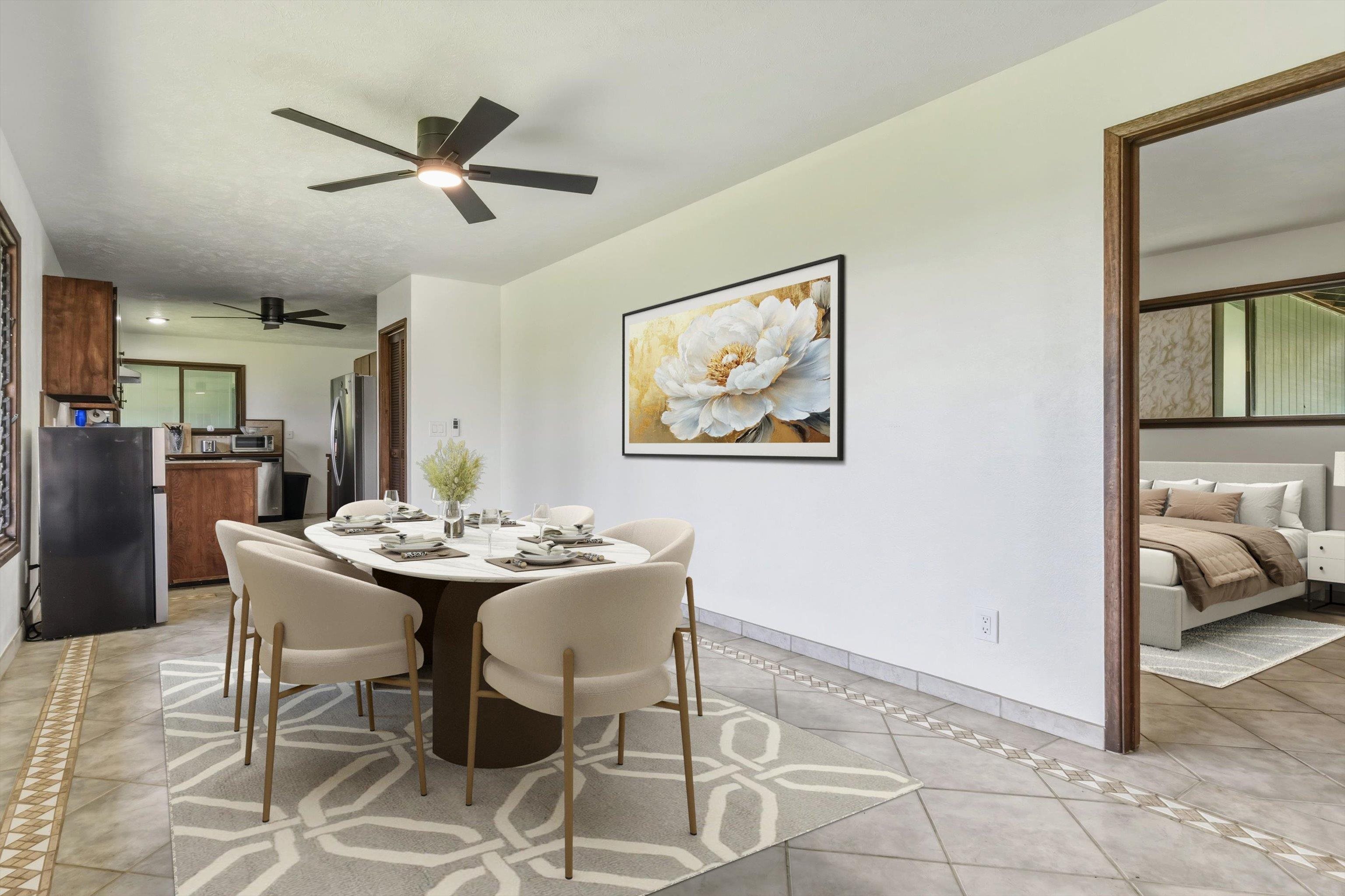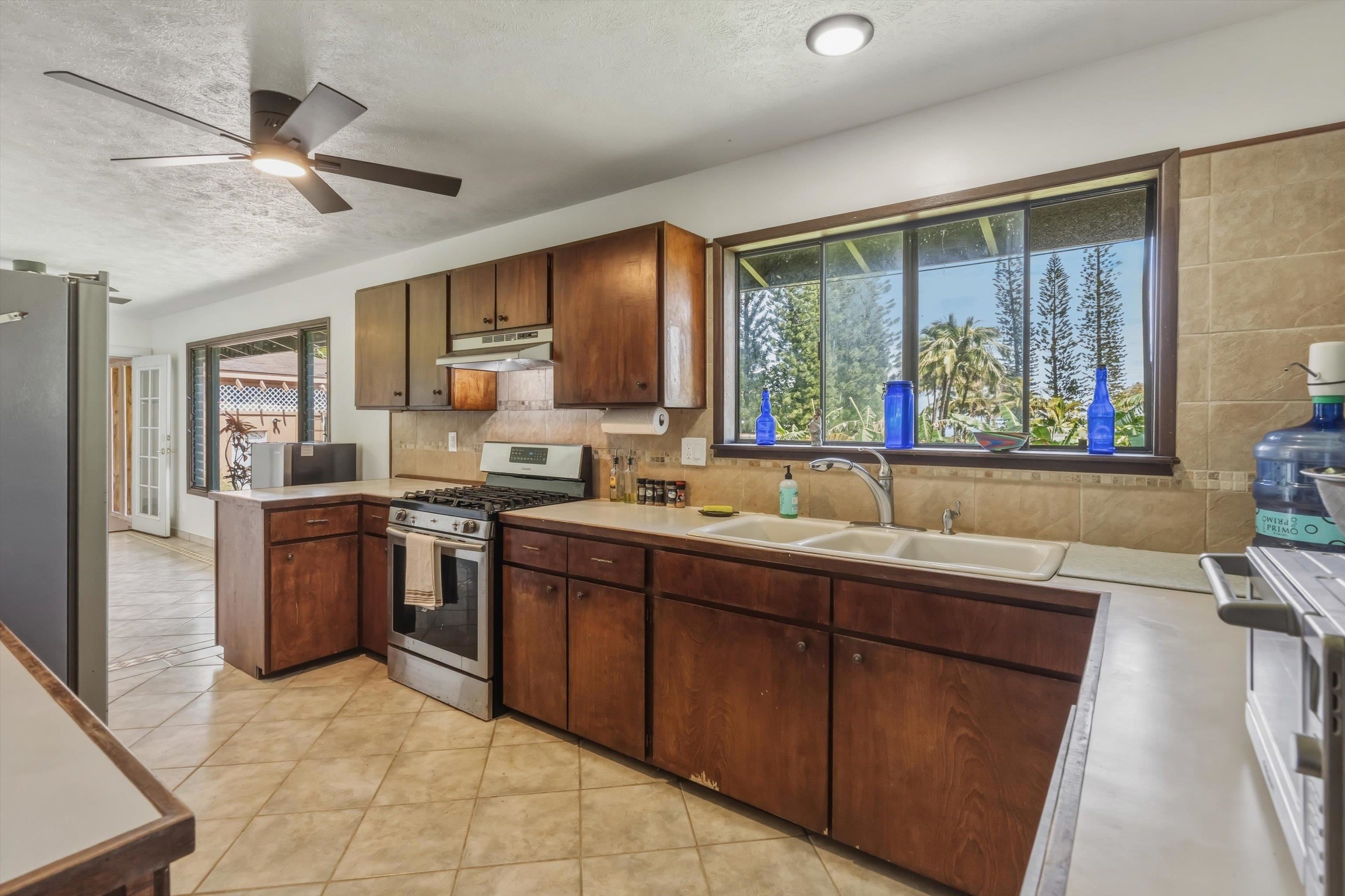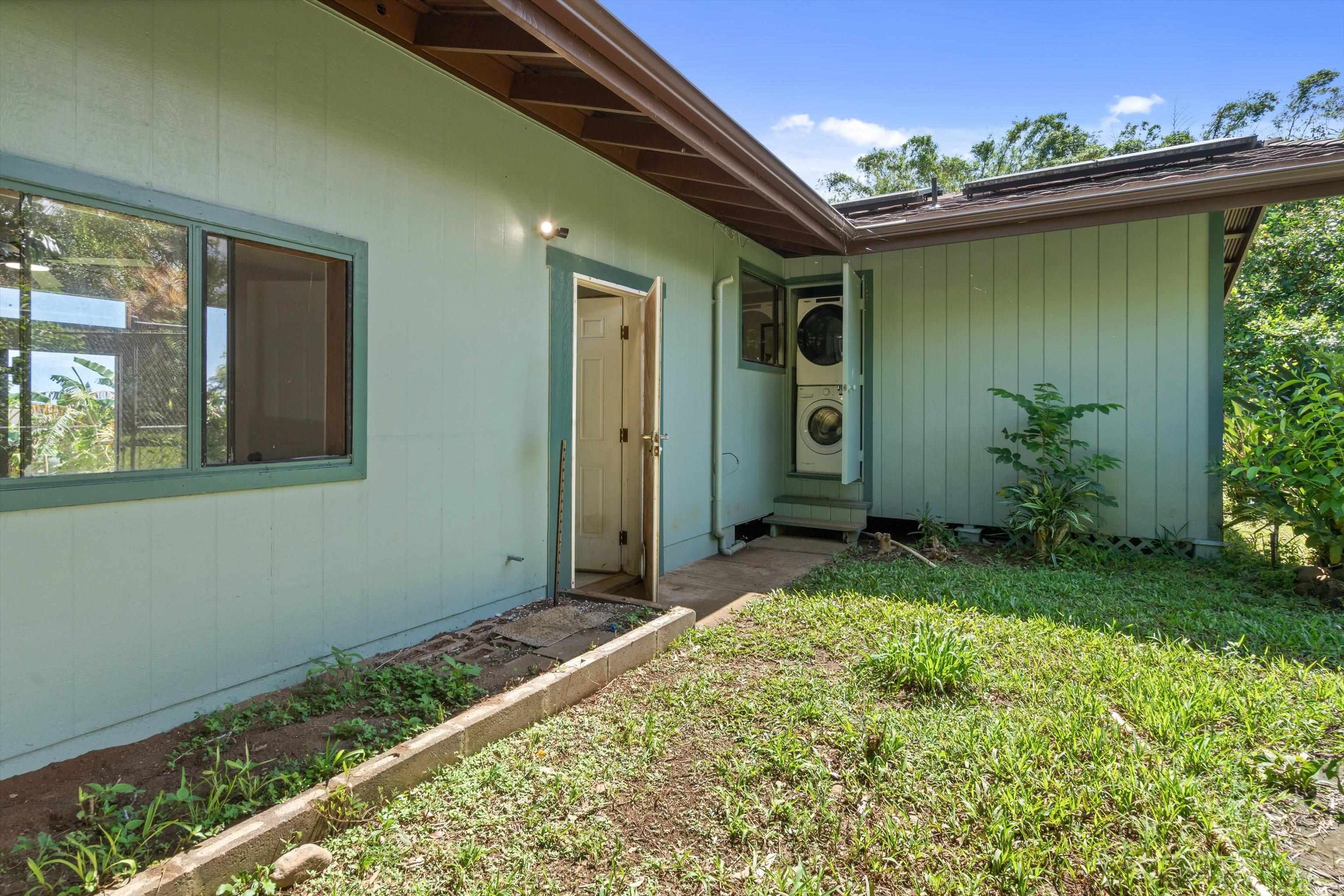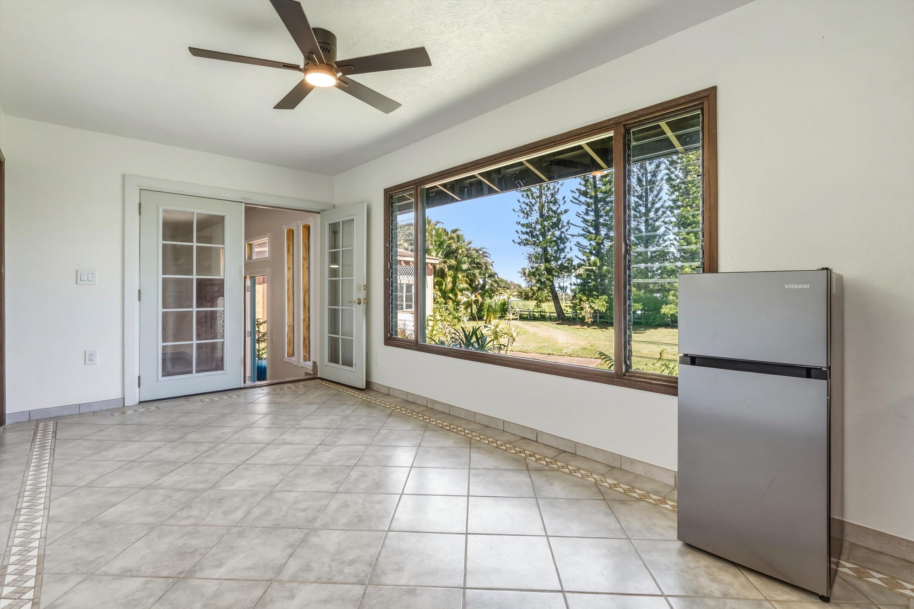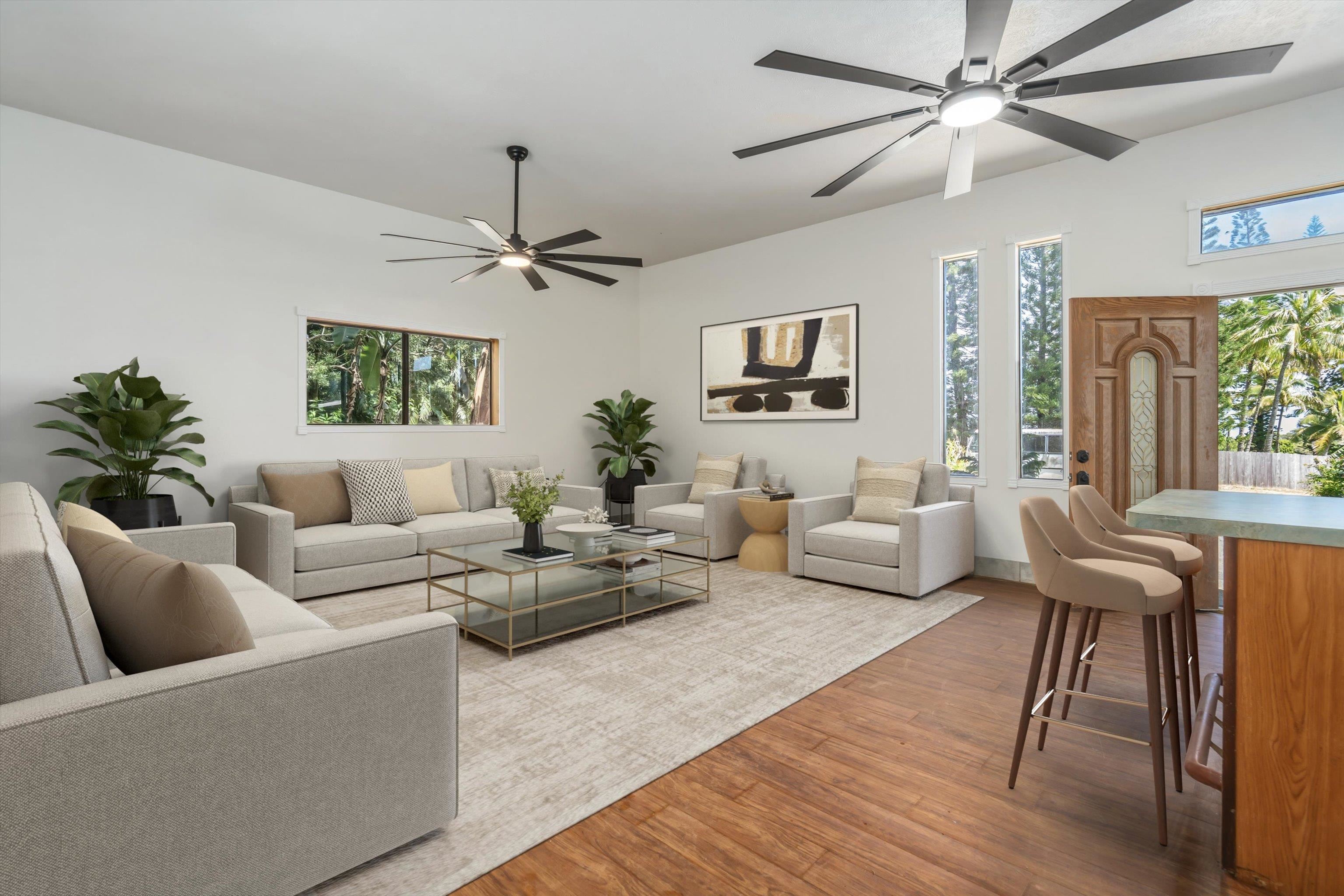 Tucked away on 1.47 lush agricultural acres in Haiku, this private property offers a rare blend of flexibility, privacy, and island charm. Public records reflect a 2-bedroom, 2-bath home, while the adaptable layout allows for multiple living options, including a potential attached studio or separate-entry unit—ideal for extended family, guests, or rental income. The home features a spacious, open feel with seamless indoor-outdoor living. Mature landscaping includes a variety of fruit trees—lime, Hawaiian lemon, coconut, banana, and sugar cane—along with puakenikeni, heliconia, and gardenia and other tropical flowers. A peaceful bamboo grove adds to the sense of serenity, tucked within the uncultivated portion of the acreage. Additional highlights include a detached structure with an Endless Pool spa and storage, extra outbuildings, and two fenced areas suited for gardening, pets, or agriculture. Set back from Holokai Road behind a gated entry, the property offers exceptional privacy in a peaceful Haiku setting. Within a 15 minute drive, are stores, schools, post office and beaches. Some images include virtual staging.