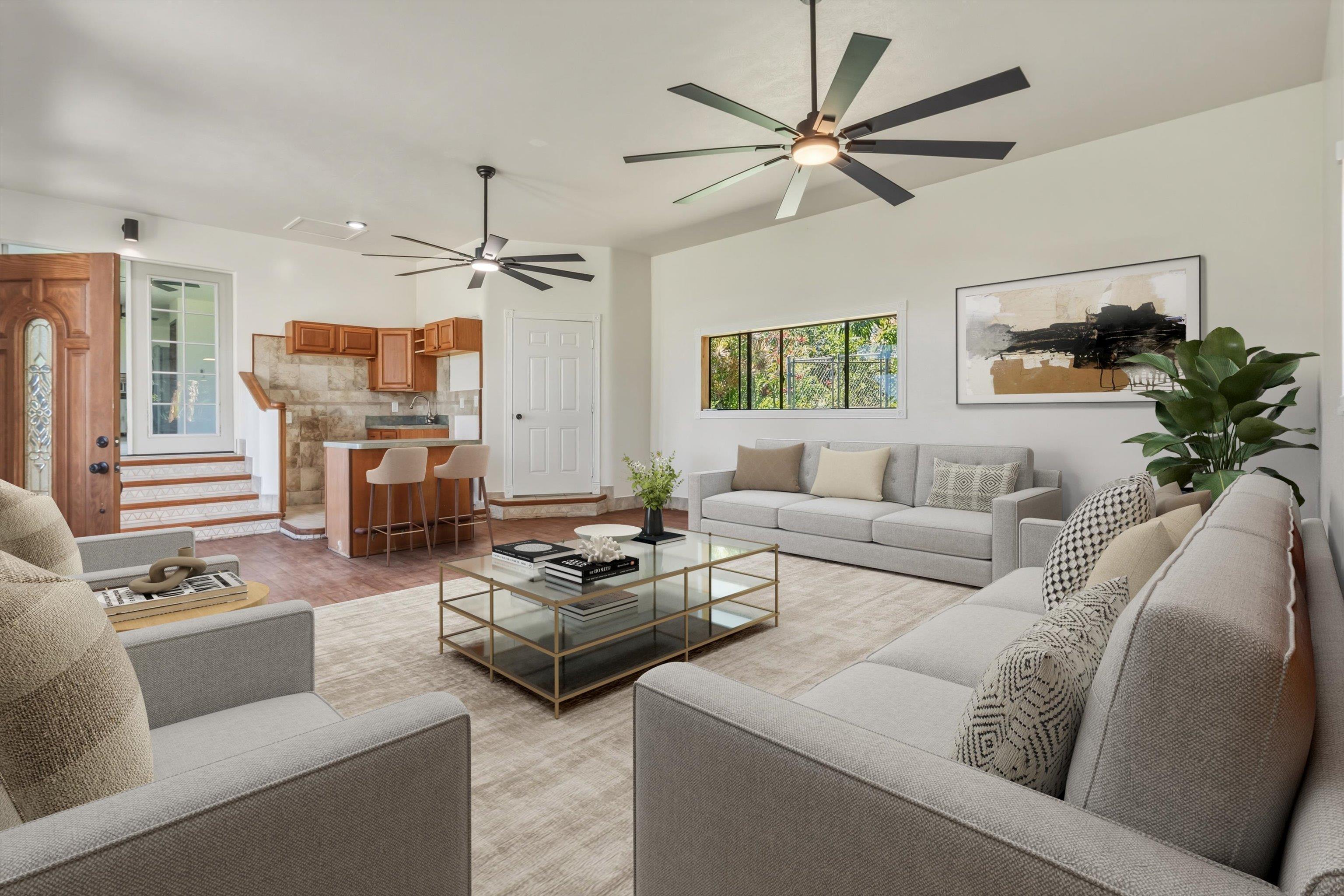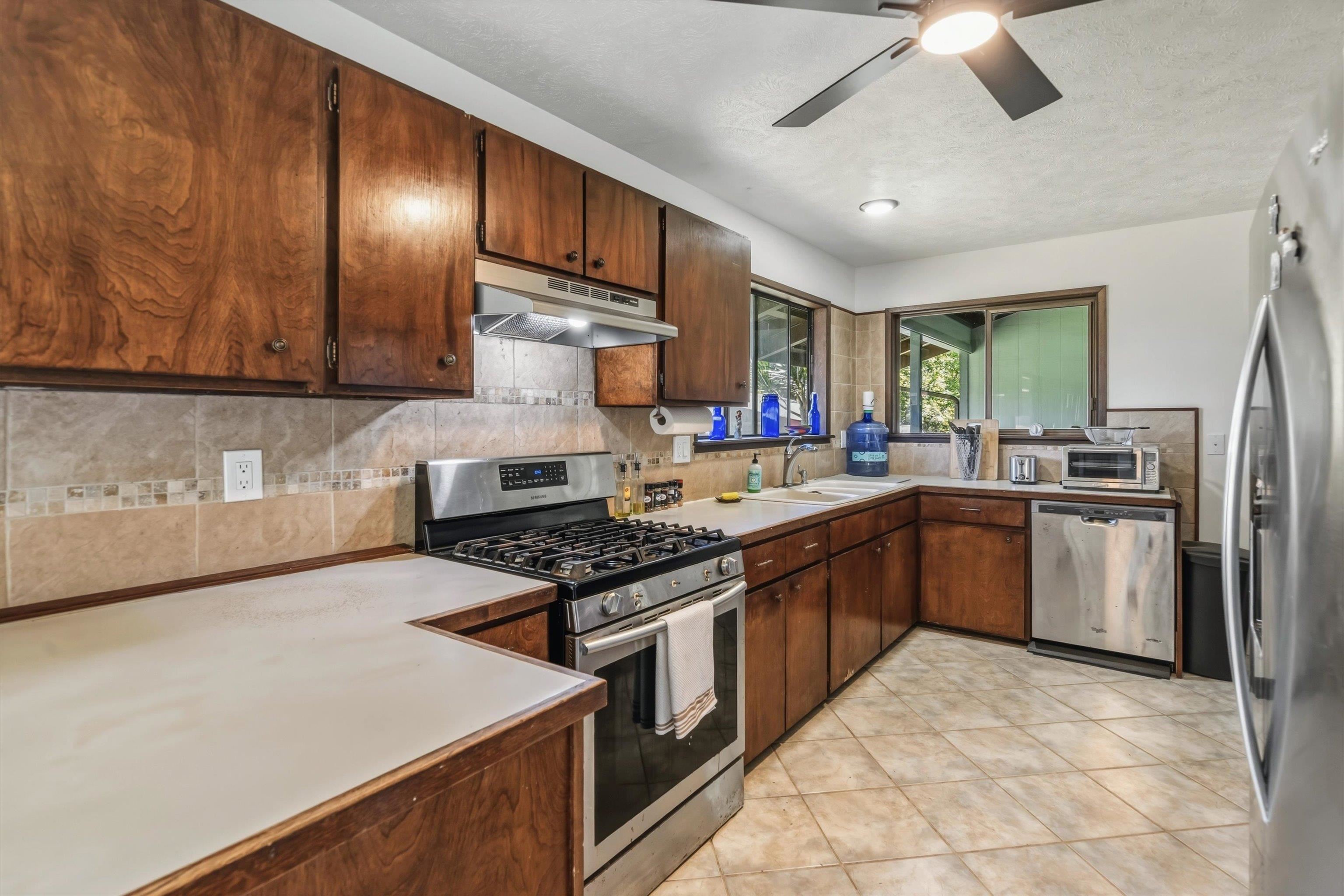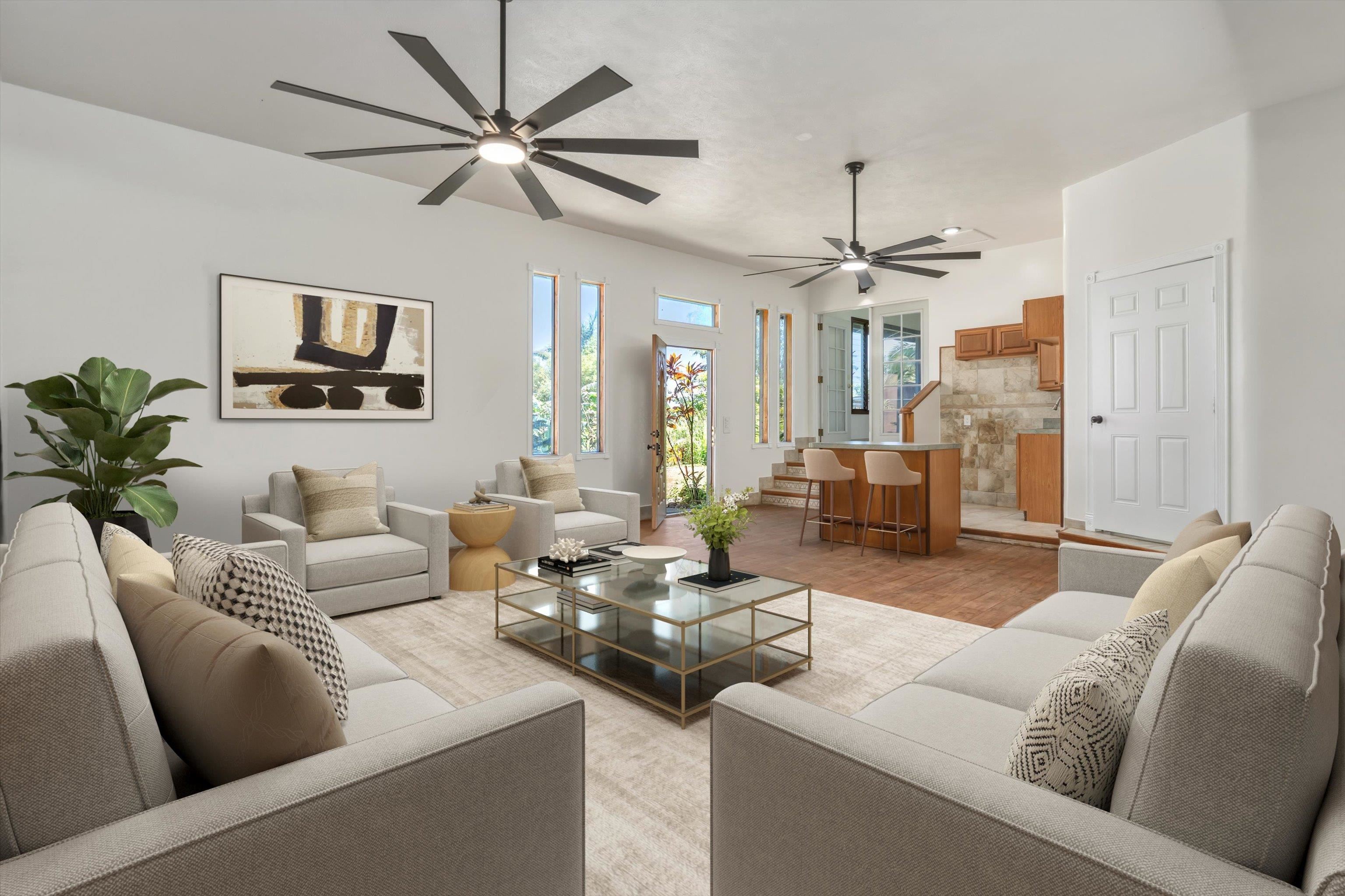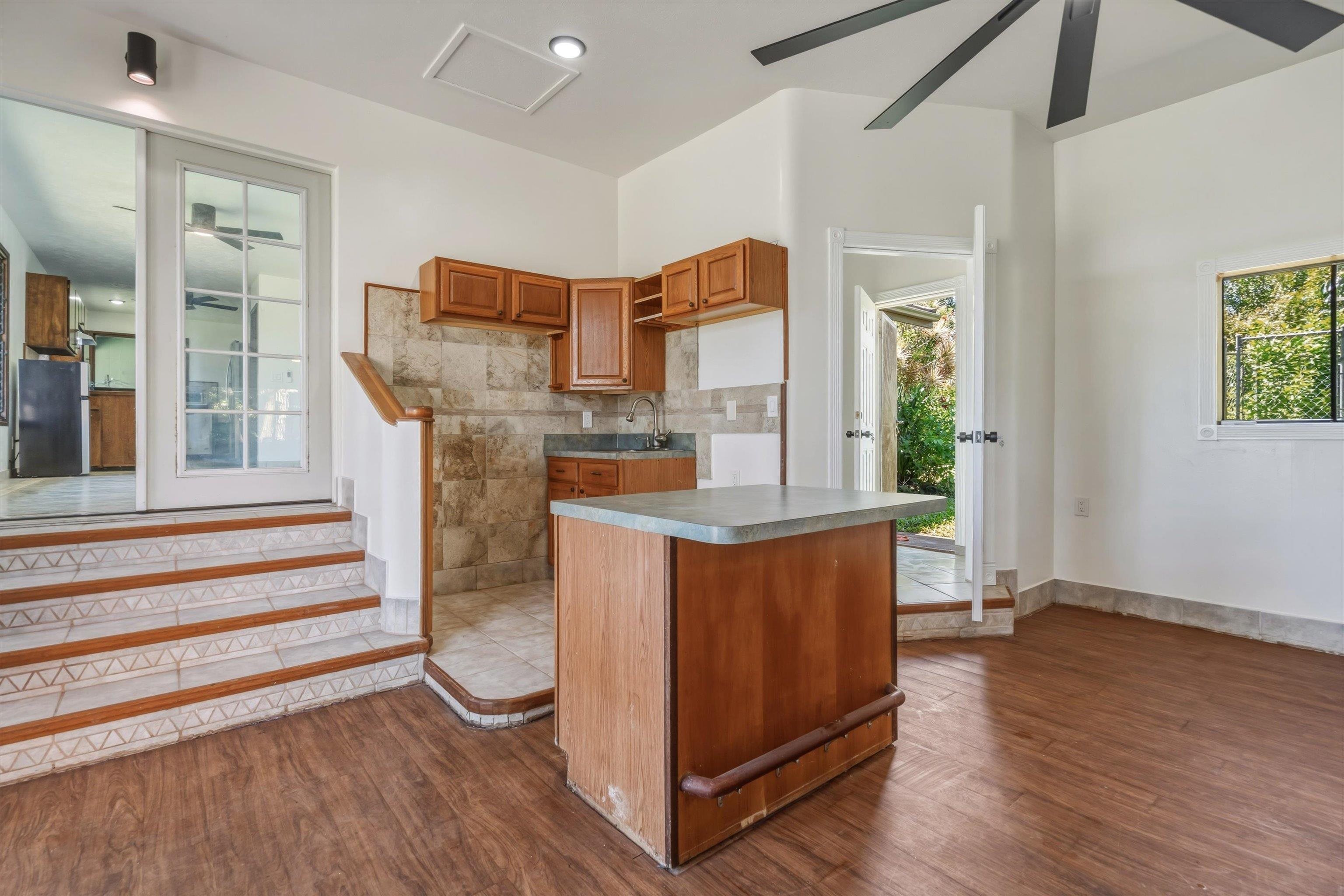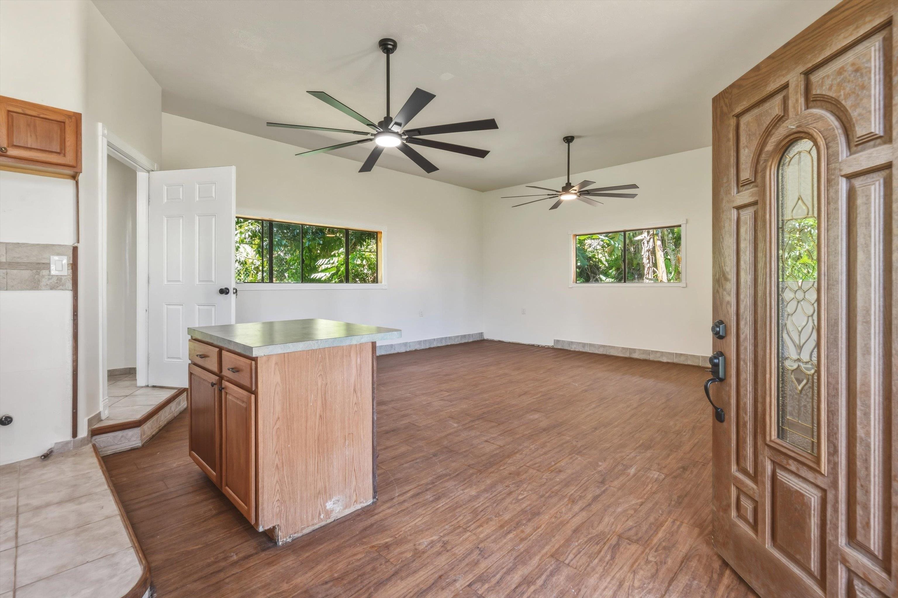 Tucked away on 1.47 lush agricultural acres in Haiku, this private property offers a rare blend of flexibility, privacy, and island charm. Public records reflect a 2-bedroom, 2-bath home, while the adaptable layout allows for multiple living options, including a potential attached studio or separate-entry unit—ideal for extended family, guests, or rental income. The home features a spacious, open feel with seamless indoor-outdoor living. Mature landscaping includes a variety of fruit trees—lime, Hawaiian lemon, coconut, banana, and sugar cane—along with puakenikeni, heliconia, and gardenia and other tropical flowers. A peaceful bamboo grove adds to the sense of serenity, tucked within the uncultivated portion of the acreage. Additional highlights include a detached structure with an Endless Pool spa and storage, extra outbuildings, and two fenced areas suited for gardening, pets, or agriculture. Set back from Holokai Road behind a gated entry, the property offers exceptional privacy in a peaceful Haiku setting. Within a 15 minute drive, are stores, schools, post office and beaches. Some images include virtual staging.