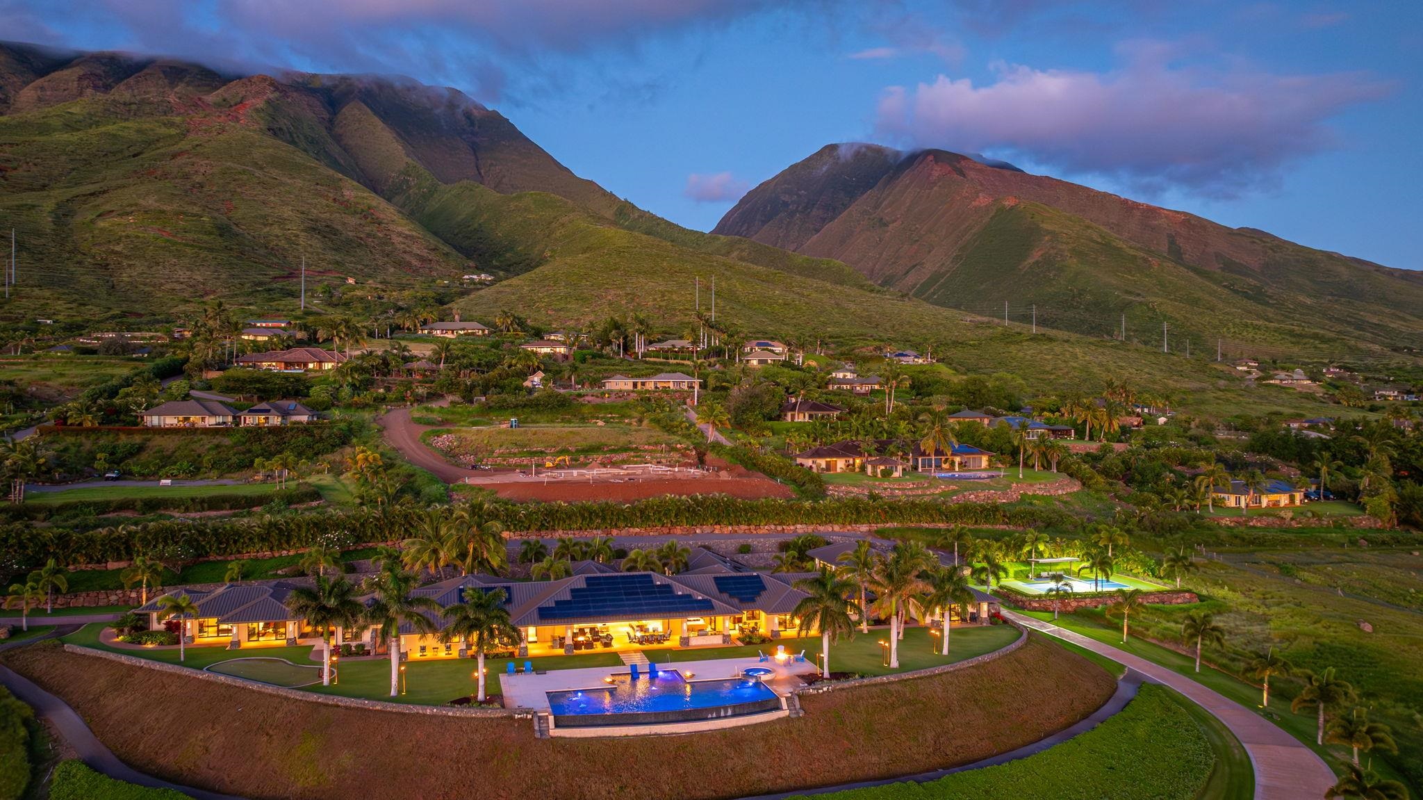 An iconic 9,392-square-foot estate of rare scale and sophistication, envisioned as a single grand residence with three distinct yet seamlessly integrated living environments. Built in 2020 by Imagine-It Builders with zero compromise, this architectural masterpiece commands unobstructed views of Lana'i, Moloka'i & the West Maui Mountains from every room. Designed for both elevated entertaining and private retreat, the estate unfolds with a 4 bedroom, 4 bath and 2 half bath primary living domain; attached 3 bedroom, 2 bath guest house; plus a 1 bedroom, 1 bath suite. Each space is harmoniously connected to create a singular, world-class residential experience. Resort-caliber infinity pool & spa with fire bowls, shooting water features & electric heaters. Full Nana Wall system dissolves the line between inside and out. Chef's kitchen with Wolf range & exotic stone. Primary suite with granite spa bath & outdoor shower. Private theater, wine cellar, gym, billiards room & executive office. Equestrian facility, pitch & putt, lighted pickle ball court, 6-car garage. Solar + Blue Ion battery storage + diesel generator + private well. Automated shades, whole-estate sound system, 2 gated entries. This is not a house. It is a private world — and there is nothing else like it on the island. Seller will also consider the option of selling a 25% co-ownership interest for $4,000,000 to join 3 other members in an LLC.