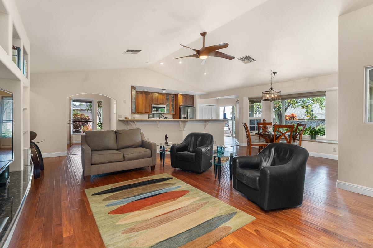 Welcome home to 35 Heona place, a beautifully remodeled single level residence, just moments away from the crystal blue waters in Kihei, Maui. This home is tucked within a natural private, family thriving, impeccable kept neighborhood of 18 homes. It rests on an expansive large lot, offering the perfect blend of privacy, space, and effortless island living. From the moment you arrive, the lush landscaping and inviting front yard create a sense of calm and welcome. Step inside to an open concept layout, highlighted by vaulted ceilings and modern finishes, filling the space with natural light and inviting feel. The kitchen is the heart of the home, featuring counter seating and clean, contemporary quartz countertops. A large sliding glass door opens to the outdoor living area, creating a seamless connection between the interior and the spacious backyard; perfect for entertaining, family play and gathering, relaxing, dining, or enjoying Maui’s ocean breeze. The master suite is thoughtfully positioned on one side of the home, offering a serene retreat with a spacious ensuite bath, an expansive double shower and beautiful double vanity.On the opposite side, two additional bedrooms and a full bath provide comfort and flexibility for family or guests. Outside, the property truly shines. The back yard is fully fenced with a large open space and lush grass to play. There is an array of mature fruit trees, including lilikoi vines, citrus, guava, dragon fruit, lime, papaya and avocado. Garden boxes for convenient gardening. Modern comforts include central air conditioning and owned photovoltaic panels for energy efficiency and low utility costs. Not only is this home located in a quiet, family friendly cul de sac, it’s also just minutes from Piilani Village Shopping Center, ono dining options and sandy beaches; offering both quality living and convenience. This rare gem captures the essence of aloha modern island living.