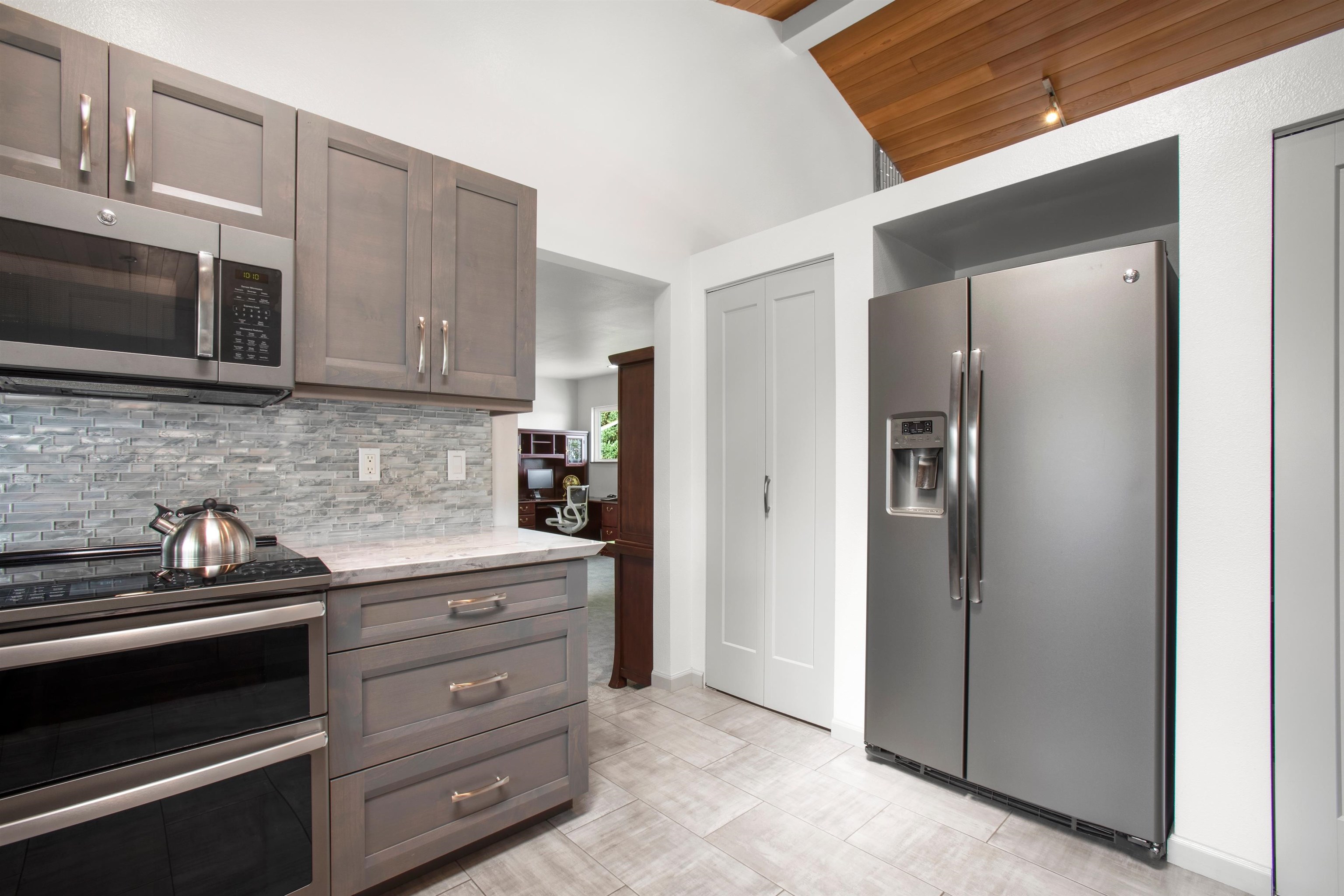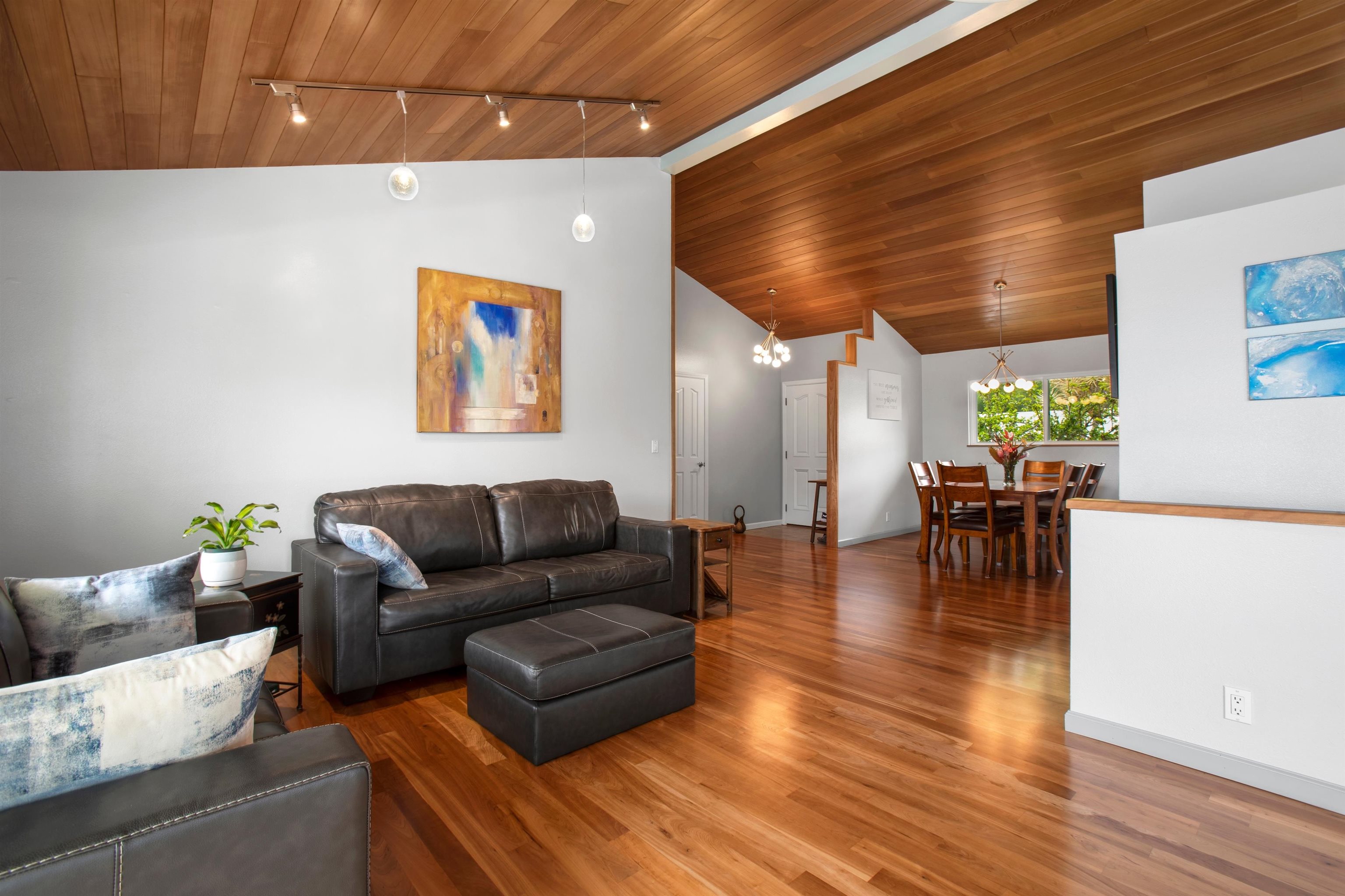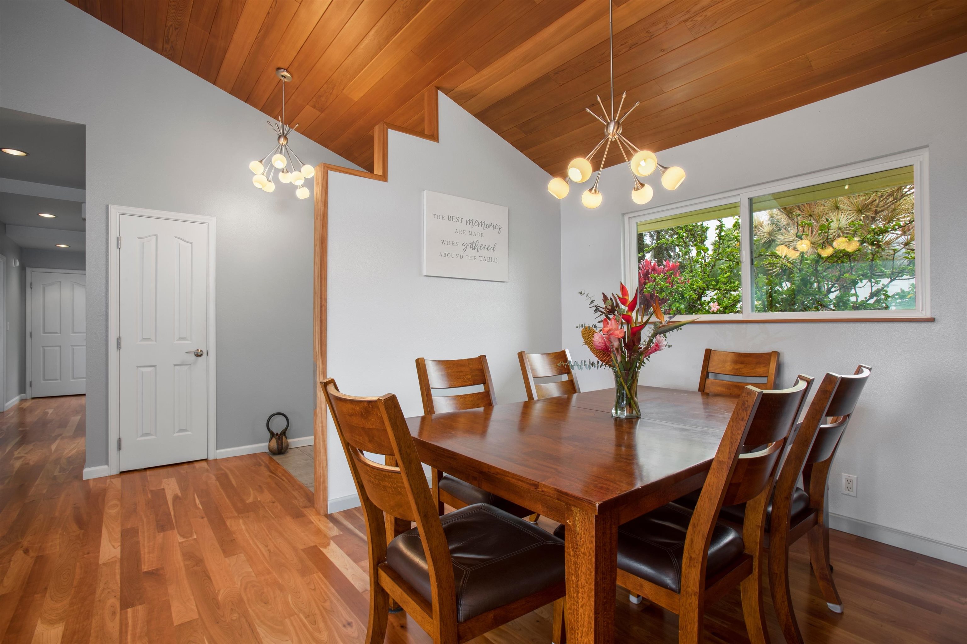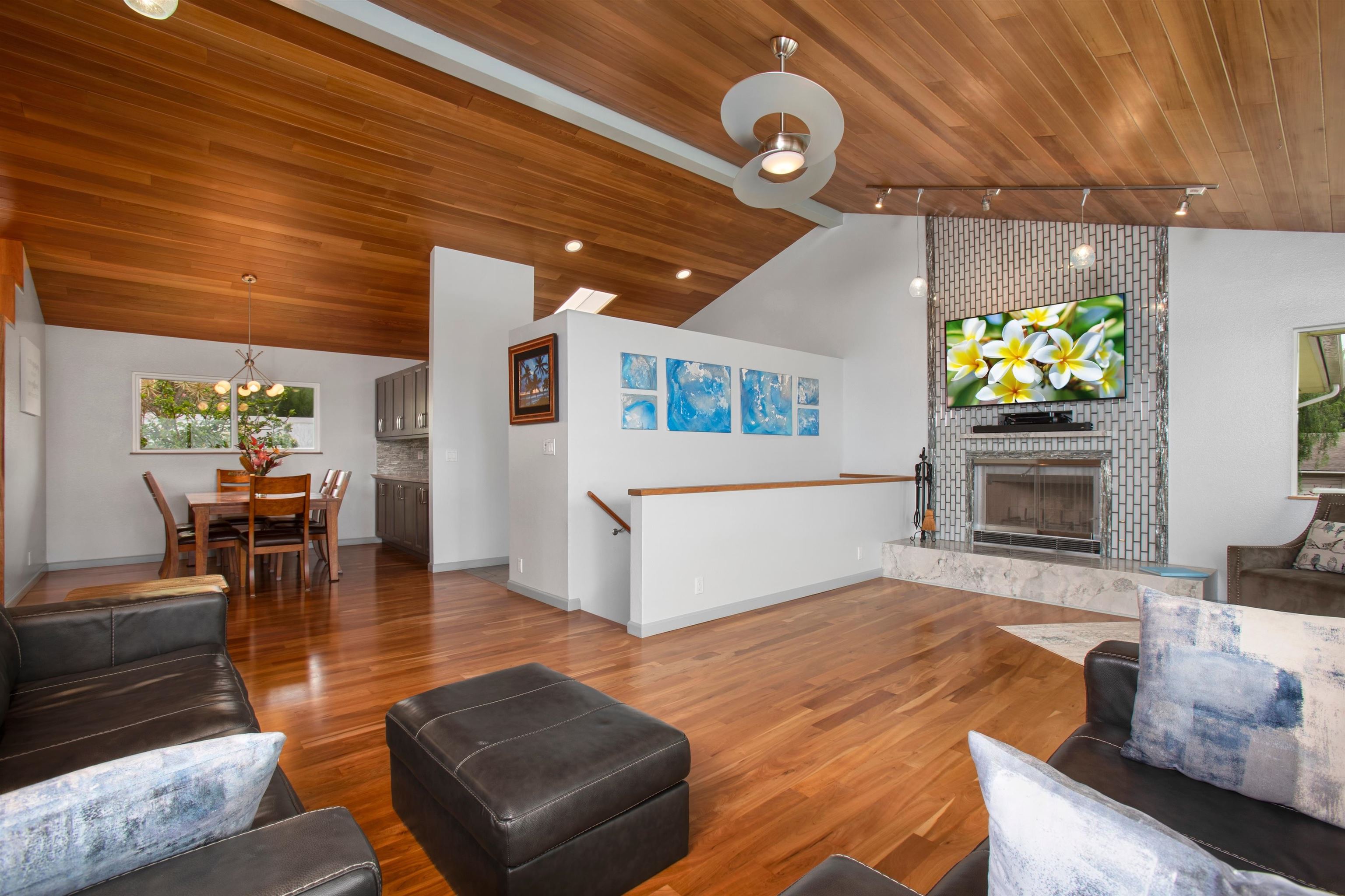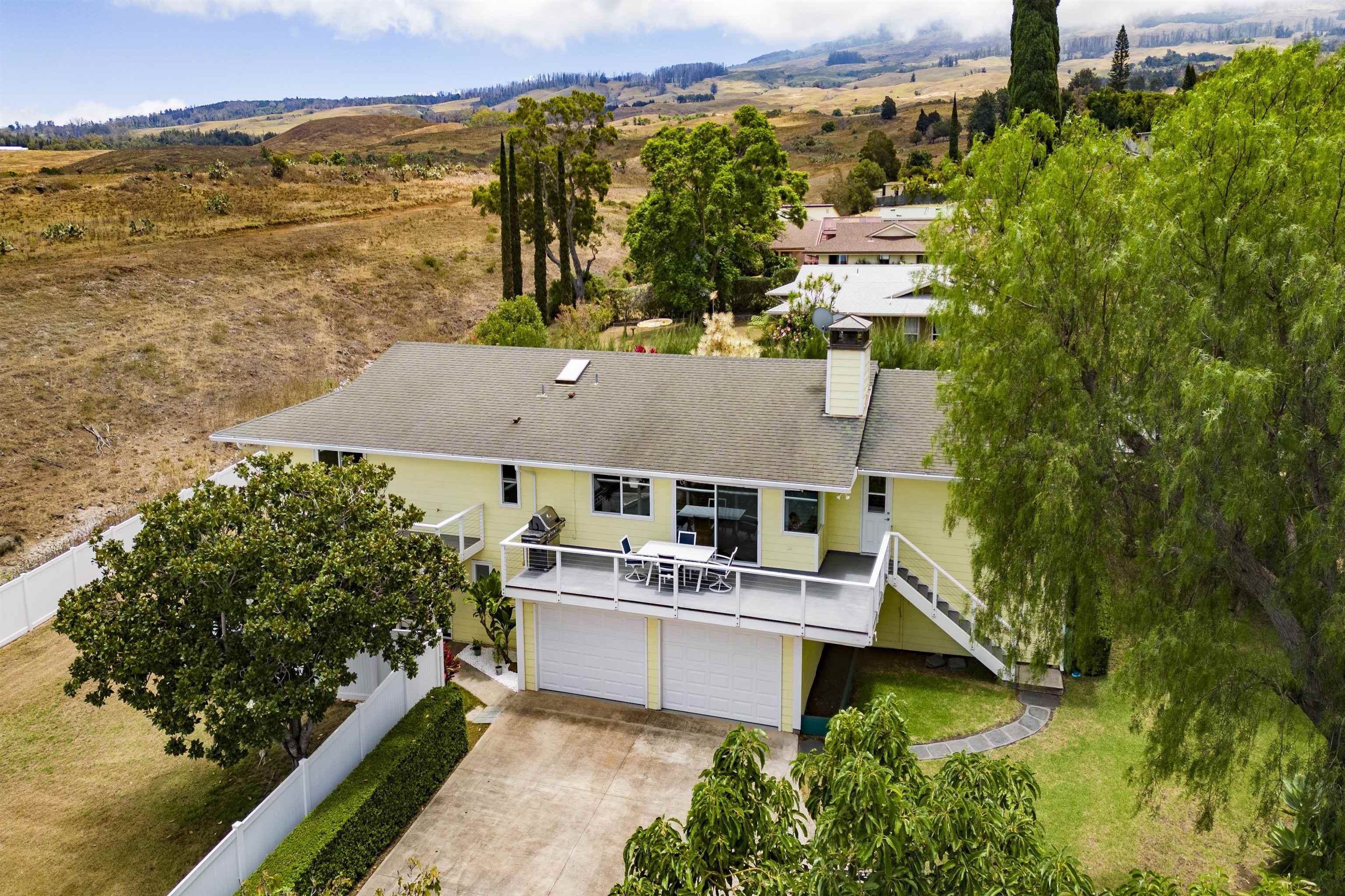 Beautifully remodeled 4-bedroom, 3-bath home bordering Haleakala Ranch in popular Kula Kai. The entire home has been remodeled and updated in recent years and pride of ownership shines throughout. The main level features high-vaulted ceilings in the living, dining, kitchen and den/study plus a deck for barbeques, outdoor living and enjoying the views. Three of the bedrooms and 2 of the baths are also on this level, including the primary suite with its own deck where you can enjoy your morning coffee and occasional wildlife sightings on the ranch. The lower level offers a private guest suite – ideal for extended family, visitors or a home office – plus a spacious garage with built-in workbench and a second washer/dryer outlet. Kula Kai has the ideal Kula climate, underground utilities and is a very ‘walkable’ neighborhood because there are no “through” streets…….and the best part? No HOA’s! Call your favorite Realtor to schedule a showing today. NOTE: FLOOD ZONE INFORMATION: Per FEMA’s National Flood Hazard Layer FIRMette (msc.fema.gov/portal) and Flood Hazard Assessment Tool at Hawaii.gov (fhat.hawaii.gov) this location is in an “Area of Minimal Flood Hazard” Zone X Certain popular real estate websites are providing misleading information regarding the Flood Zones. Ask your favorite Realtor for actual Flood Zone reports or check documents associated with this listing.